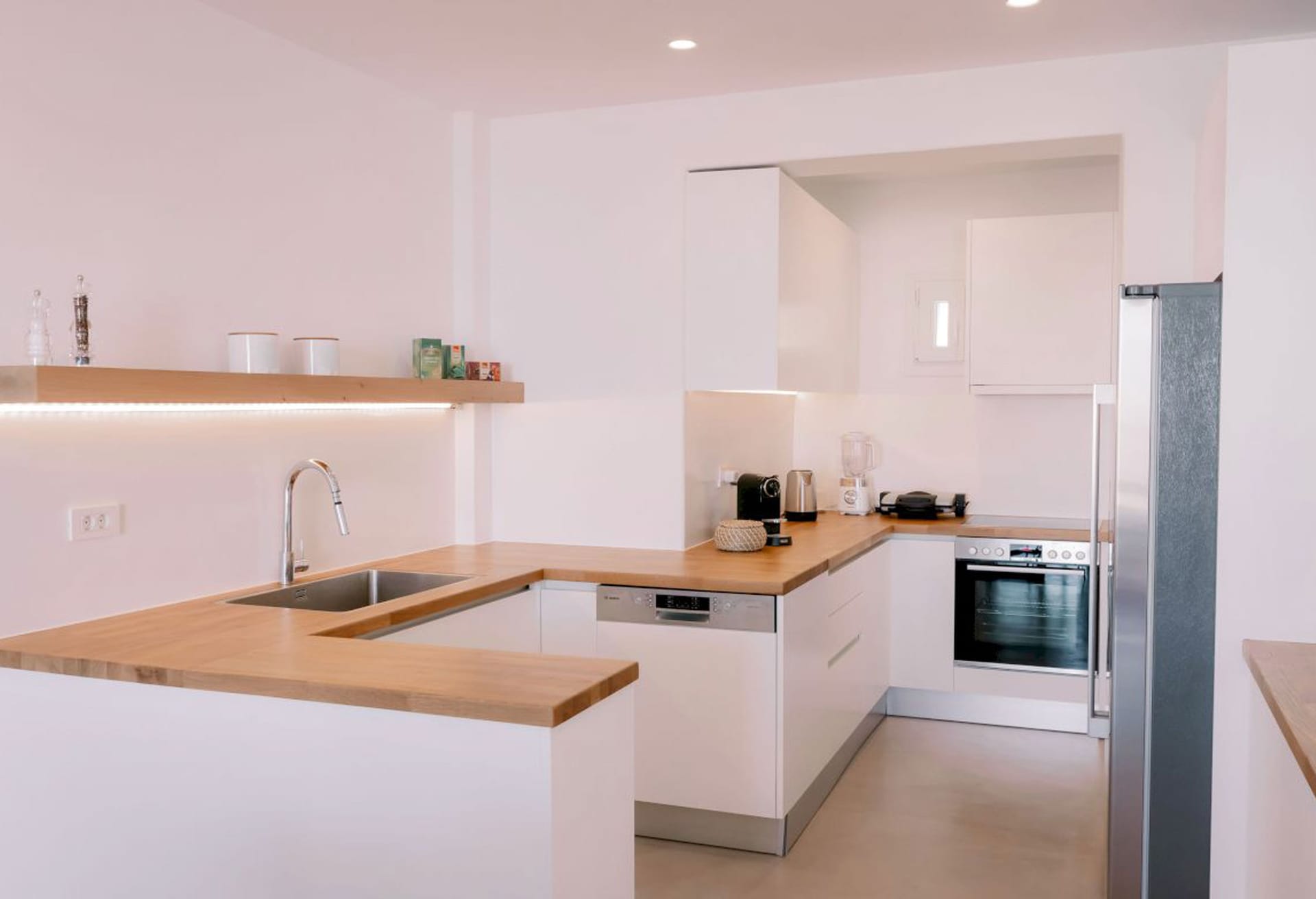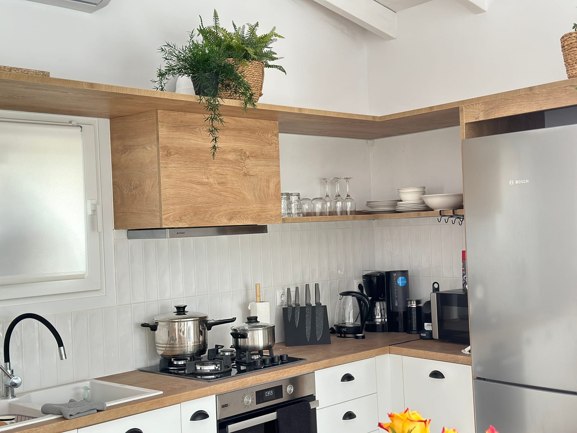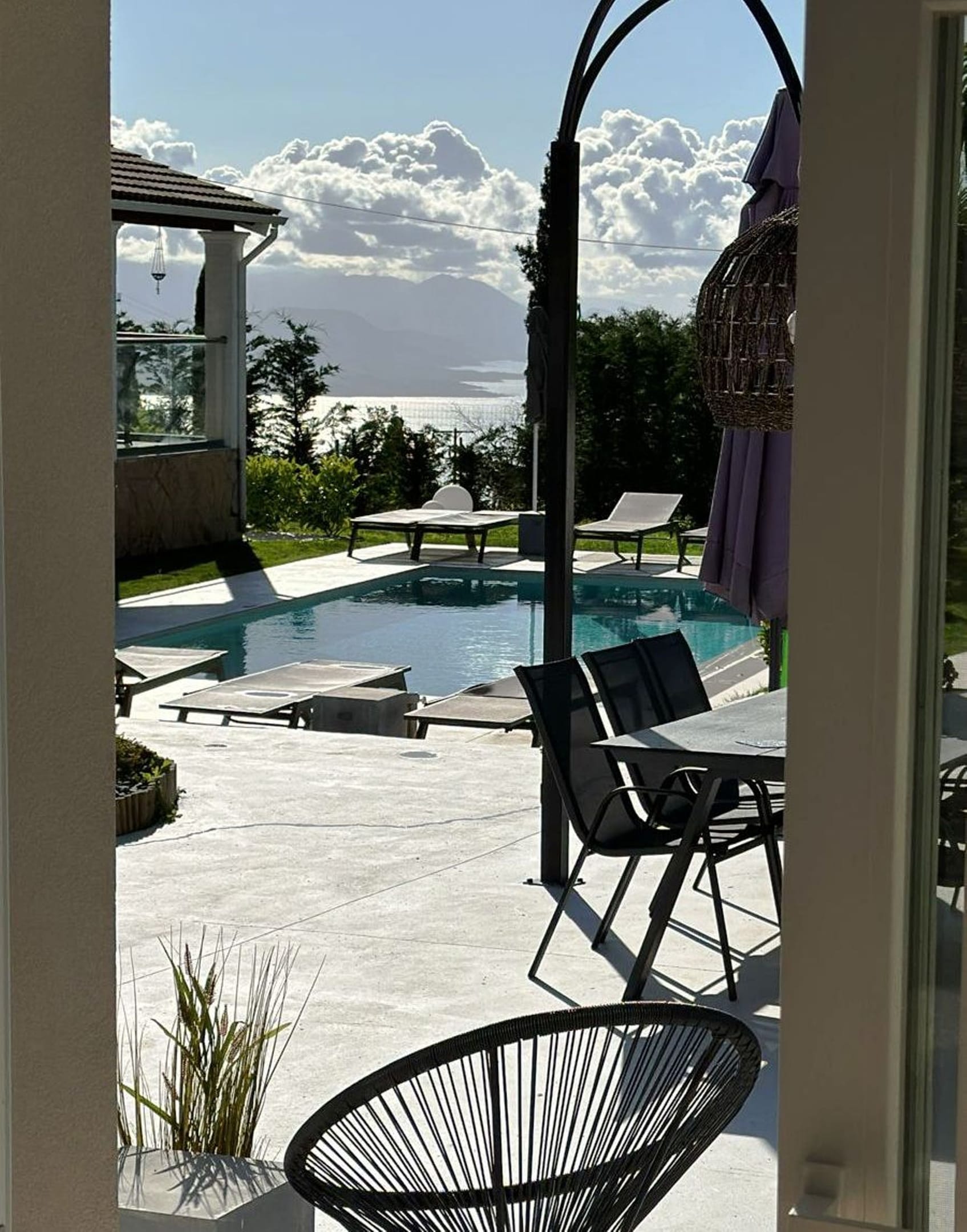 The property is part of a two villa complex,, in which each property has completely separate and private entrances, pools, and terraced dining areas. The villa opens up to a spacious terrace with a gorgeous sea view. The villa has a kitchen, spacious living room, and dining room. All rooms are air-conditioned.