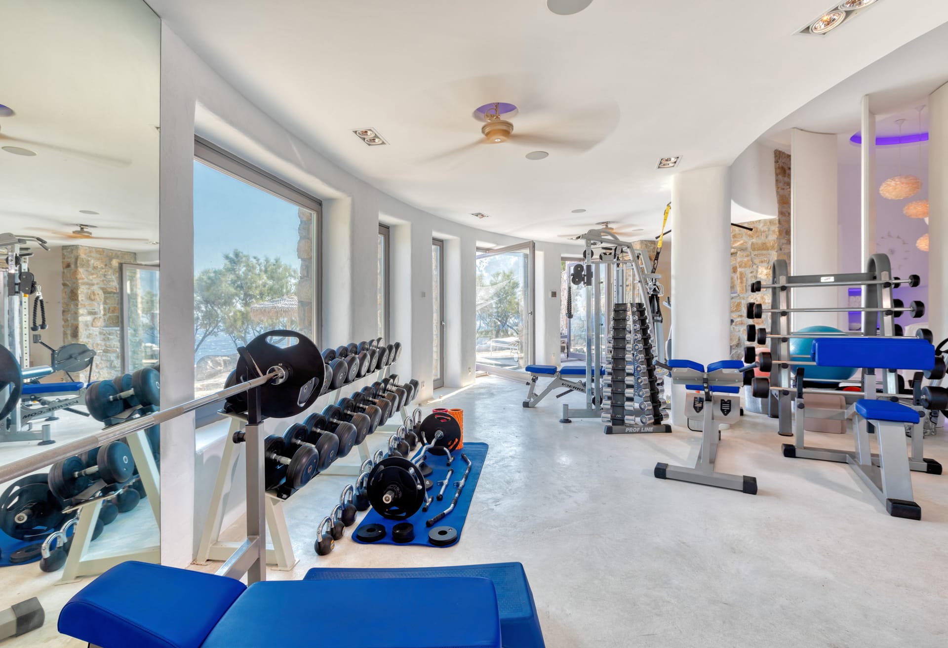 The villa features a state-of-the-art gym with stunning sea views, a spa treatment room offering a tranquil space for relaxation and rejuvenation, and a steam room ideal for unwinding after a day of exploration. The jacuzzi terrace, overlooking the sea, provides the perfect spot for a soothing soak under the stars.