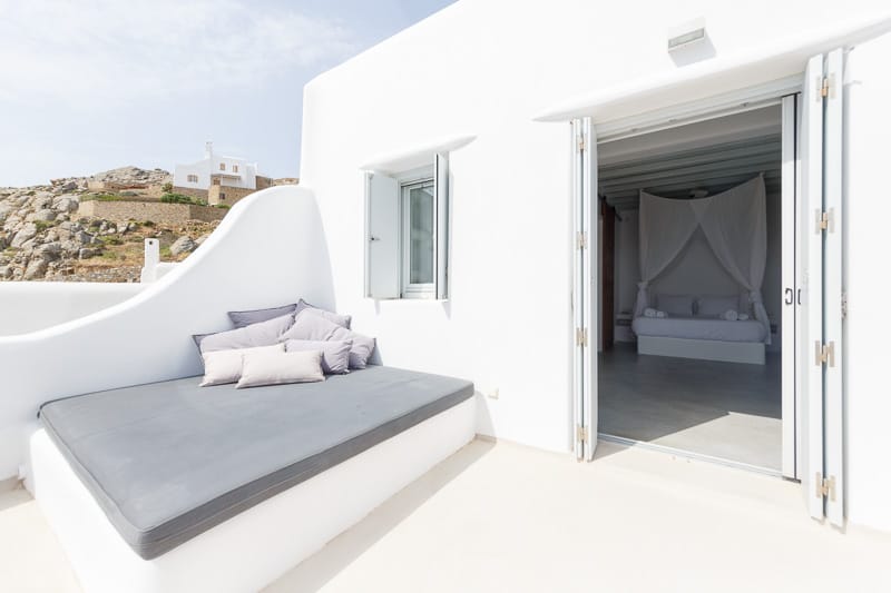 Comfort, style, and above all, fun were the main driving factors when the architects and owner teamed up to build this Villa. Special emphasis was placed on maintaining the classic Mykonian look, with its simplistically elegant aesthetic, while at the same time ensuring that all modern comforts were discreetly incorporated as well. Each bedroom has its own unique character, as well as its own en-suite shower room. In true Mykonian fashion, a lot of the fixtures and fittings are built-in, exactly the way authentic houses from yesteryear were made for the locals.