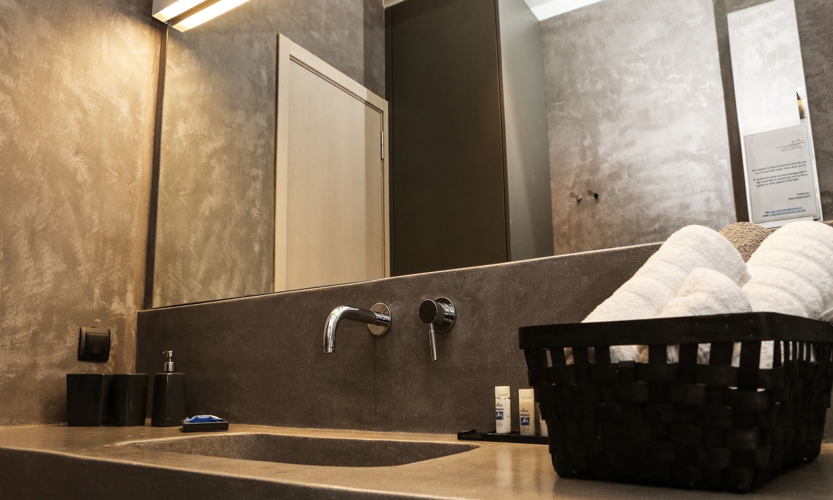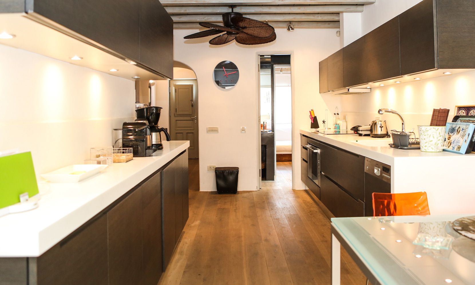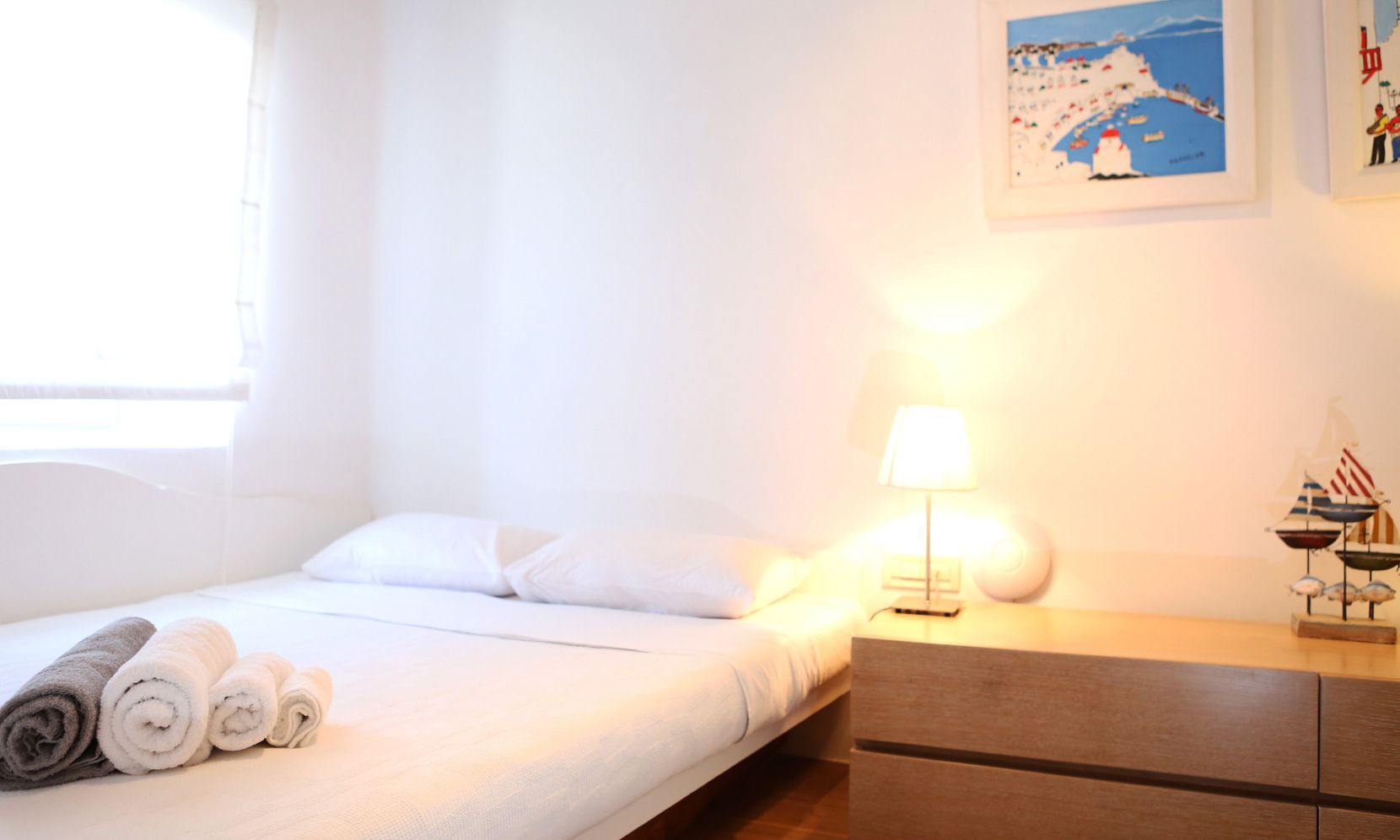A bedroom with 1 double bed (plus a double bed on the attic), A/C, en-suite bathroom with shower, courtyard access.