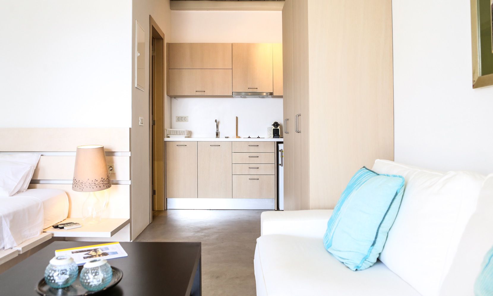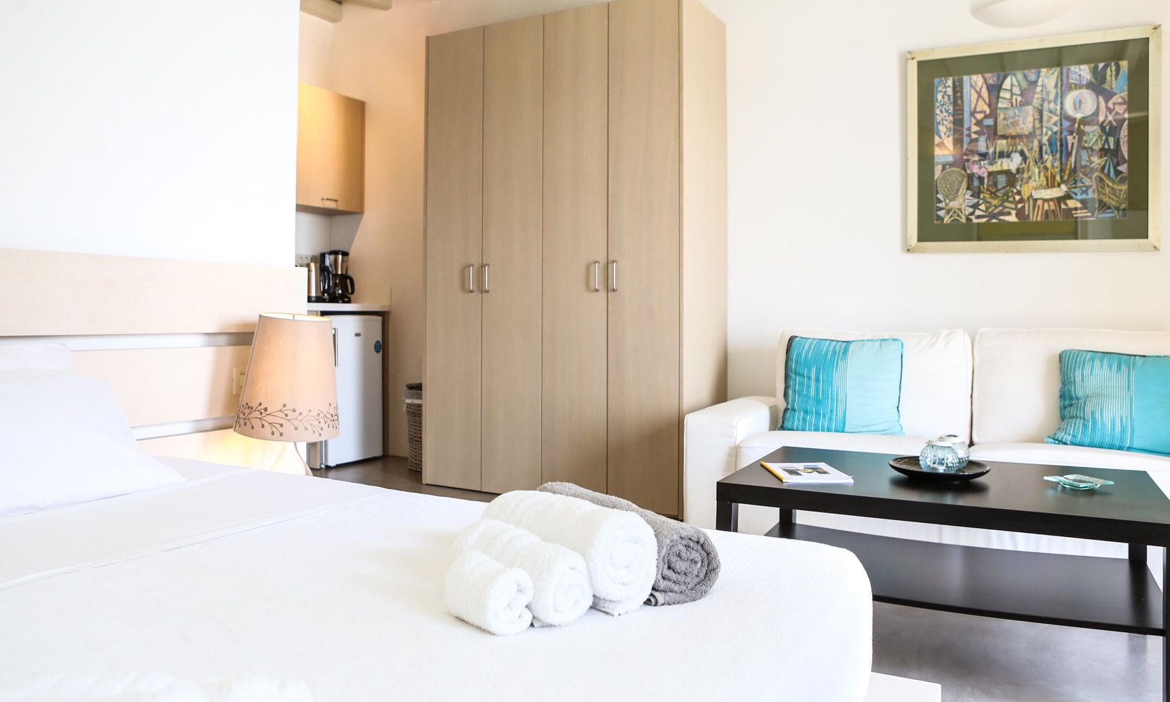 3rd Guest House: The third guest house in located close to the main house, and it consists of a double bed, a bathroom with shower, a sofa & a small kitchen and an A/C system. Guests have direct access to the pool and the garden, beautiful sea view.