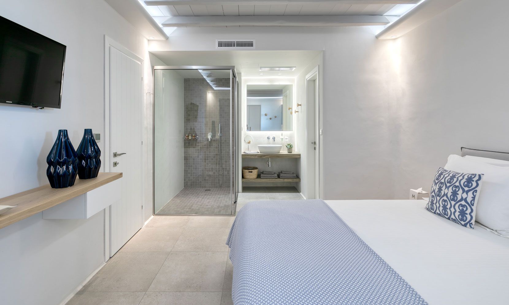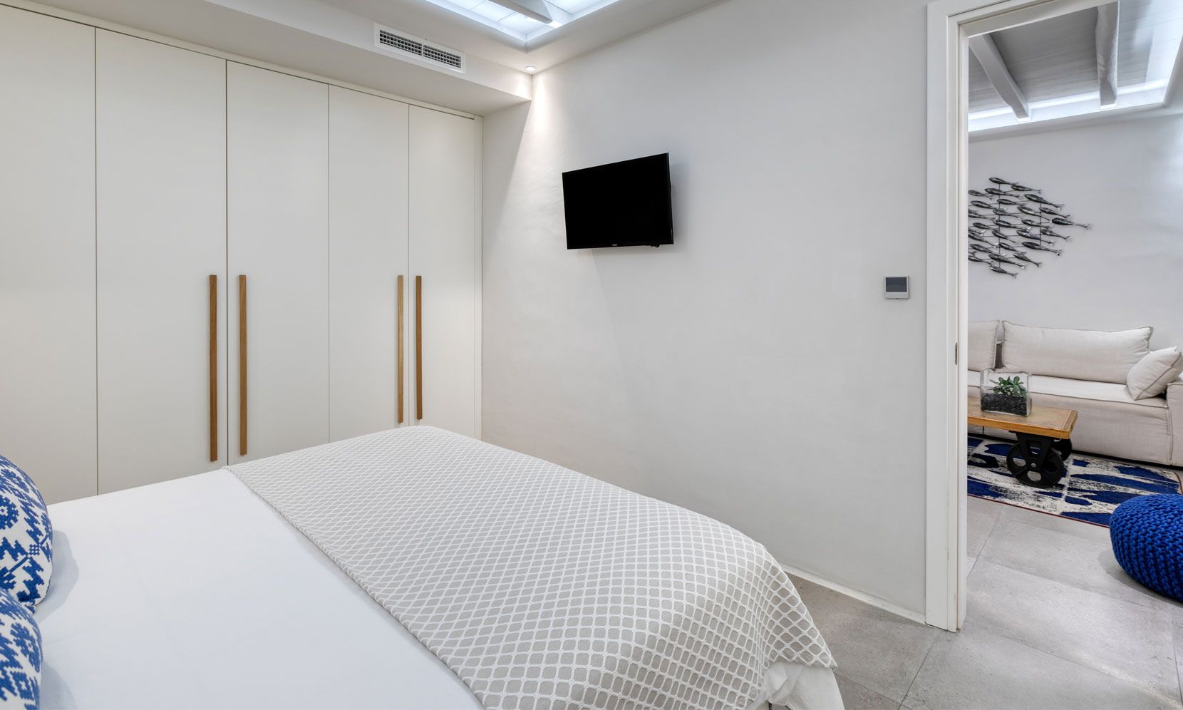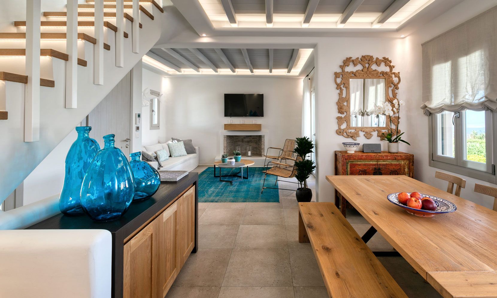 With its XXL dimensions, the 195m² Villa Dolon 4 in Mykonos will appeal to those who appreciate the comfort of large spaces and good company! While you enjoy the last rays of the sun in your private pool sipping a cool drink, the children of the house will be already eating in the spacious, modern kitchen, before they retire in the play room to enjoy their favorite video games. It’s time for you to get ready for a dynamite tour in the nearby town of Mykonos, knowing that your island home waits to offer you a well-deserved relaxation in the arms of the full of aromas Cycladic night.