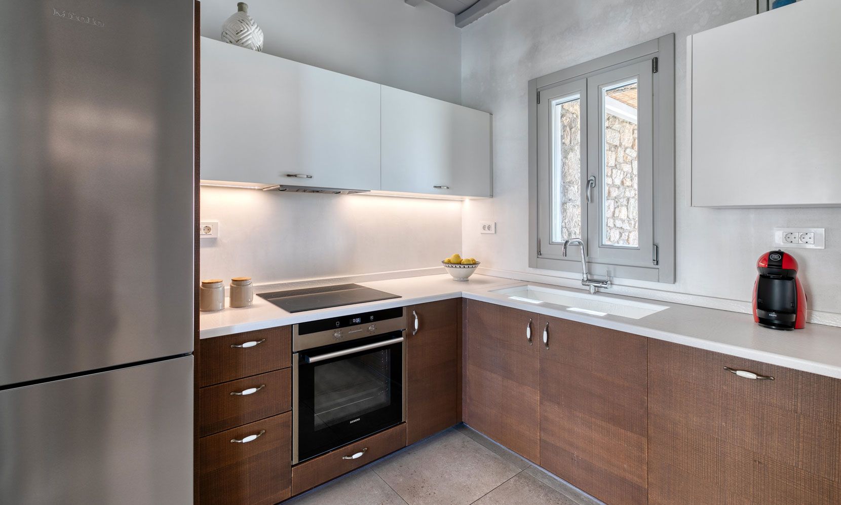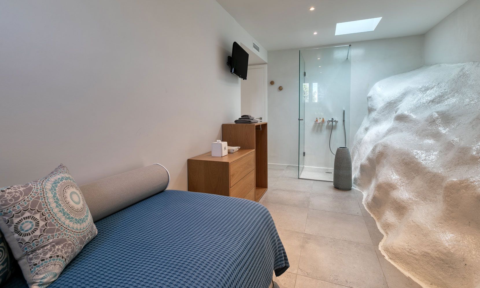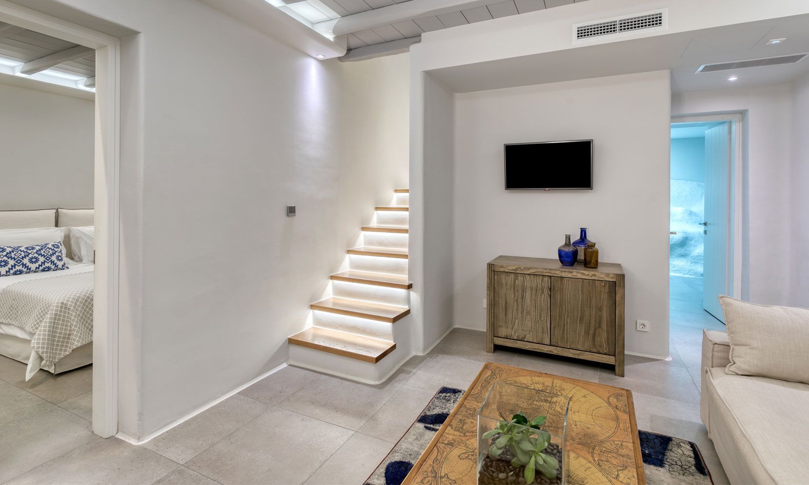 With its XXL dimensions, the 195m² Villa Dolon 4 in Mykonos will appeal to those who appreciate the comfort of large spaces and good company! While you enjoy the last rays of the sun in your private pool sipping a cool drink, the children of the house will be already eating in the spacious, modern kitchen, before they retire in the play room to enjoy their favorite video games. It’s time for you to get ready for a dynamite tour in the nearby town of Mykonos, knowing that your island home waits to offer you a well-deserved relaxation in the arms of the full of aromas Cycladic night.