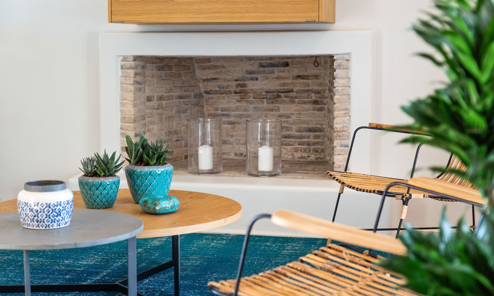 Living Area with an open plan fully equipped modern Kitchen, a WC and indoor Fireplace.