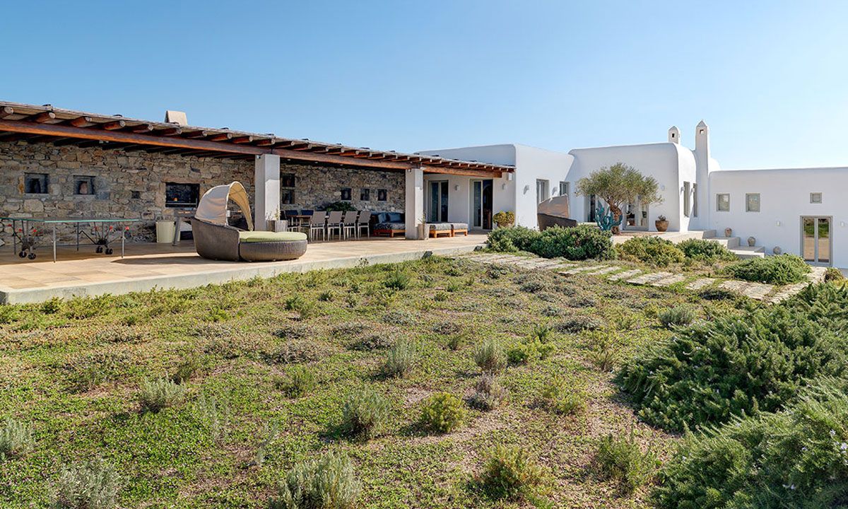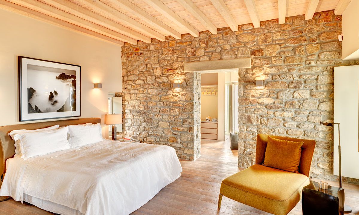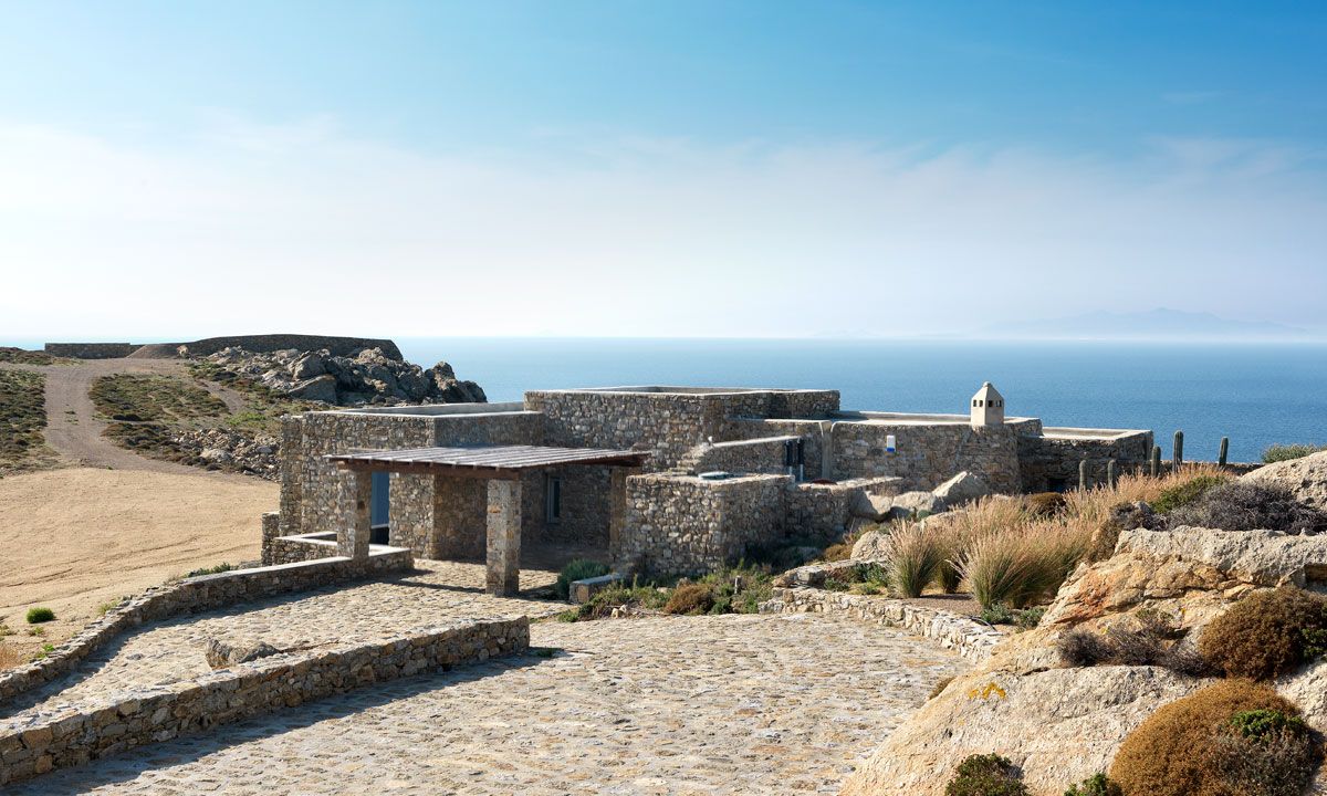 Mykonos Villa Dorian is one of Mykonos’ largest residential estates and can truly fulfil the highest of expectations. It straddles an unspoilt and rocky cape between the beaches of Elia and Agrari and Super Paradise. The estate affords endless views to the south, showcasing a panorama of islands: Donousa, Naxos, Paros, Antiparos and Ios. This unique property, which sleeps eleven people, designed by Ed Tuttle, the founding designer behind the Aman brand, is the most exciting rental property to sparkle on the Mykonian scene for a long time.