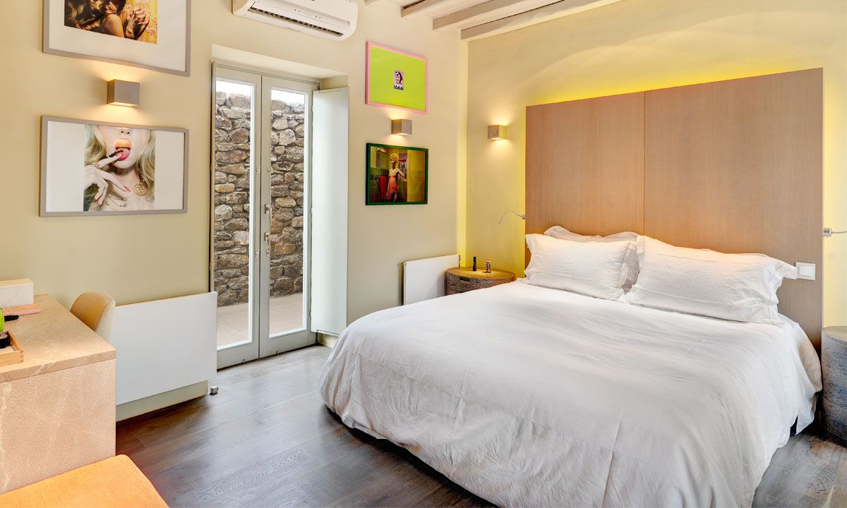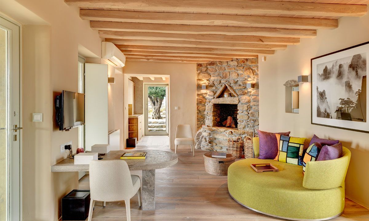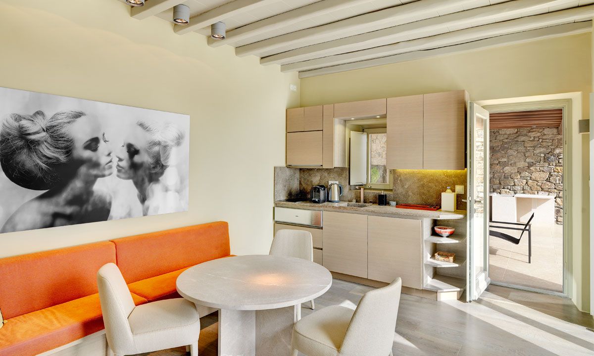 Our property’s focal point is the Clubhouse featuring a heated pool, Jacuzzi, basketball court and in house gym as well as other facilities. A brief walk away from here one can find serenity in the master suite, fondly known as the Keli. Close by, situated in a separate typical Mykonian building, four more suites are housed offering stunning views and eclectic amenities.