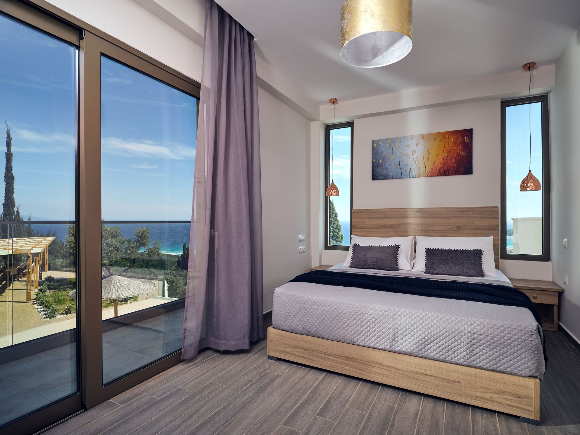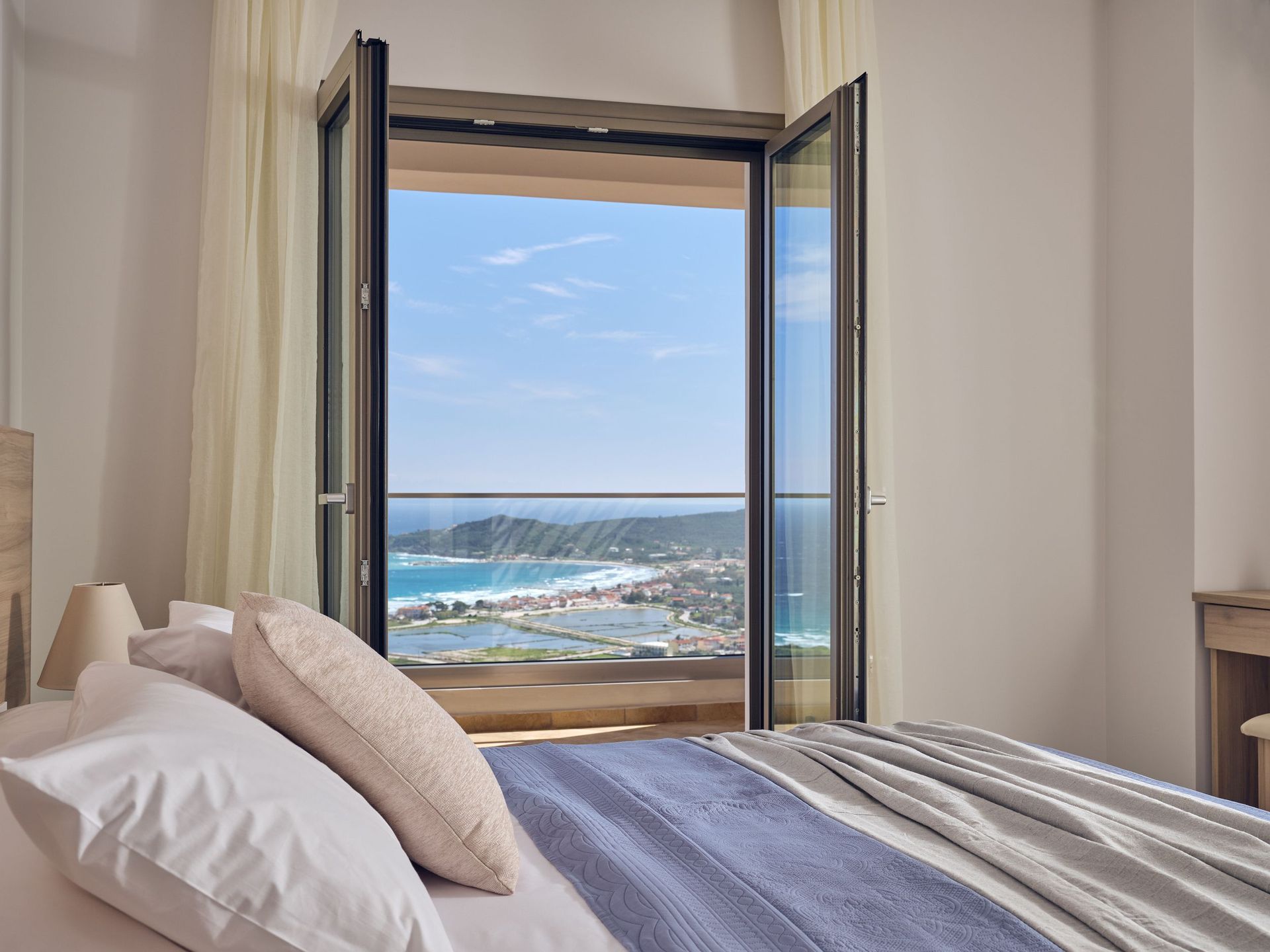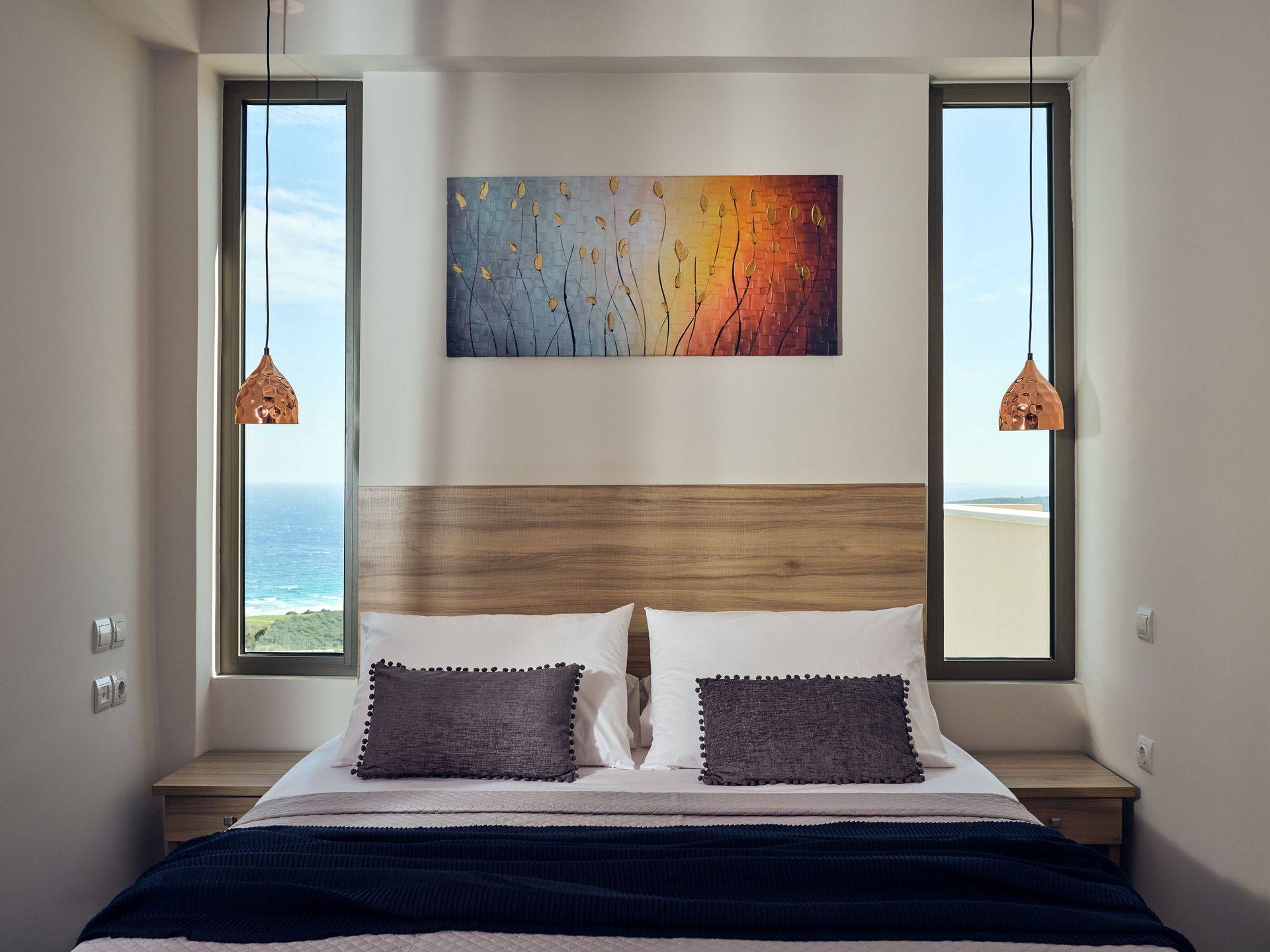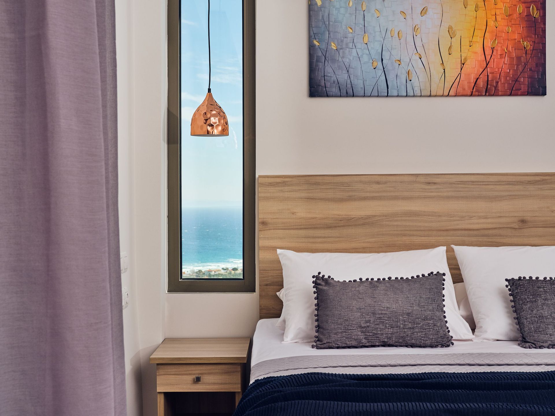 1 Guest Suite with double bed, A/C, en-suite bathroom with shower, small living area, independent access, sea view