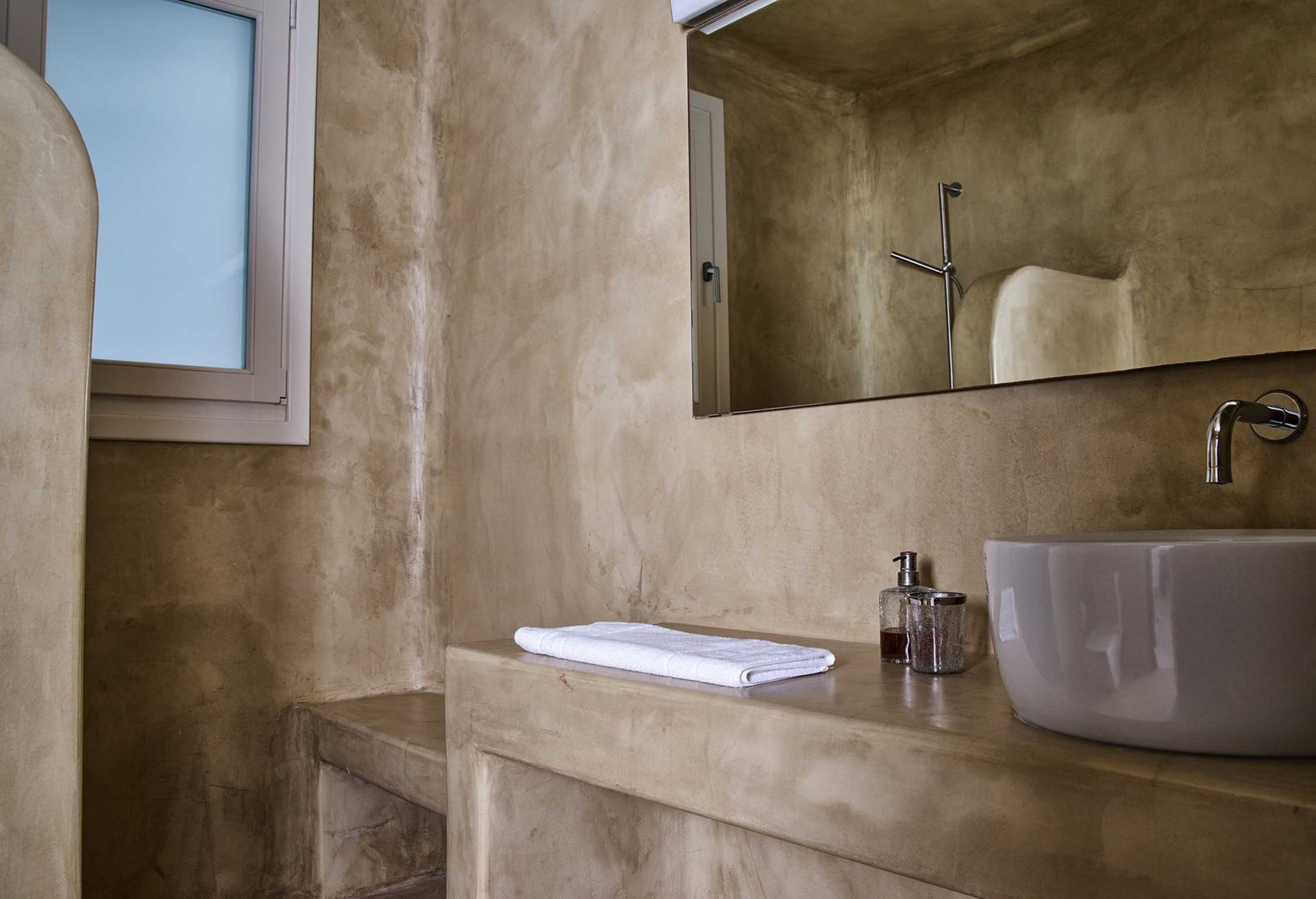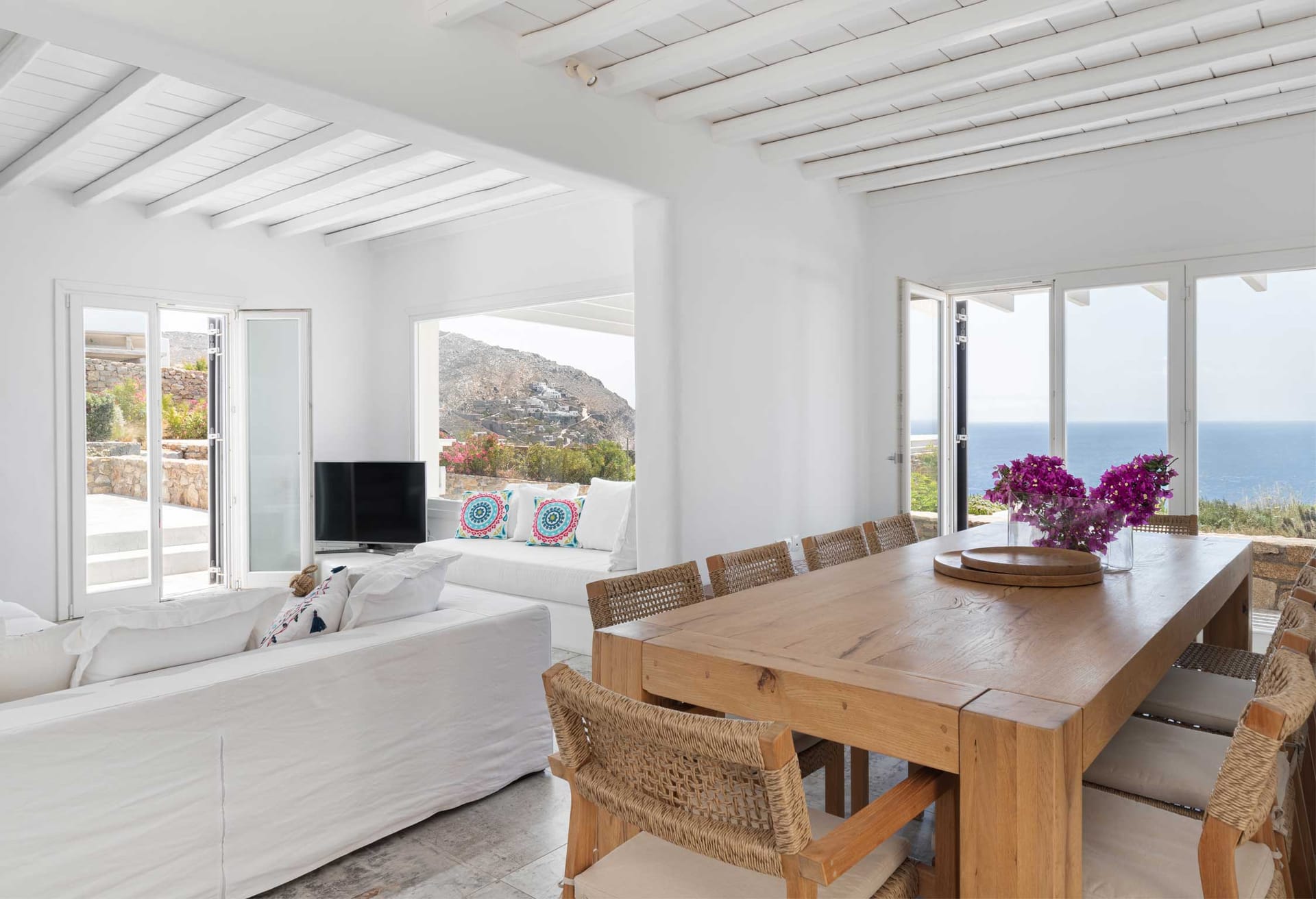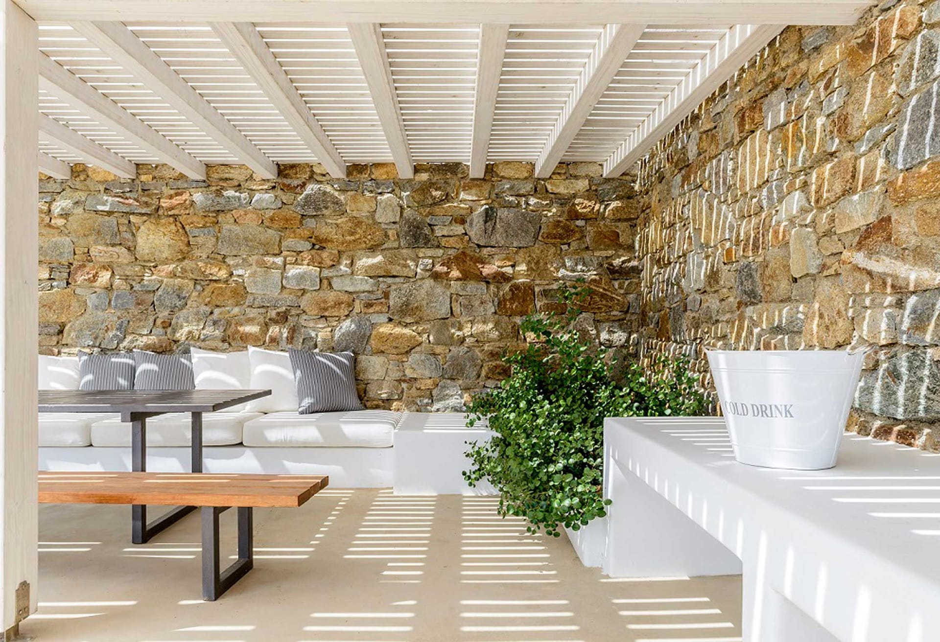 The whitewashed facades of the house, the natural rocky surroundings and the stunning sea view create the perfect conditions for a peaceful stay.