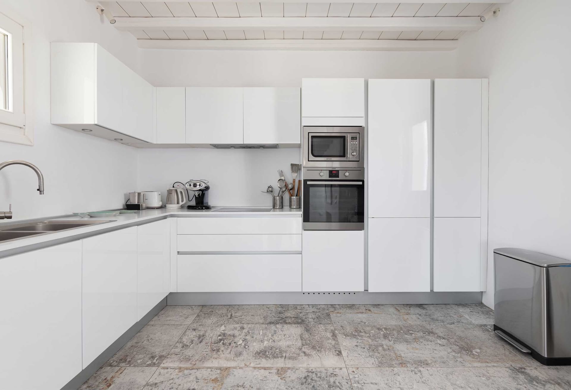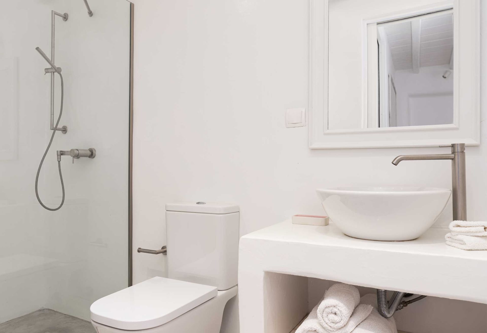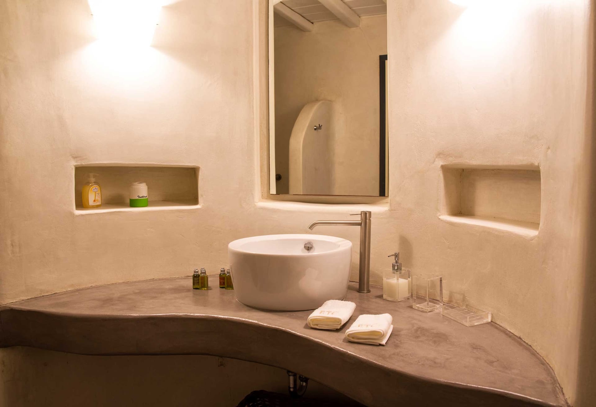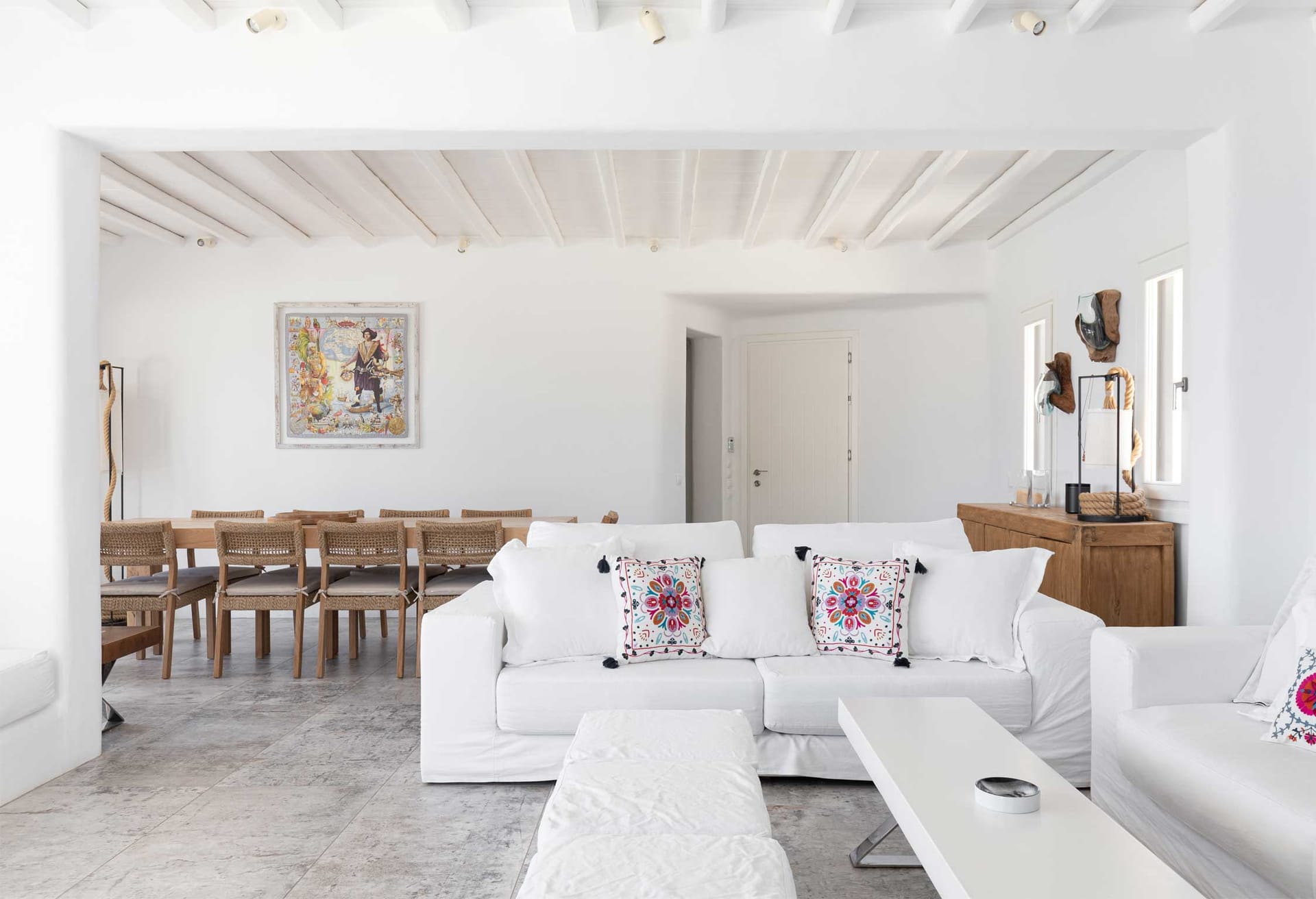 The whitewashed facades of the house, the natural rocky surroundings and the stunning sea view create the perfect conditions for a peaceful stay.