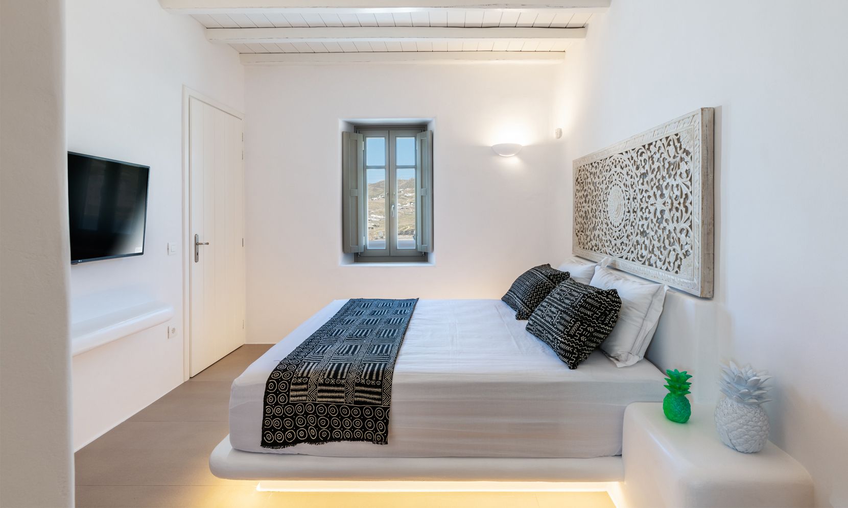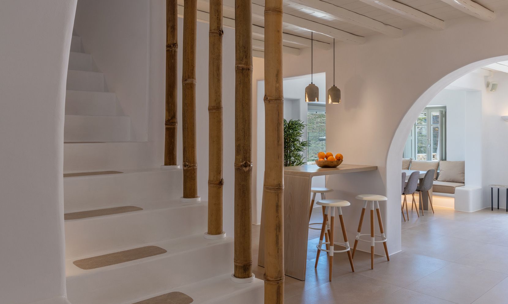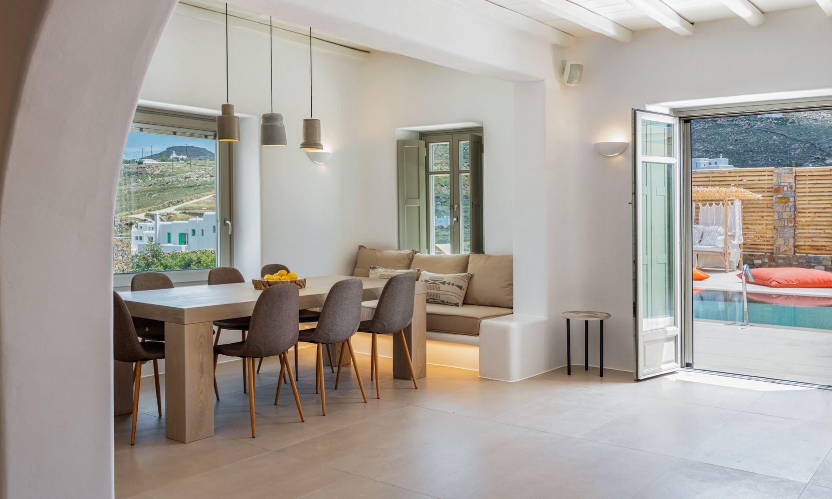 Chic, minimal and contemporary elements mixed with the traditional Cycladic style are some of the interior design elements of the villa. The unique design will amaze you. Villa Elodia 2 has 4 spacious en-suite bedrooms, all with amazing view and luxury amenities. This villa is perfect for groups of family or friends who want to spend time together and enjoy a few private moments as well, before they head out to meet the magic of the island.