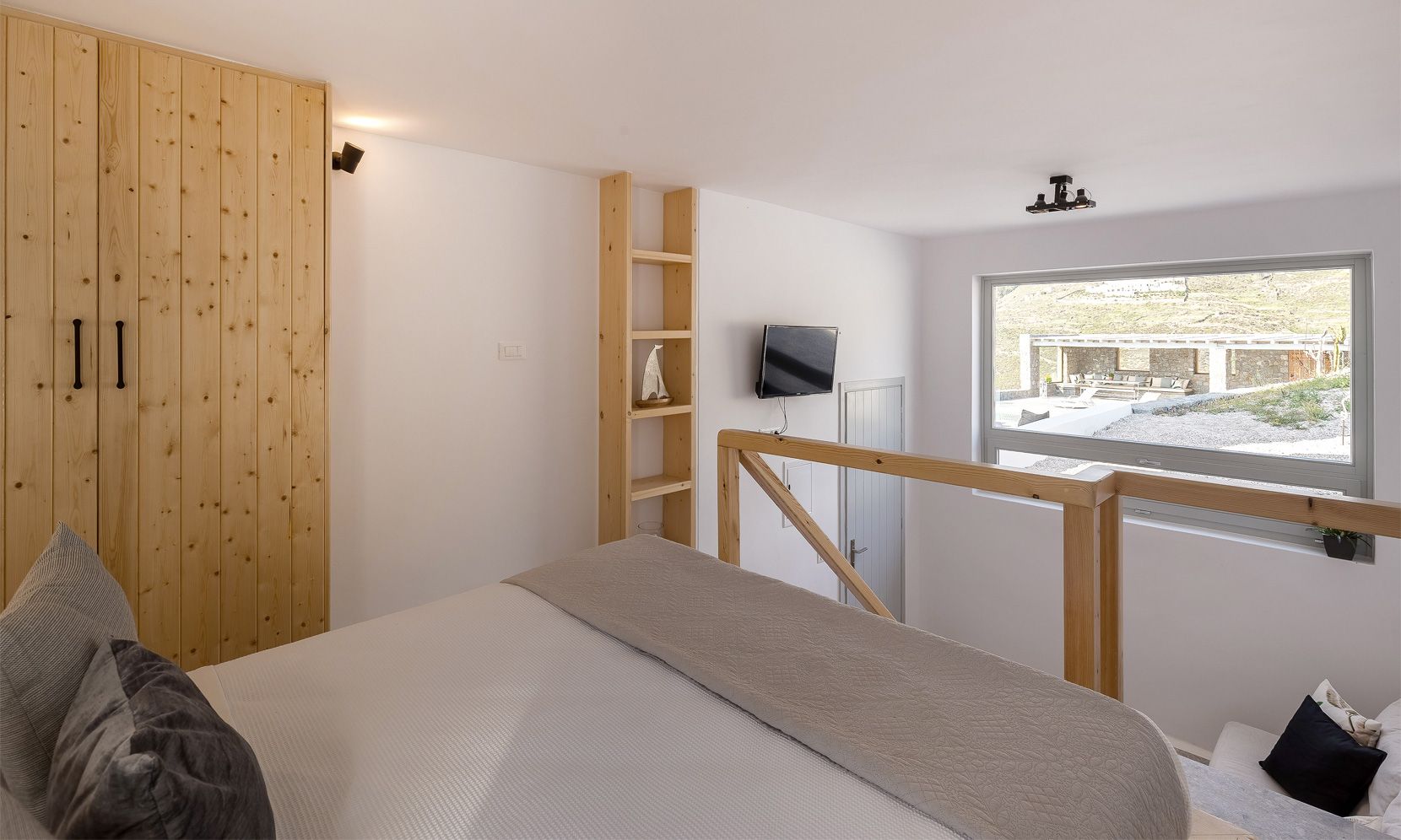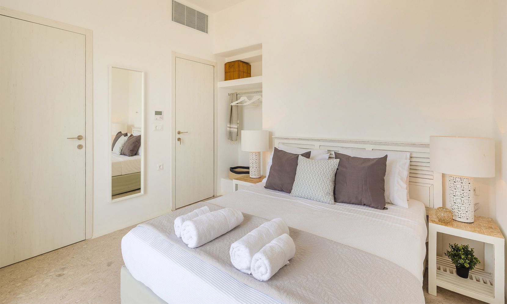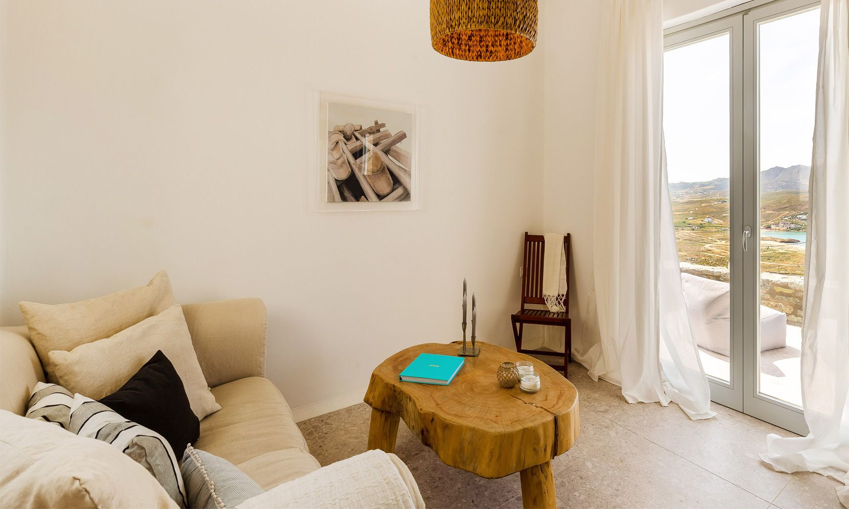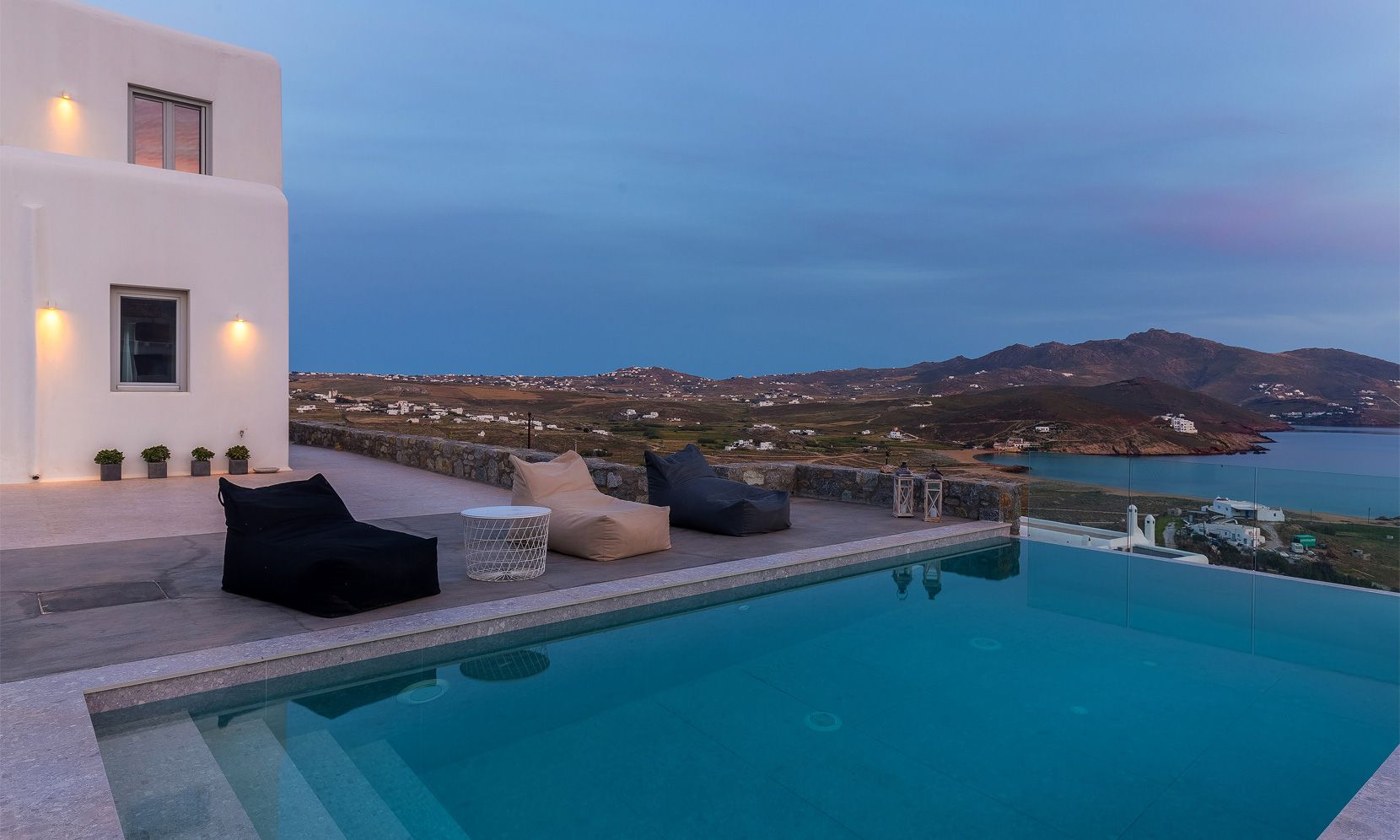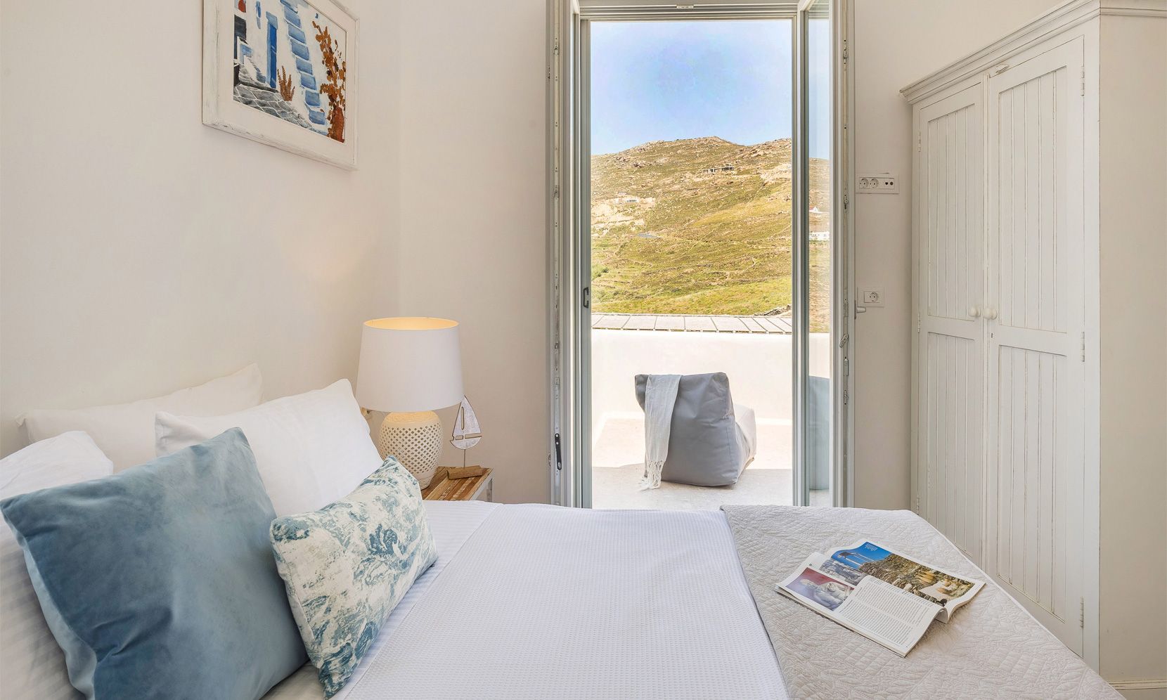 Relax with spectacular view to urban chic Ftelia beach, one of the loveheart places in Mykonos where you can enjoy privacy and have access to a couple of the most popular beach clubs and restaurants of the island.