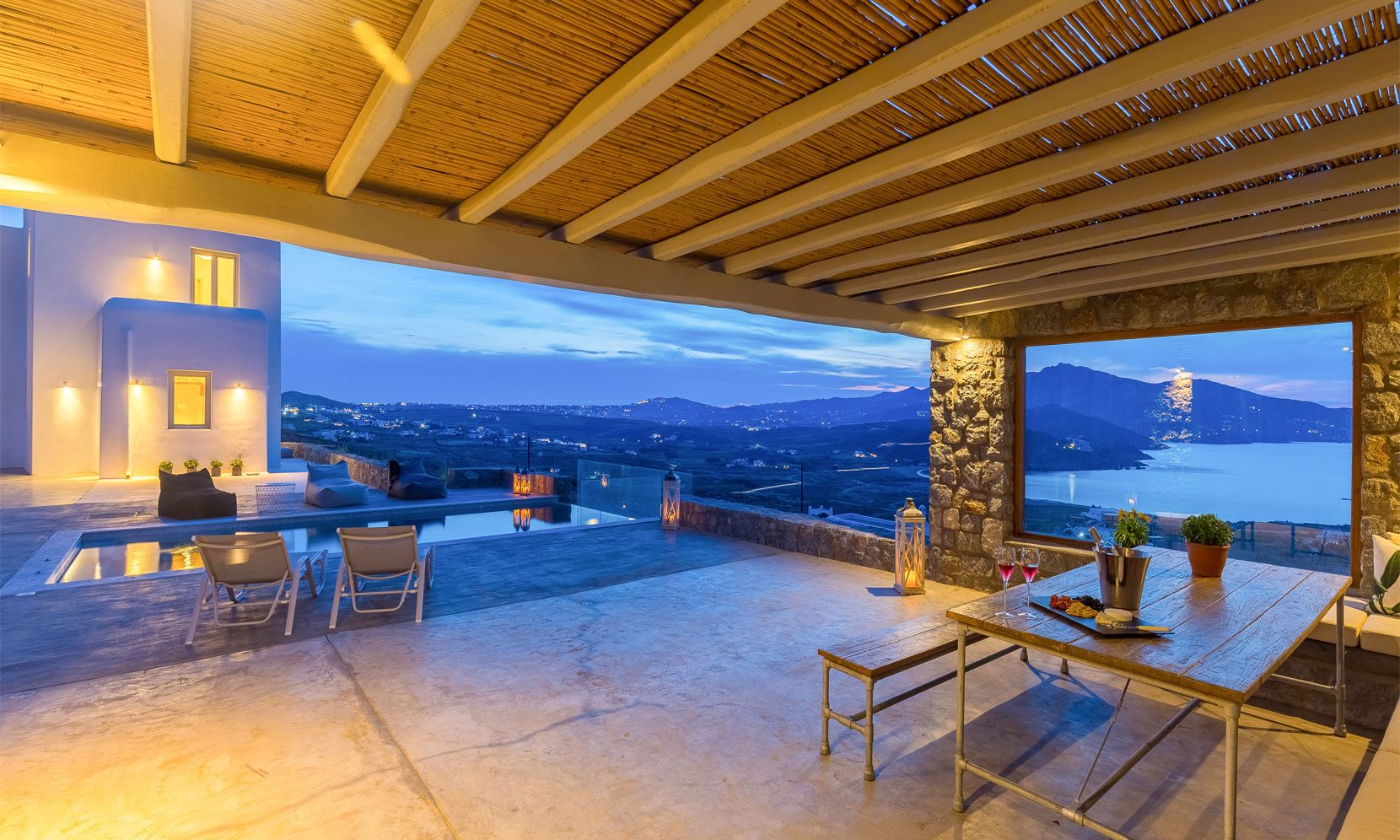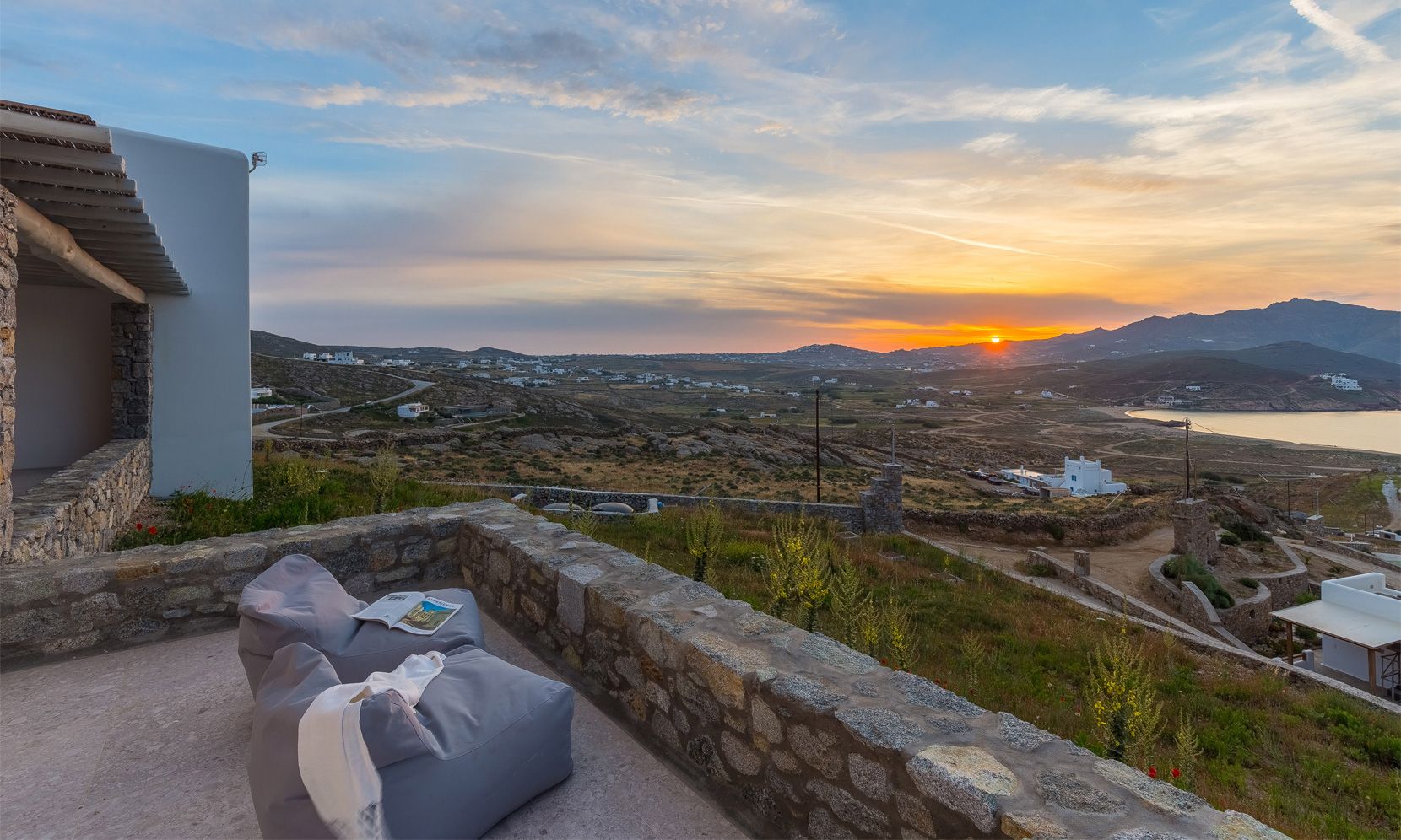 Enjoy your dinner under the shaded exterior dining area and have a nap on the sunbeds under the lightful mykonian sun!!!