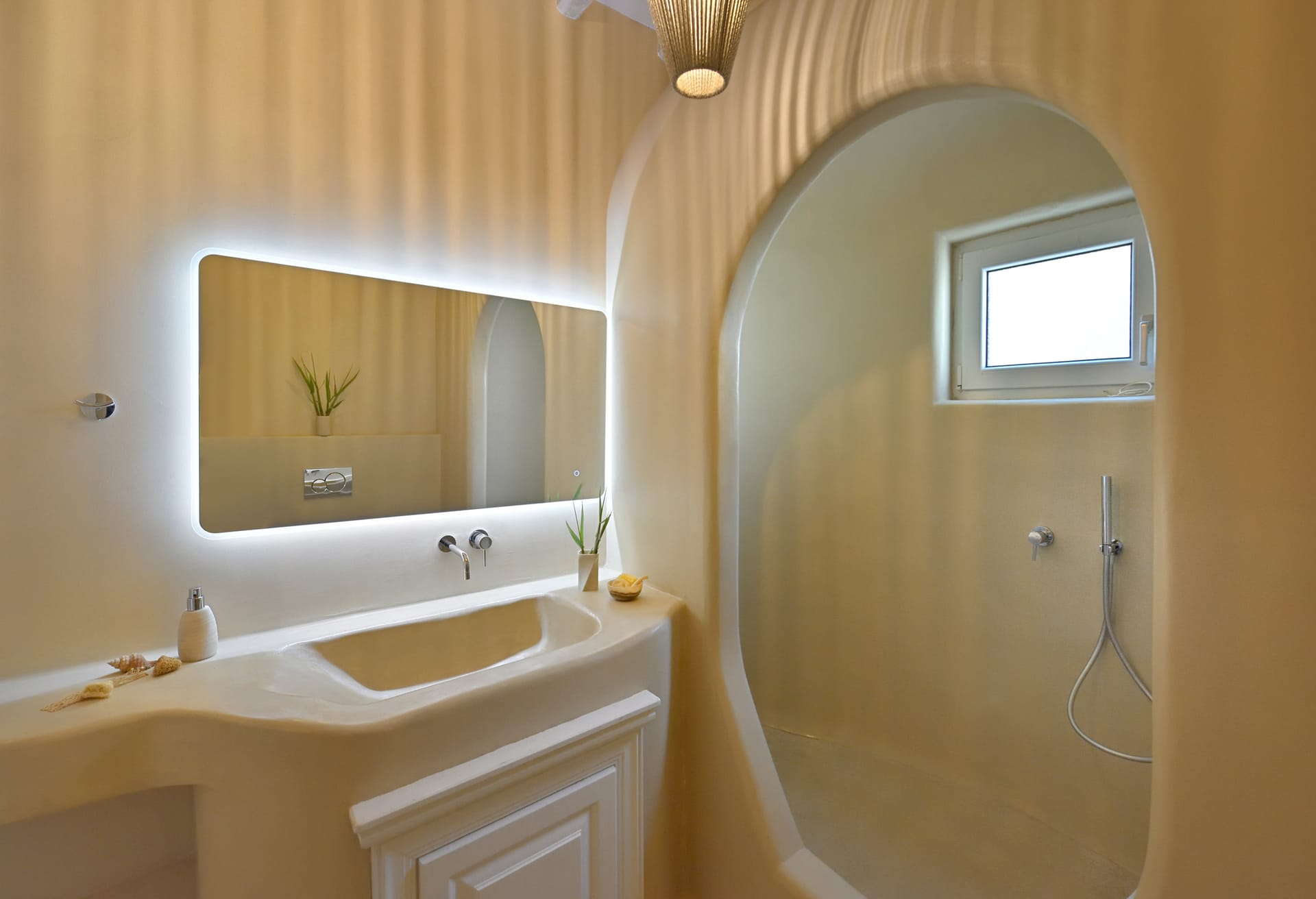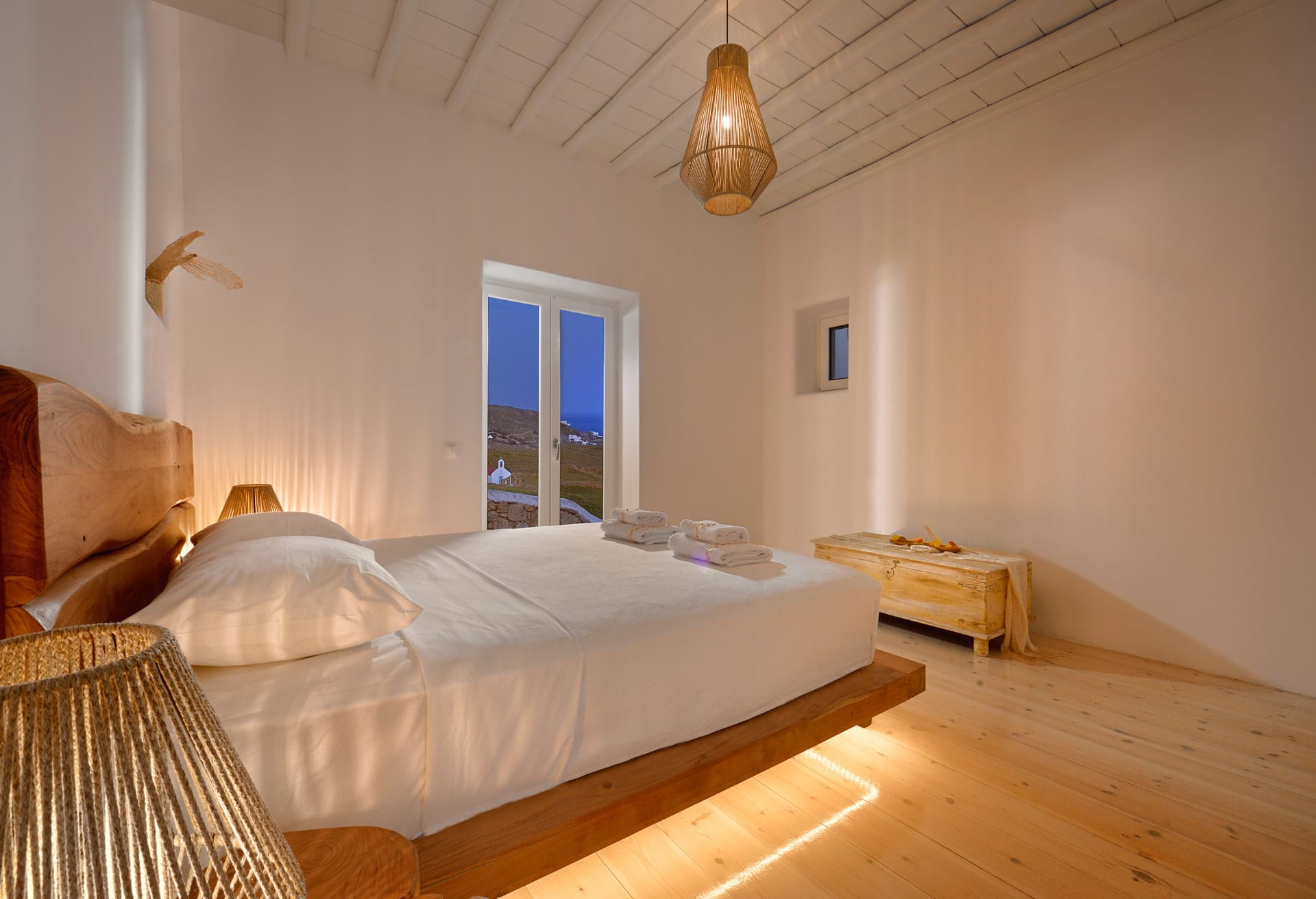 In perfect balance with the surrounding landscape Mykonos Villa Evelyn 3 showcases sophisticated elegance and contemporary comfort, mingling traditional elements with modern luxury.