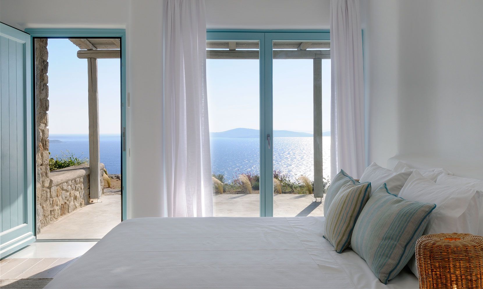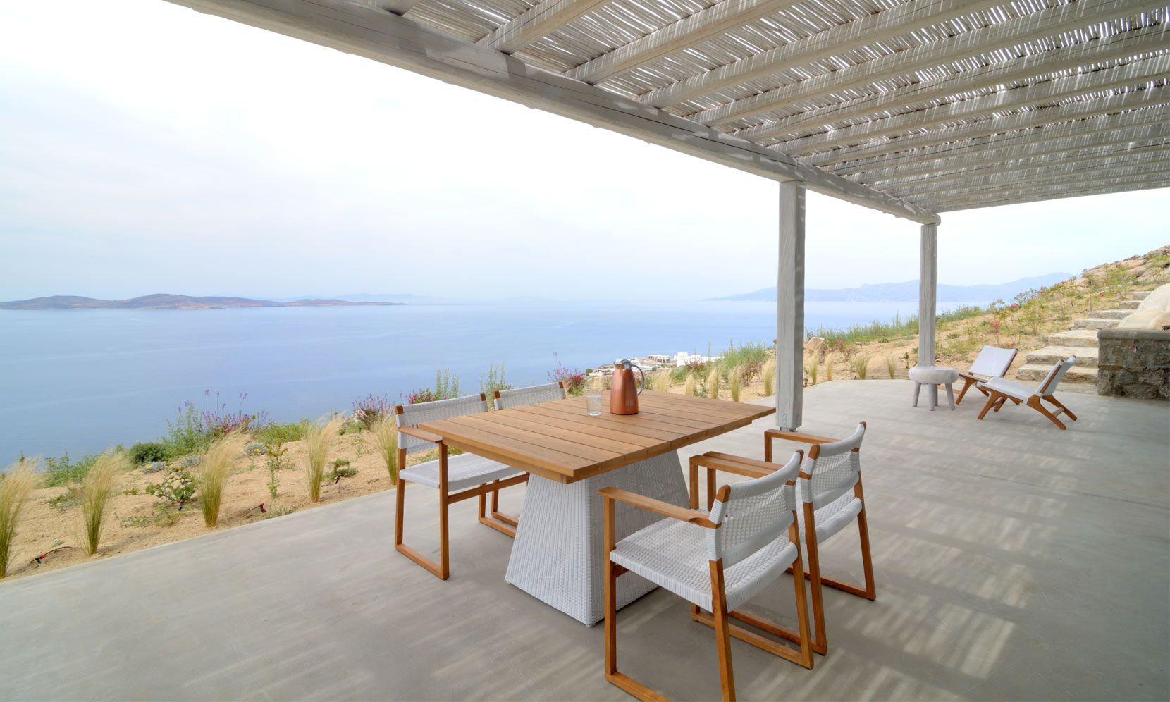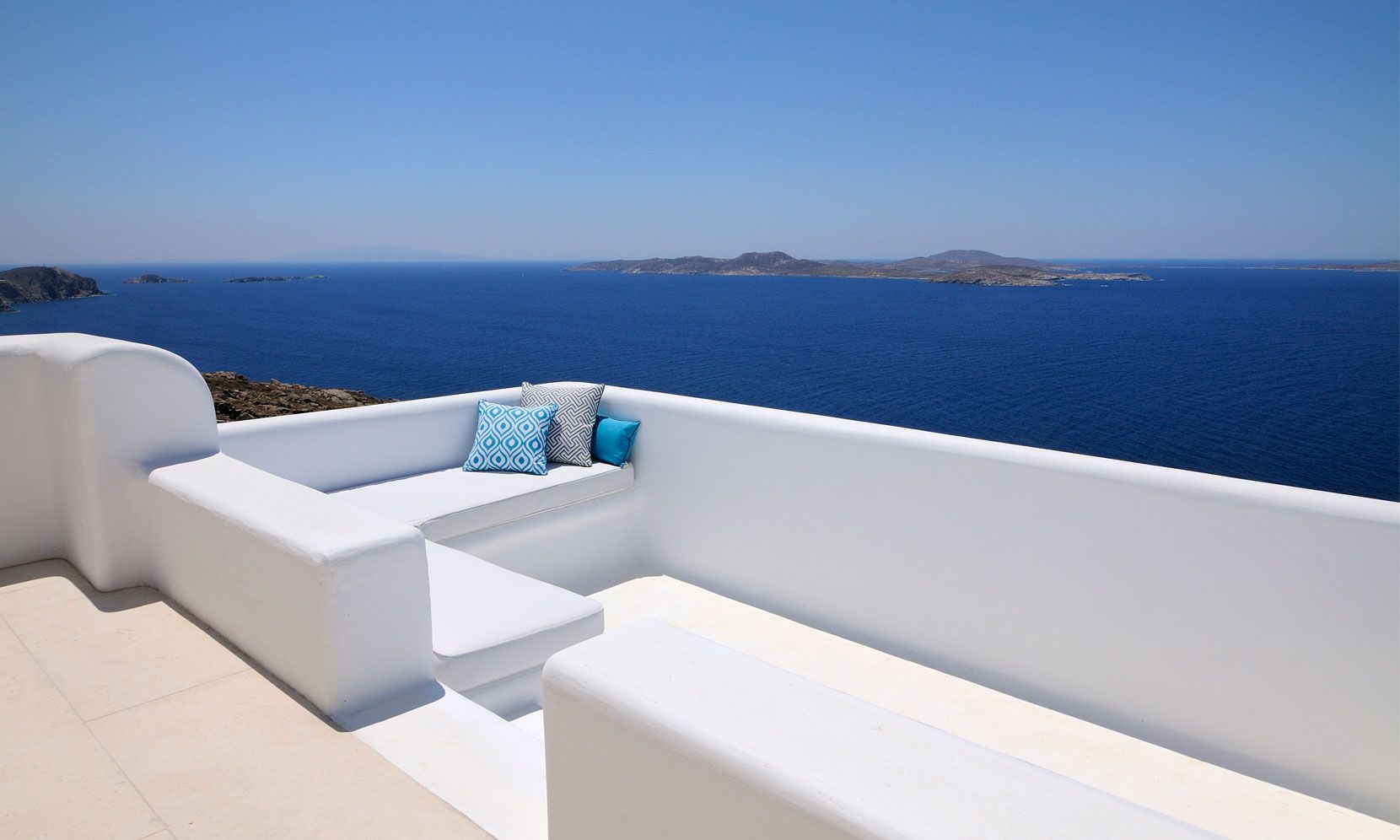 White Cycladic elegance, pistachio green shutters and unobstructed marvellous views of Delos and Rheneia, make this Villa the ideal relaxing experience and a perfect fit for the island of Mykonos.
