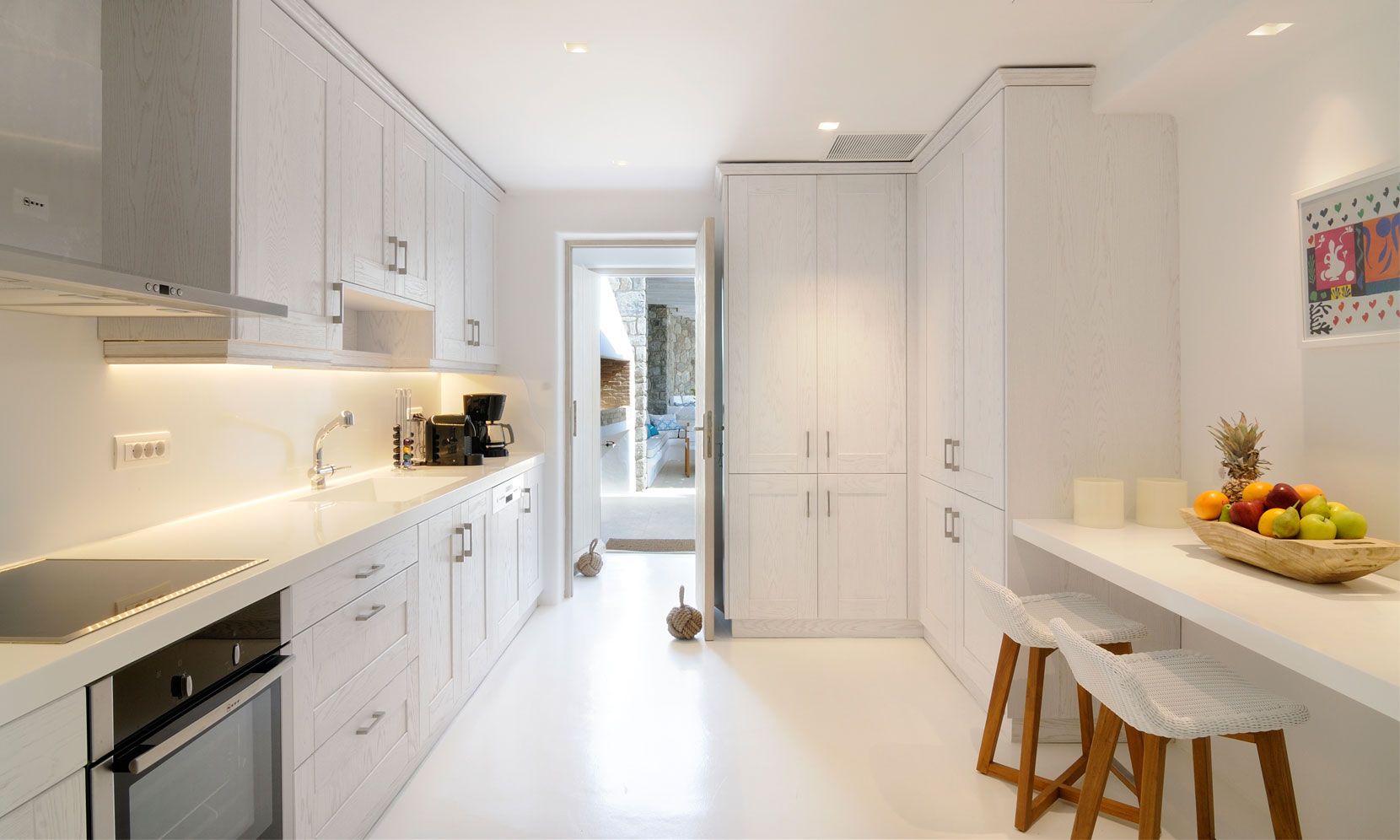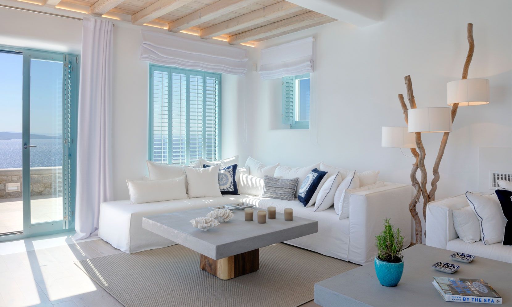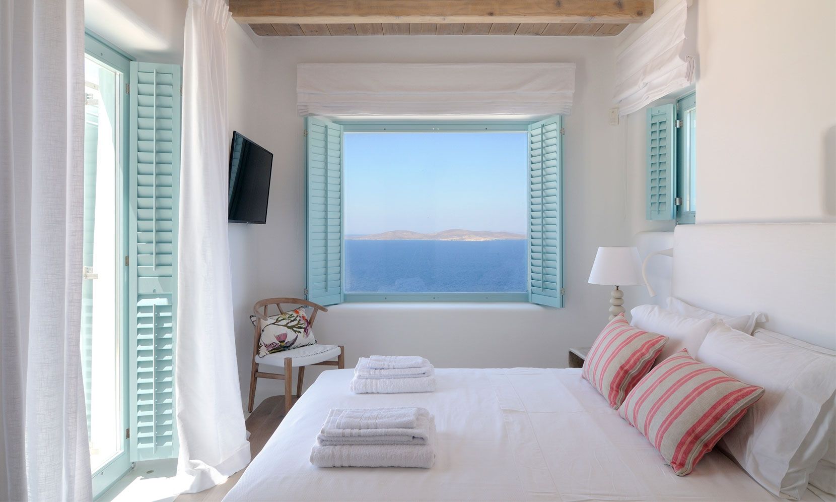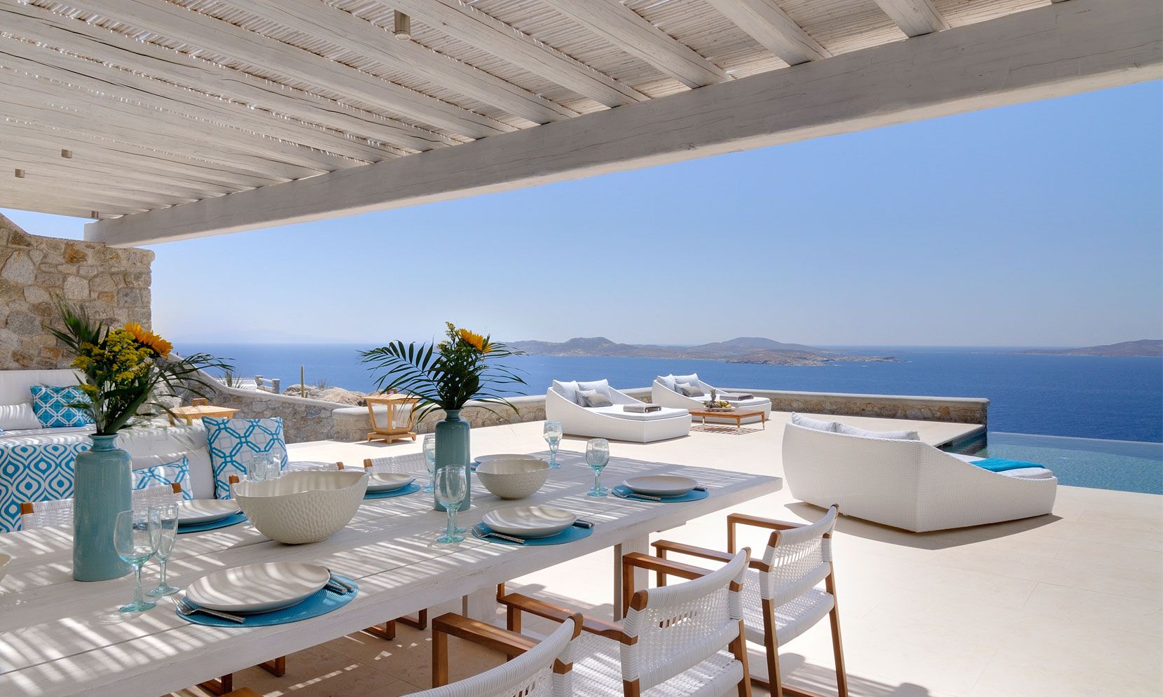 White Cycladic elegance, pistachio green shutters and unobstructed marvellous views of Delos and Rheneia, make this Villa the ideal relaxing experience and a perfect fit for the island of Mykonos.