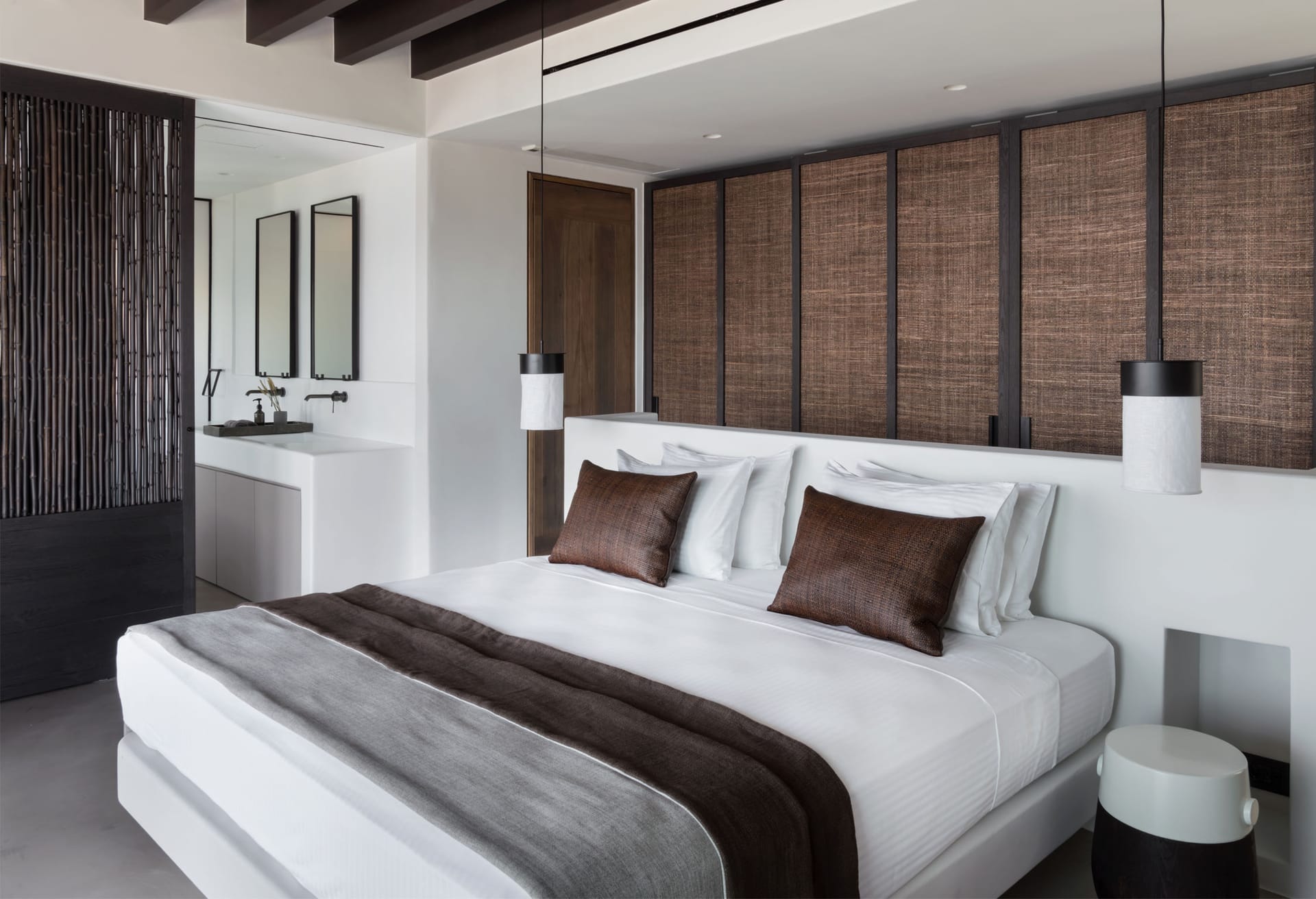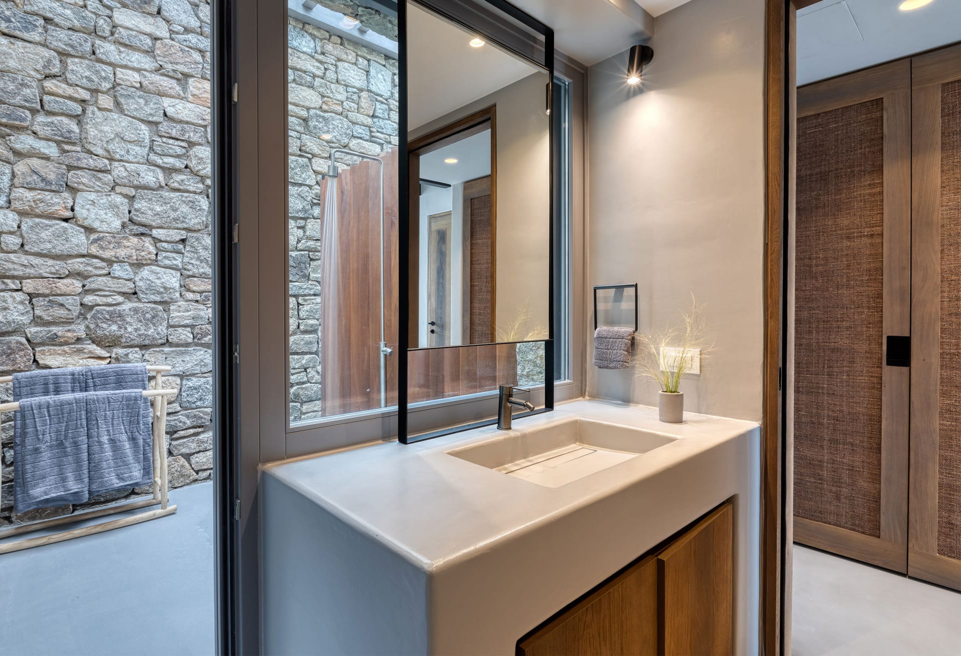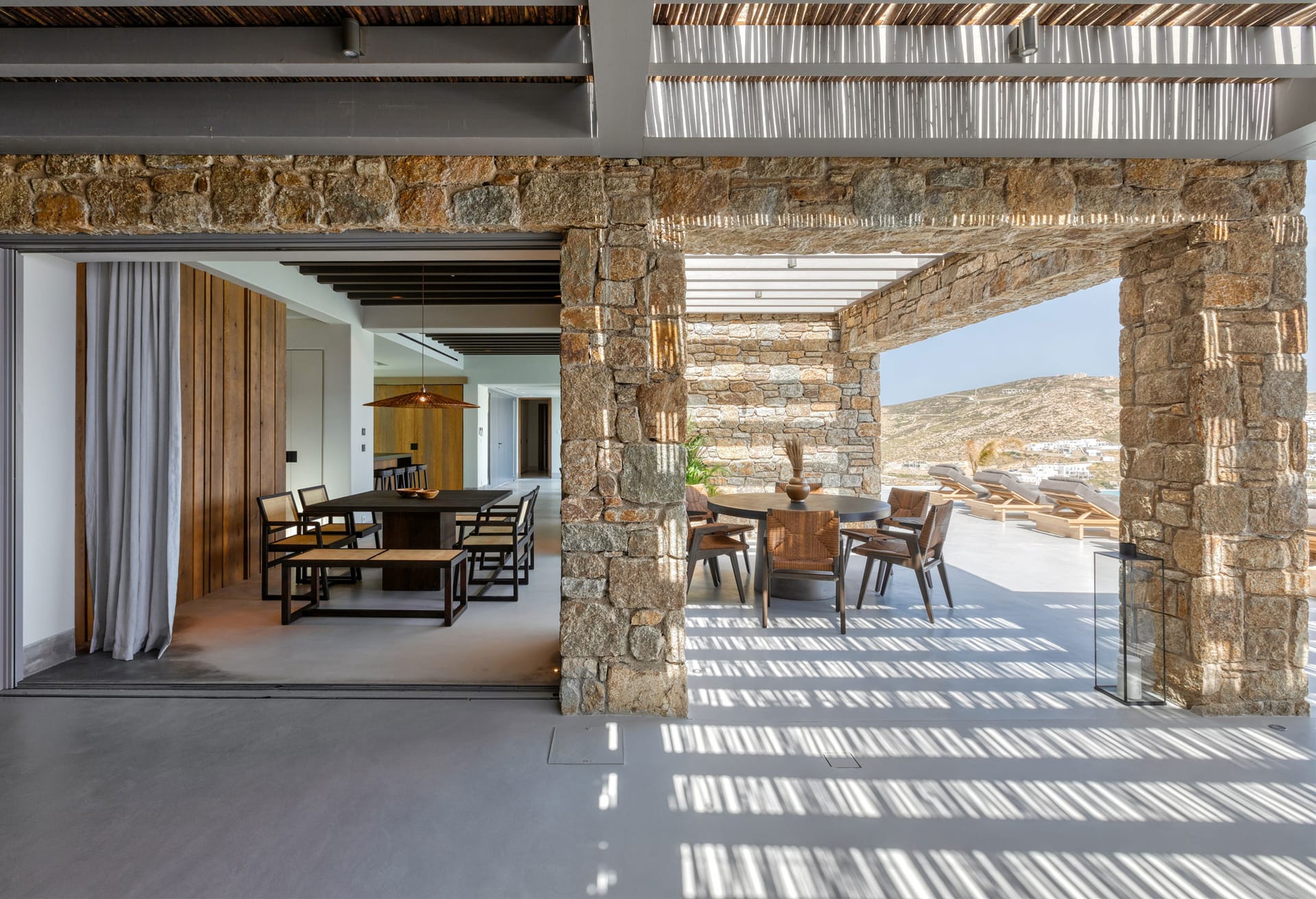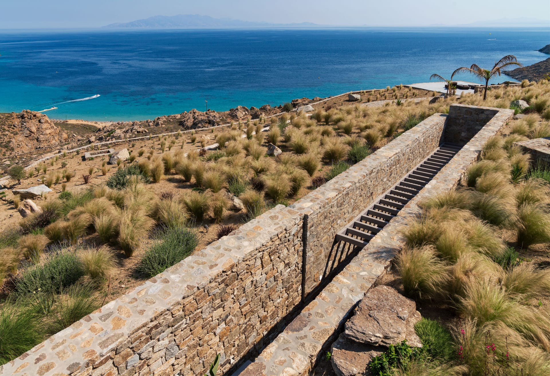 Unravel the tangle of Ariadne, discovering one by one all the interesting, elegant, and tastefully made corners of this modern, luxurious, and brand new Mykonian house. A high-level team in the field of luxury home architecture supervised the creation of a unique holiday home that satisfies the tastes of its visitors with its modern construction, high-quality materials, and functionality.