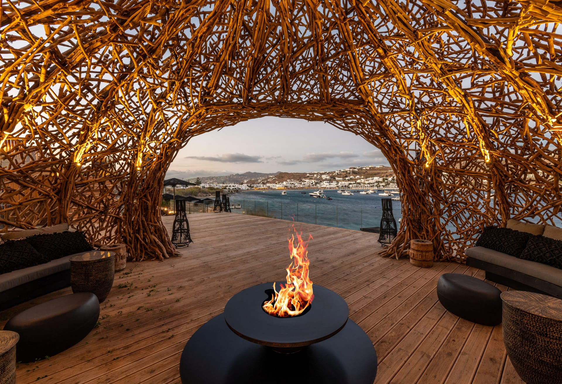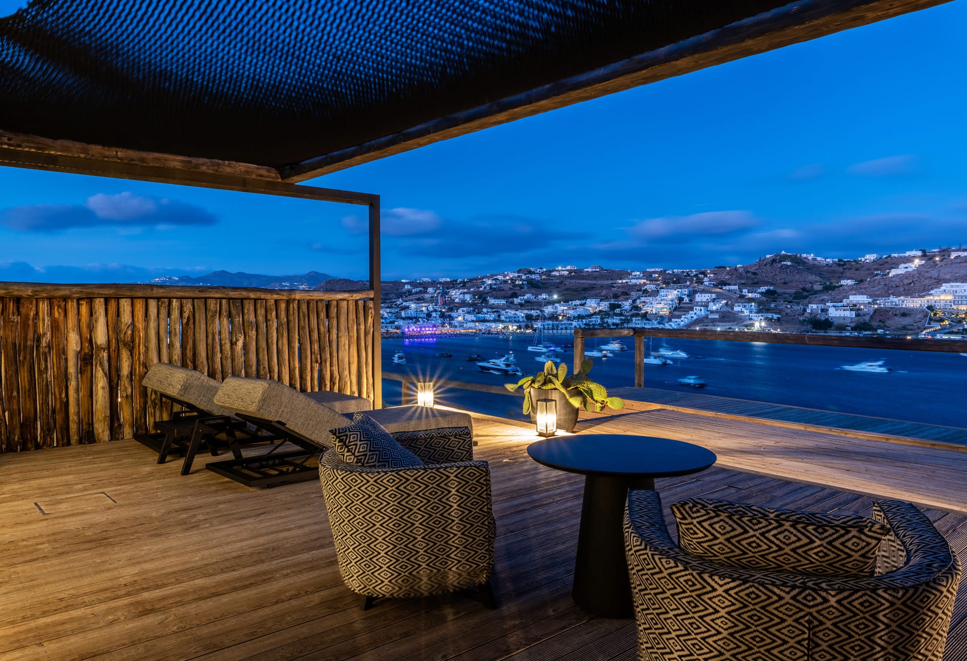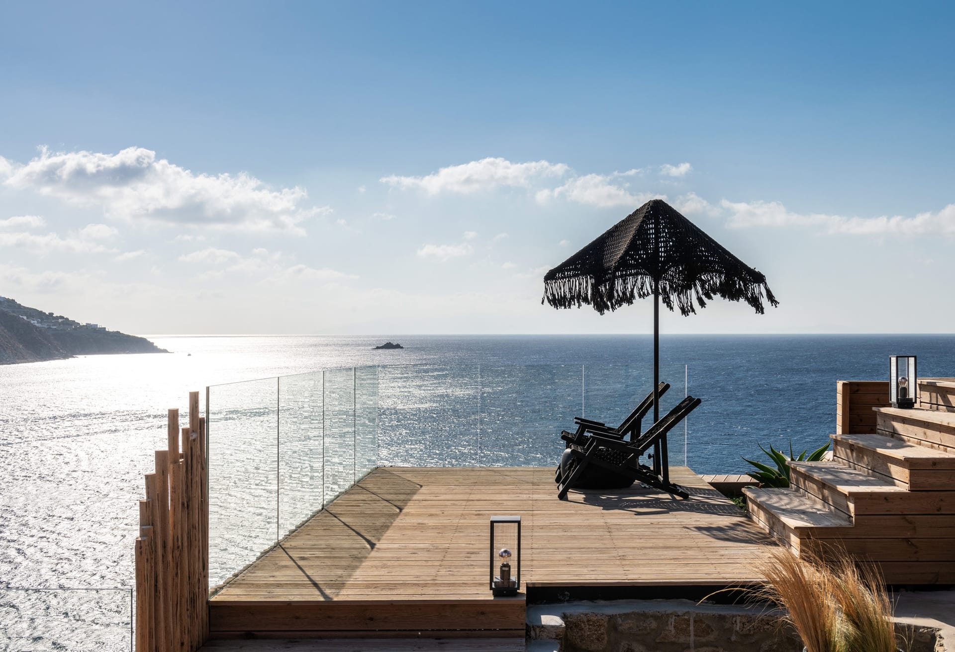 This exclusive and secluded property is situated on a hilltop overlooking Ornos bay. Oasis Villas has eleven double bedrooms with ensuite bathrooms spread on three different levels, a fully equipped professional kitchen and a modern living room. Comprised of the main building plus six standalone guest suites, the expansive property is ideal for friends or large families who’d like to maintain some privacy while holidaying as a group.
