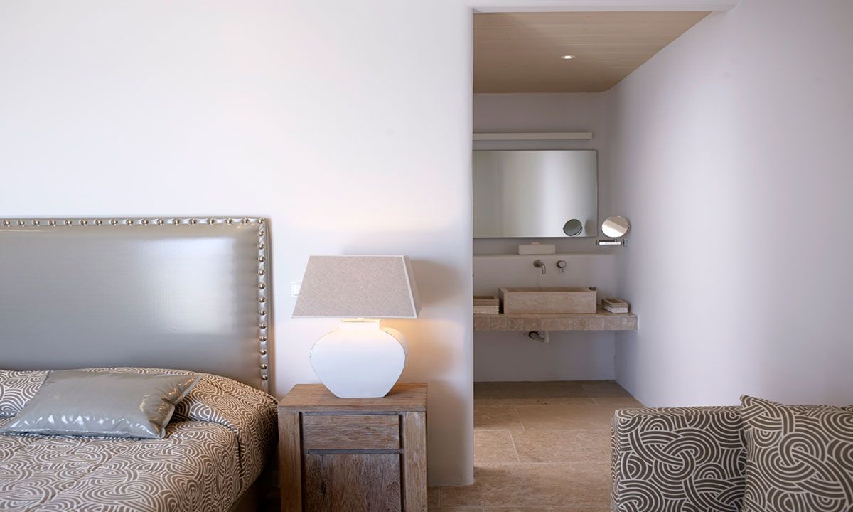 Luxury Villa Oceanides 1 is one of the biggest rental properties in Mykonos offering luxurious accommodation for 16 guests in its 8 guest bedrooms with their en suite bathrooms.