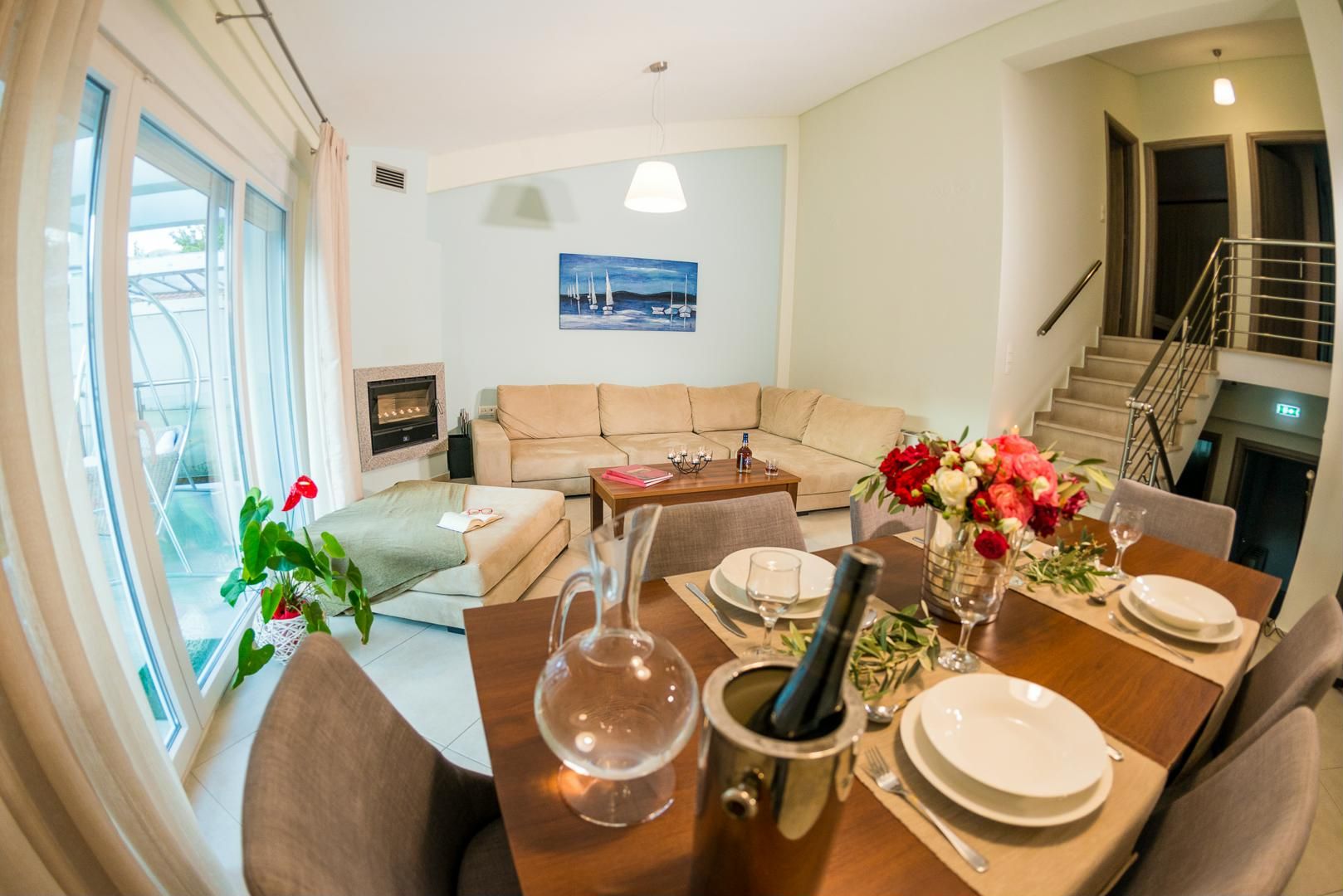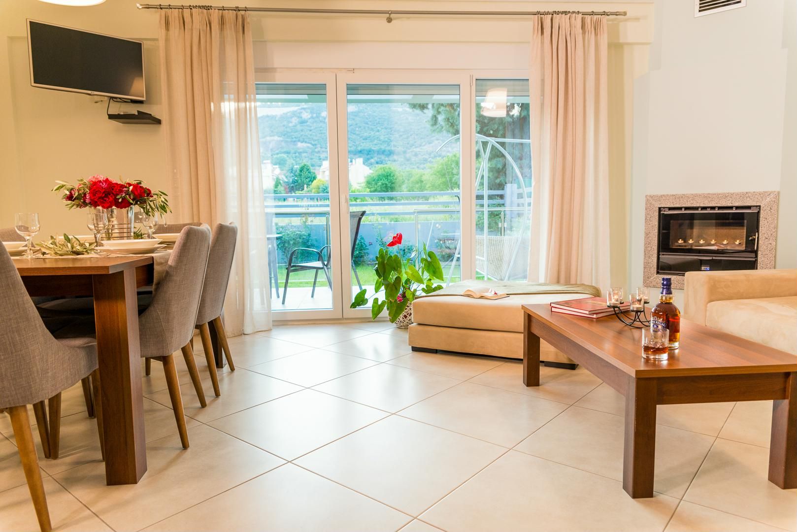 Within a private land of breathtaking view, lies the Luxury Villa Oceanides 1 consisting of four attached villas arranged in such a way that their residents can independently enjoy internal privacy and comfort, as if in their own home, whilst externally are offered the opportunity to relax or party at the adjacent verandas or the surrounding spaces.