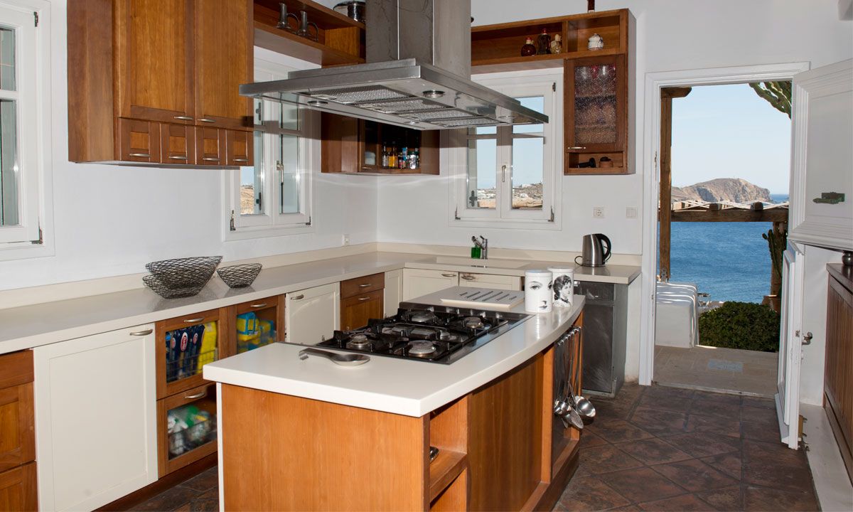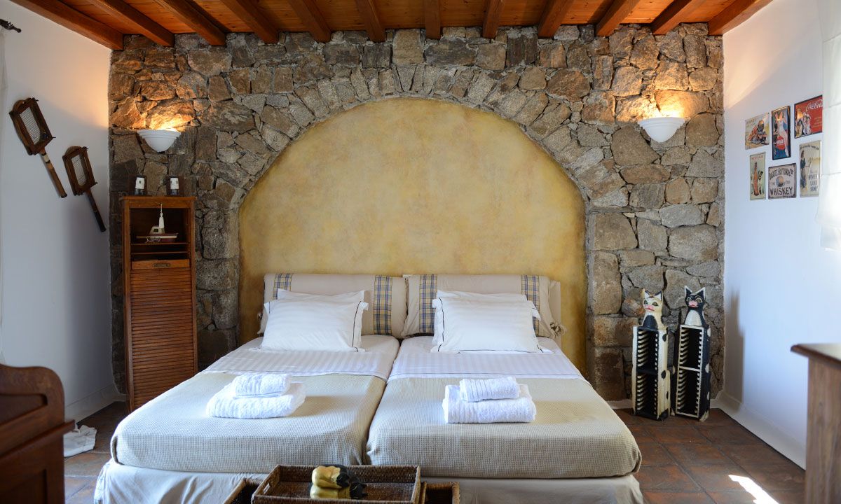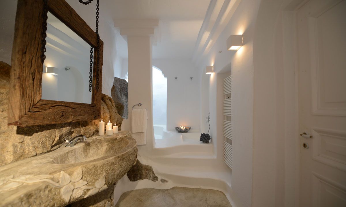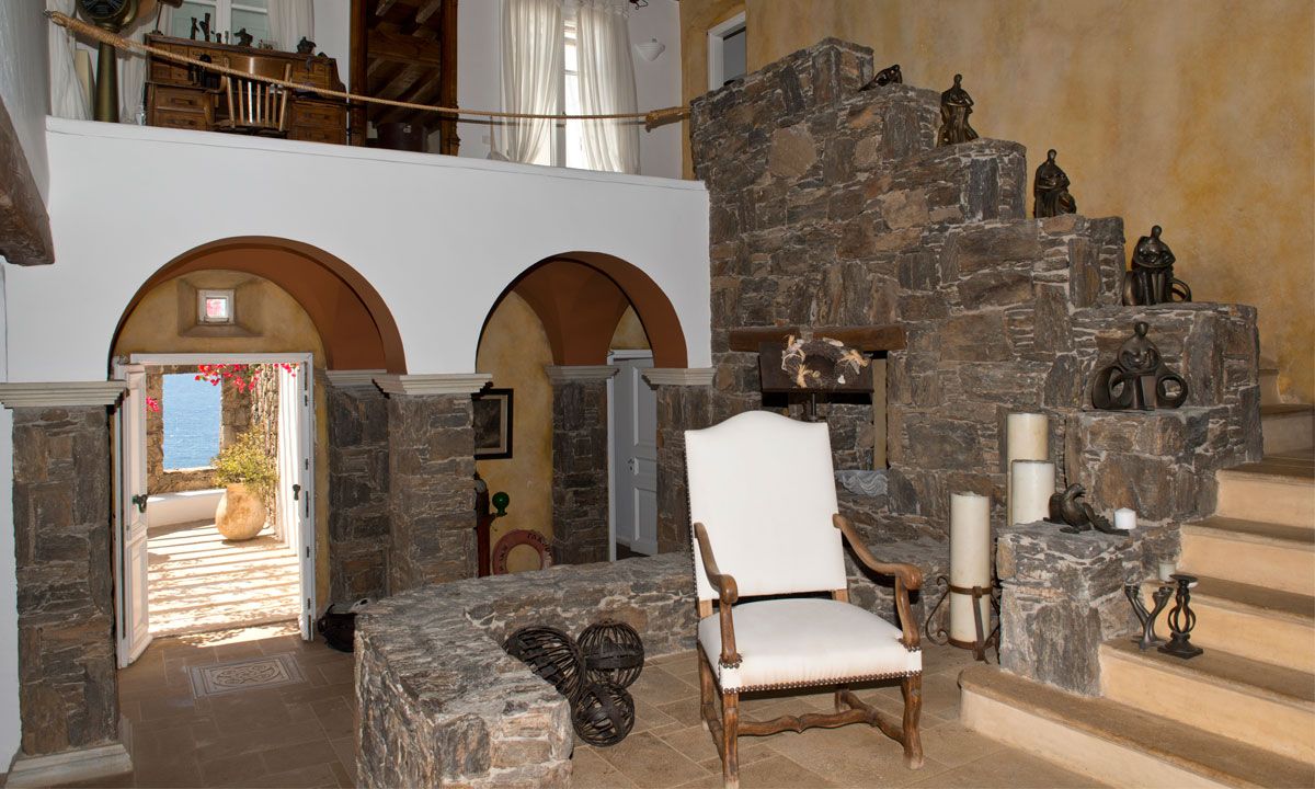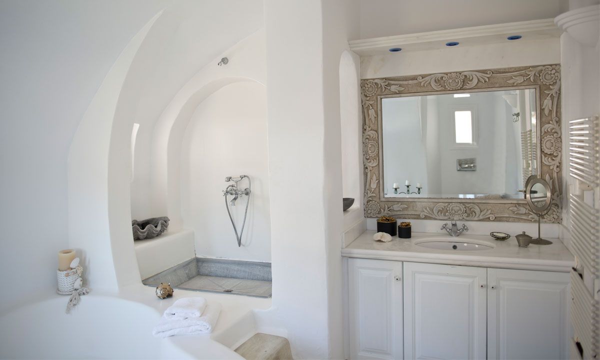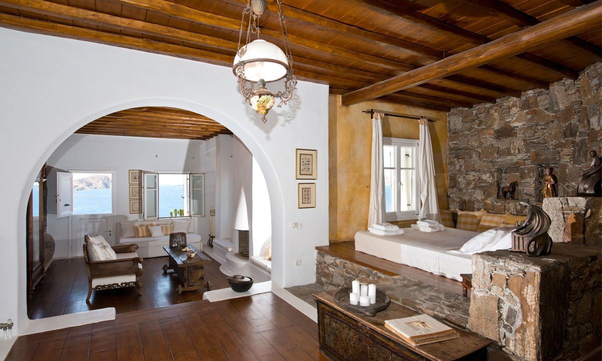 The traditional Cycladic architecture is obvious inside the villa, and in combination with the personal interior design touches of the owner, creates an elegant result and an impressive atmosphere.