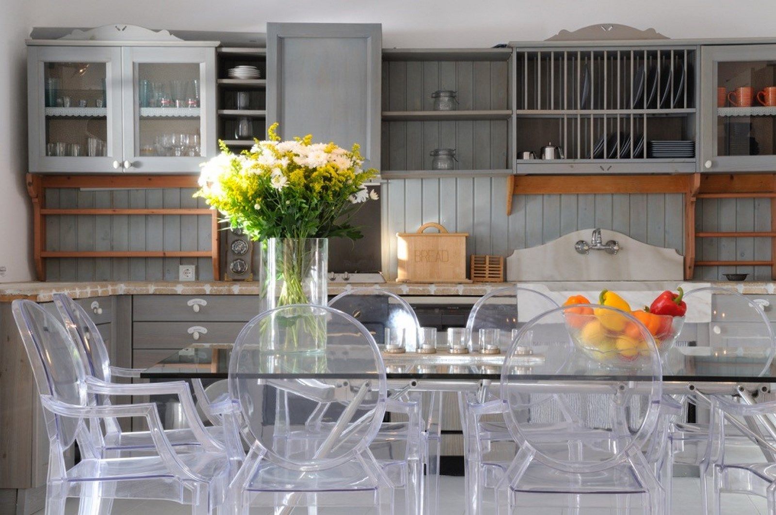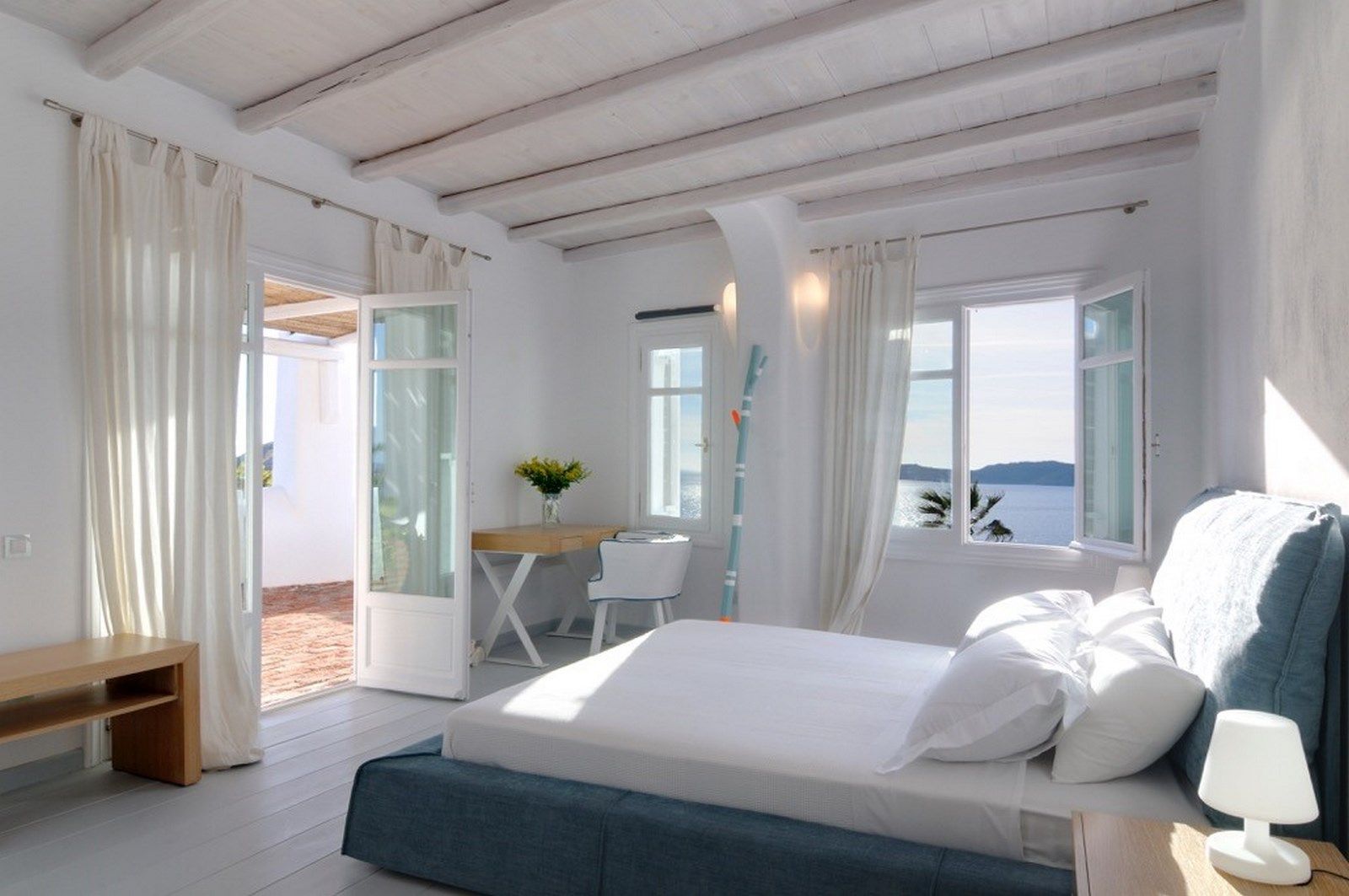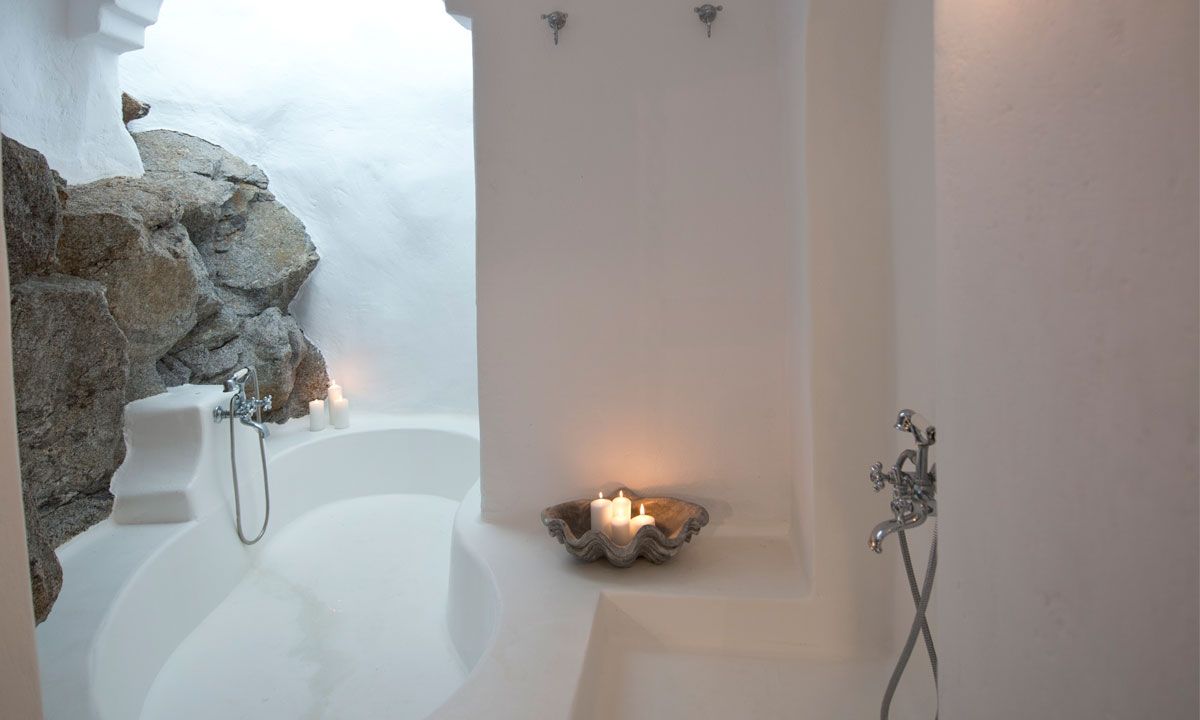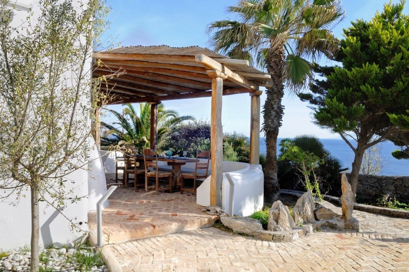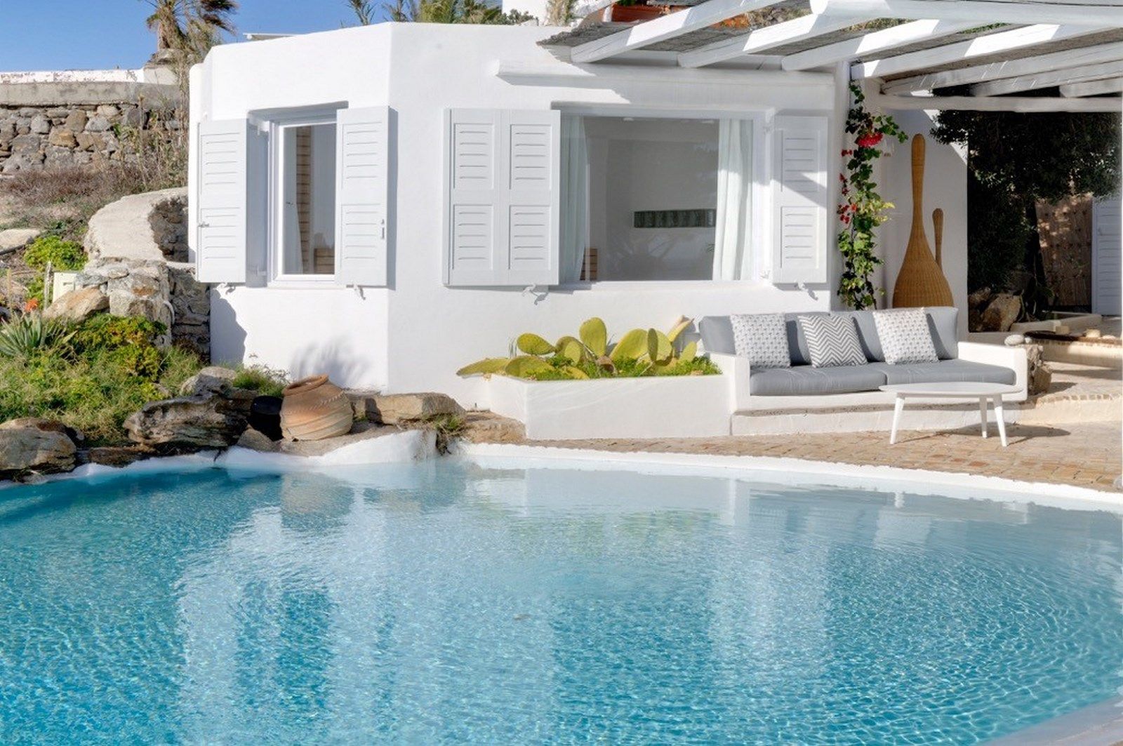 The traditional Cycladic architecture is obvious inside the villa, and in combination with the personal interior design touches of the owner, creates an elegant result and an impressive atmosphere.