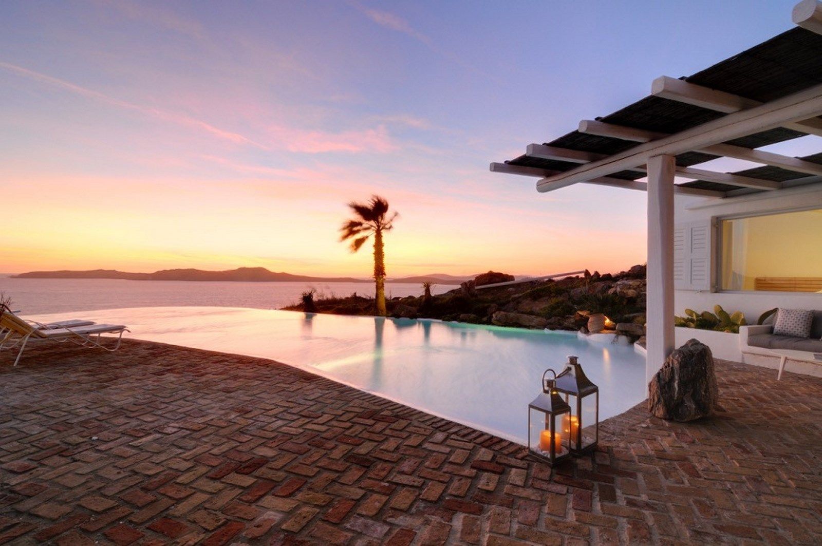 Mykonos Town is a 10 min ride, while Psarou, Ornos, St. John and Agios Stefanos beaches are within a 5 min drive or less. The view from the villa is ideal for magical colorful sunsets, and is also in walking destance from nearby Kapari beach.
