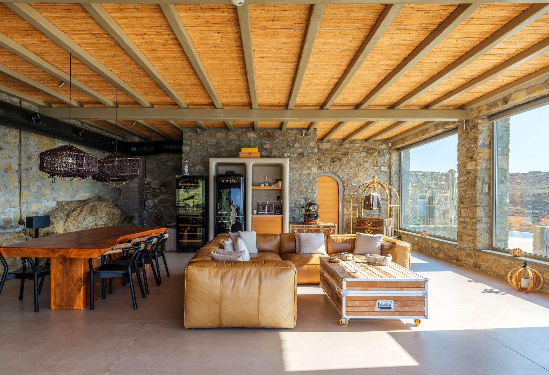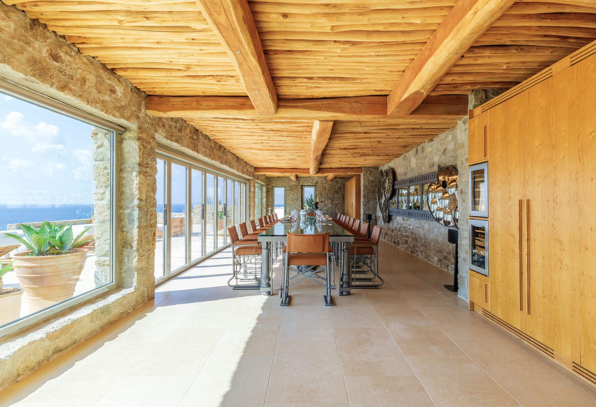 Open plan living area & dining area with sea & sunset views and direct access to the private pool