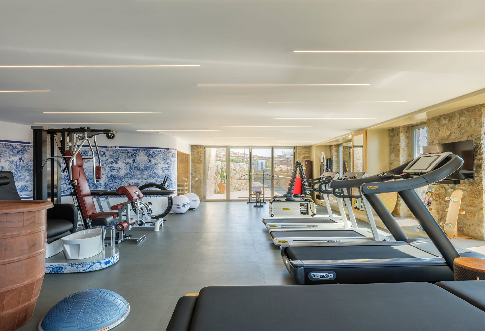 The villa also includes a fully equipped fitness facility featuring the Dior brand, allowing guests to engage in exercise and maintain their physical well-being throughout their vacation. Additionally, the Dior gym is complemented by the presence of a sauna.