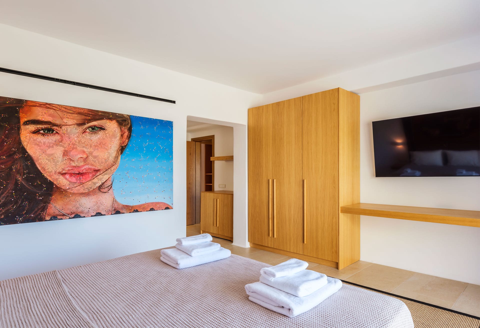 This unique villa can accommodate up to 26 guests in 13 bedrooms. Villa Paradise is divided into three separate villas. The first villa encompasses an expansive open living space, a generously proportioned dining area, one master bedroom, and three double bedrooms, each with its own ensuite bathroom. The second villa boasts an open-plan living area complete with a fully equipped kitchen and three double bedrooms, each also featuring ensuite bathrooms. Lastly, the third villa encompasses two open-plan living areas, a dedicated dining area, and a comprehensively equipped kitchen. Within the main villa, one will find a master bedroom complete with a walk-in closet and ensuite bathroom, along with an additional double bedroom with an ensuite bathroom. Furthermore, a quartet of guest bedrooms, all equipped with ensuite bathrooms, is available to accommodate one-third of the villa's guests.