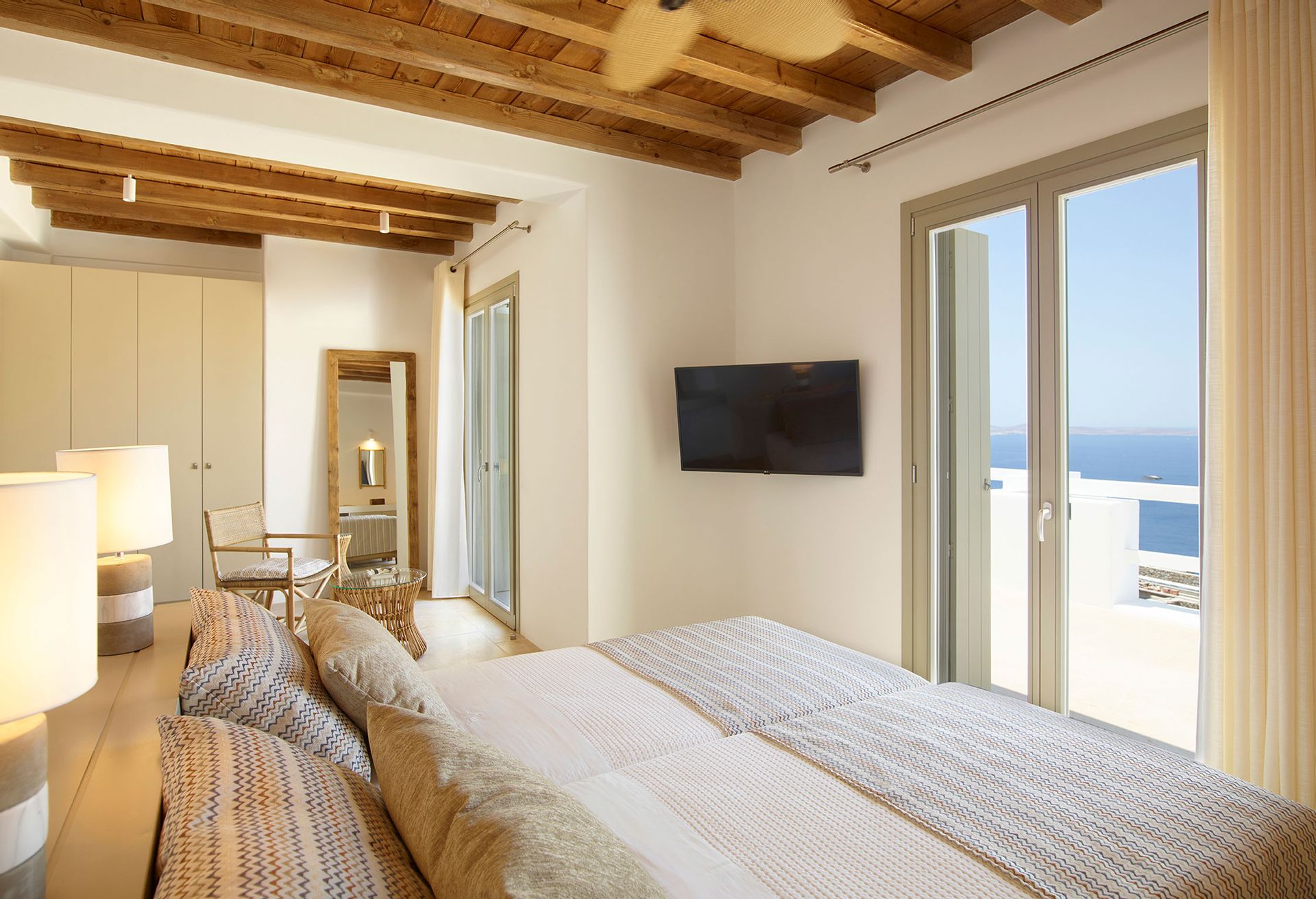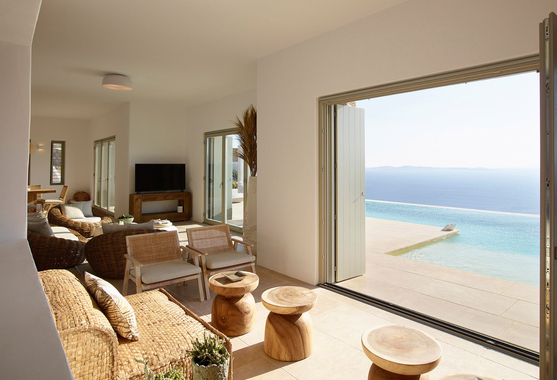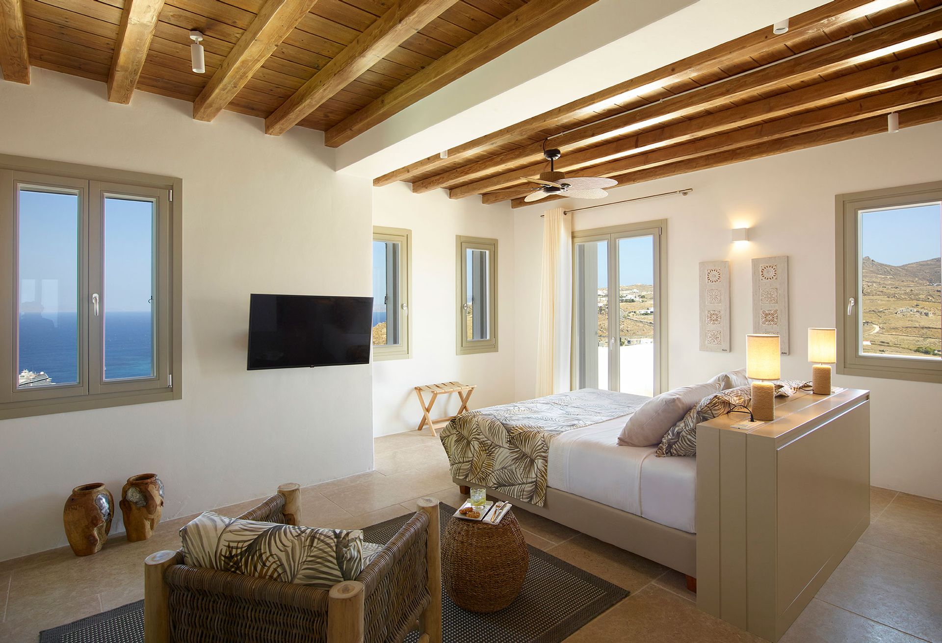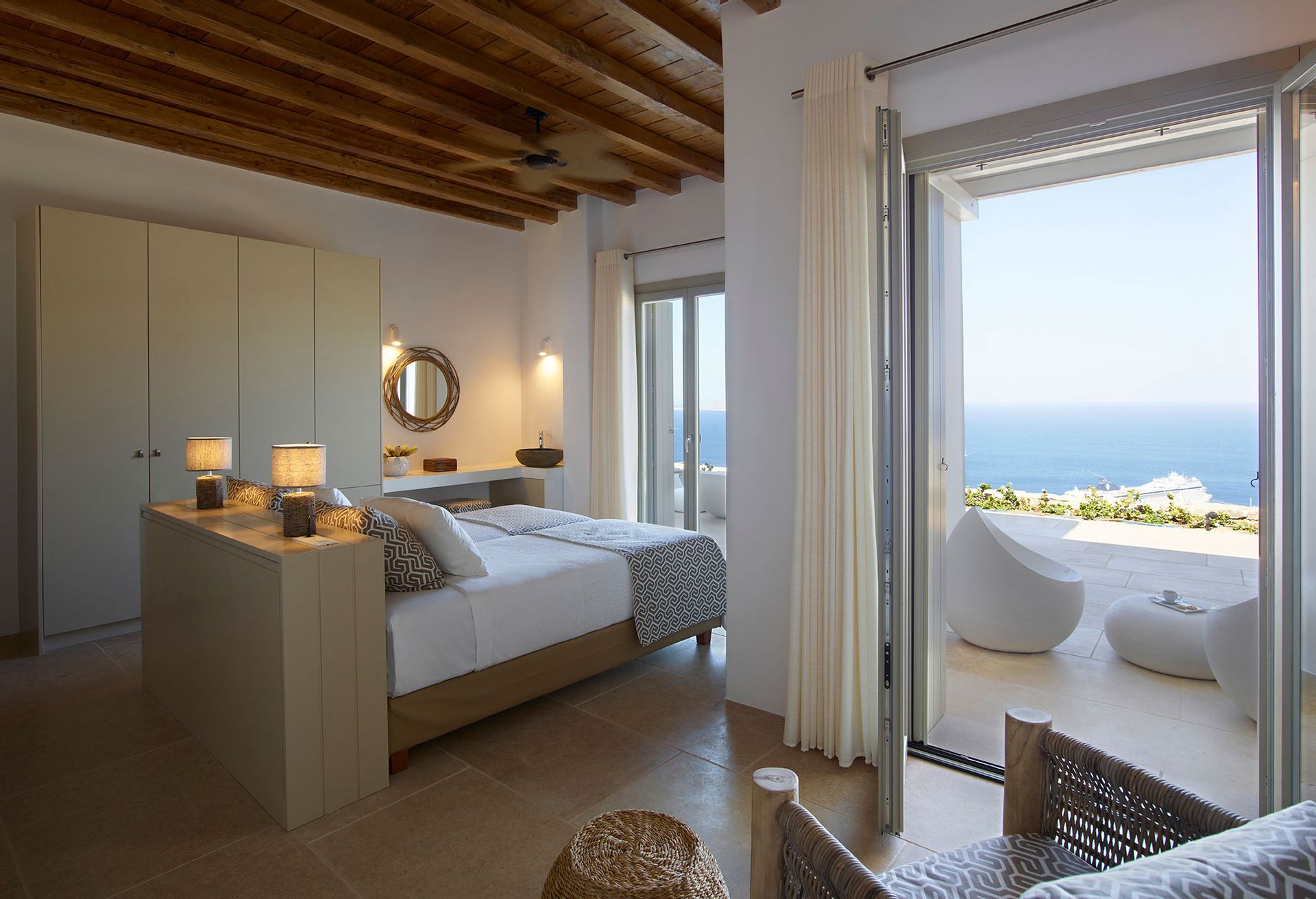 Totally isolated-in order for the guests to enjoy their privacy, Mykonos Villa Prometheus has the most breathtaking view of the Aegean from each and every corner or suite.