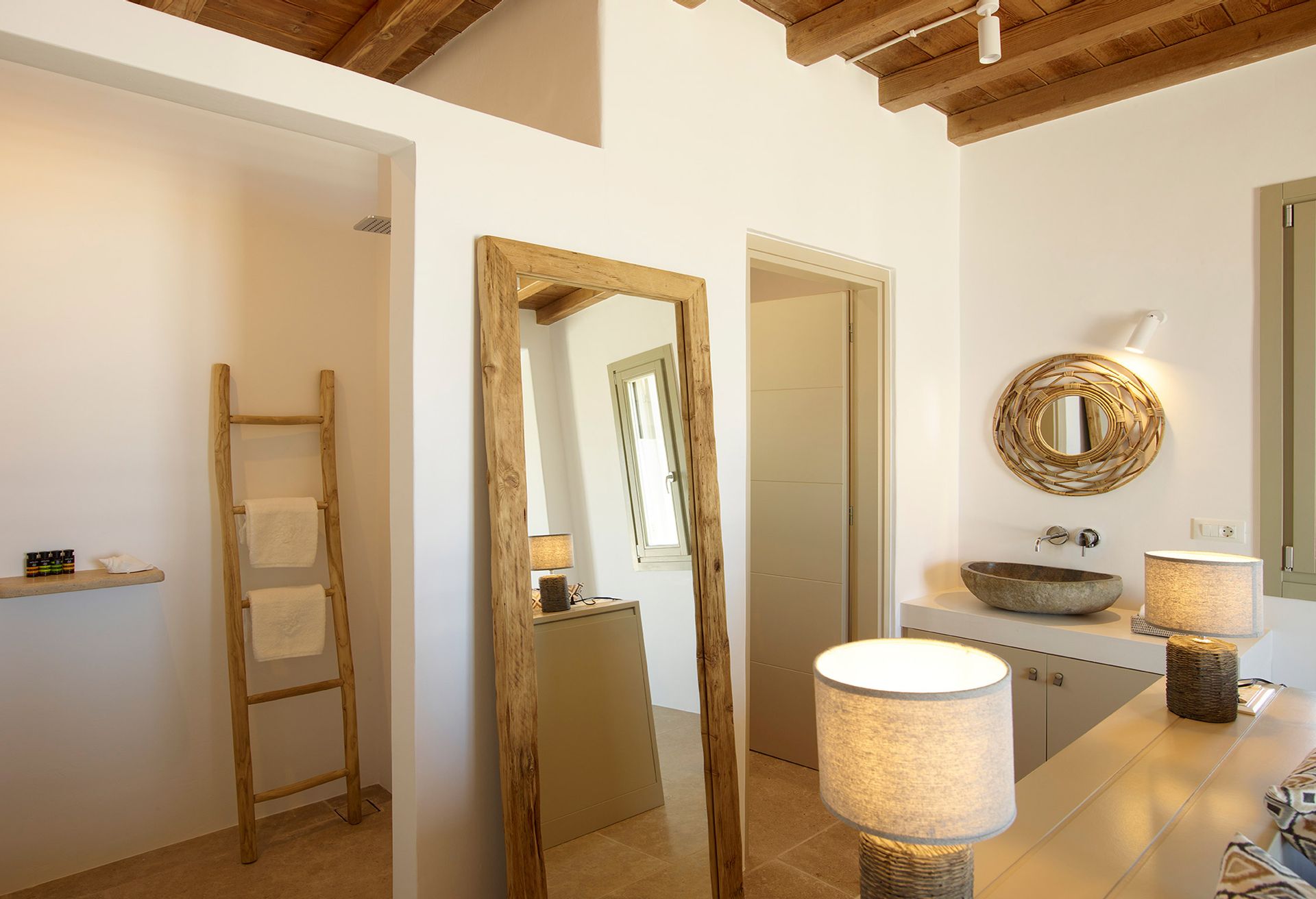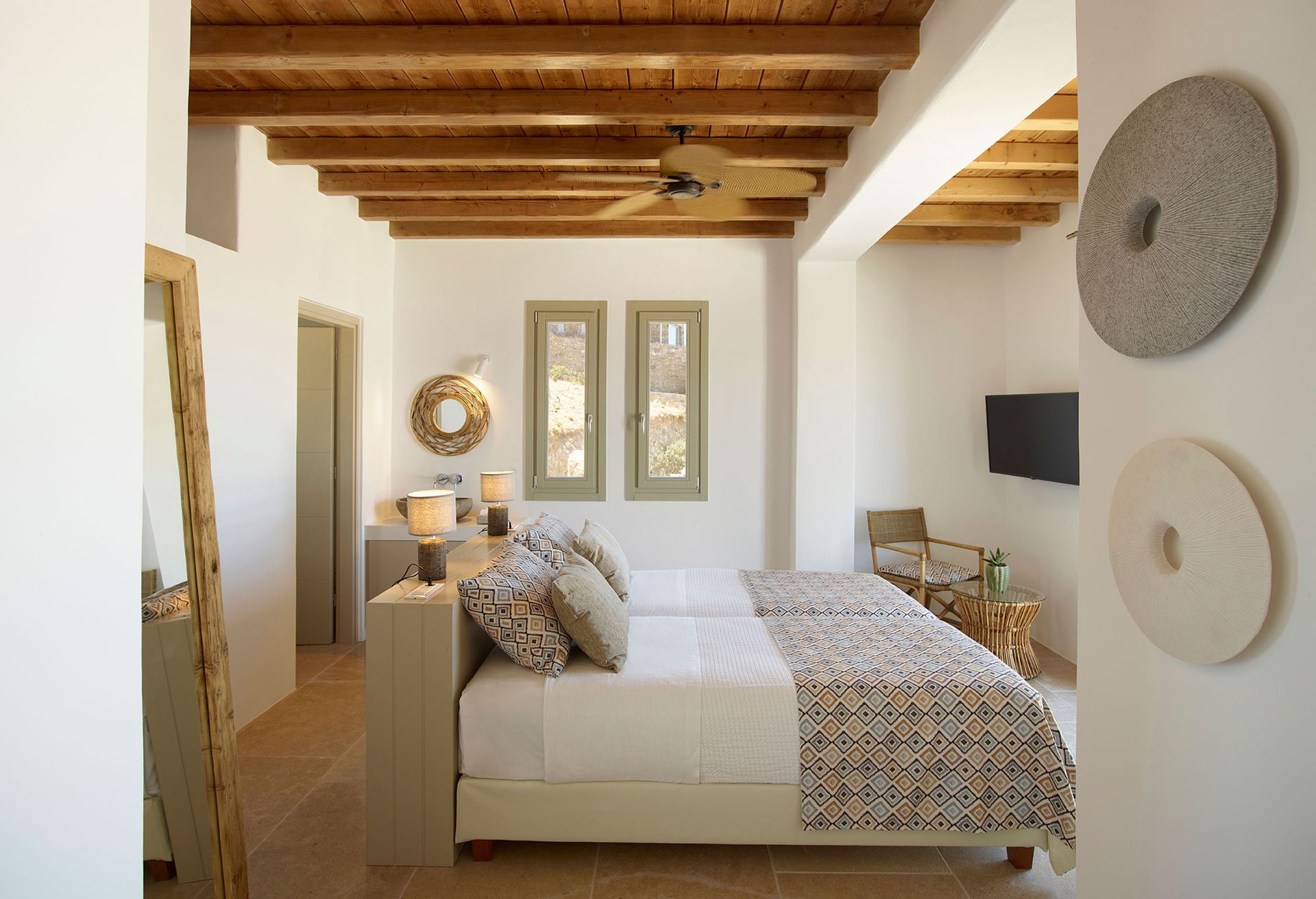 In line with the distinct Cycladic architecture, Mykonos Villa Prometheus nested on the top of Tourlos’s hill while it becomes one with the scenery. Modern decoration with some traditional touches, comfortable and spacious interior areas, spacious outdoor area, and a large private swimming pool, Mykonos Villa Prometheus is your personal heaven.