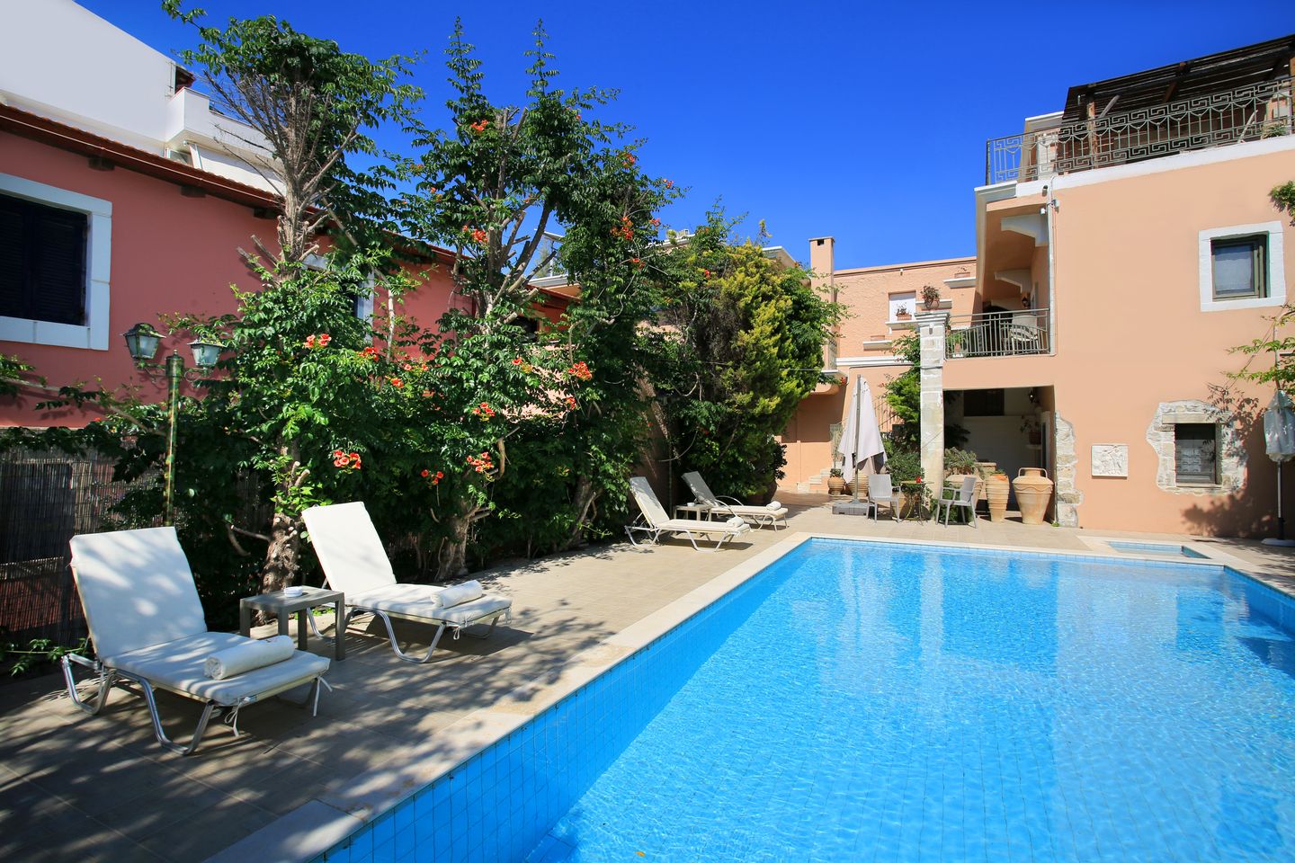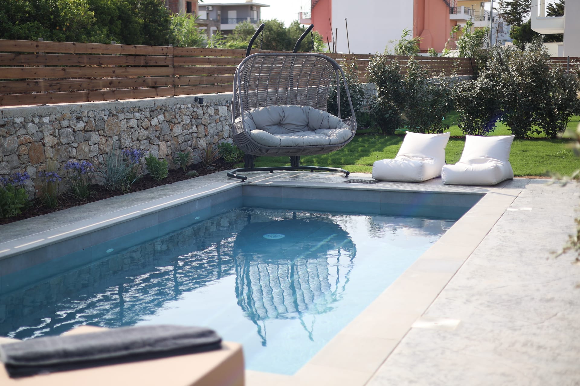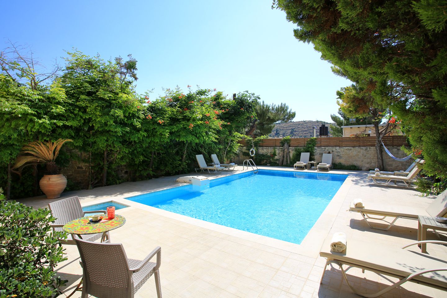 Private Swimming Pool (unheated) with 2 seated jacuzzi corner