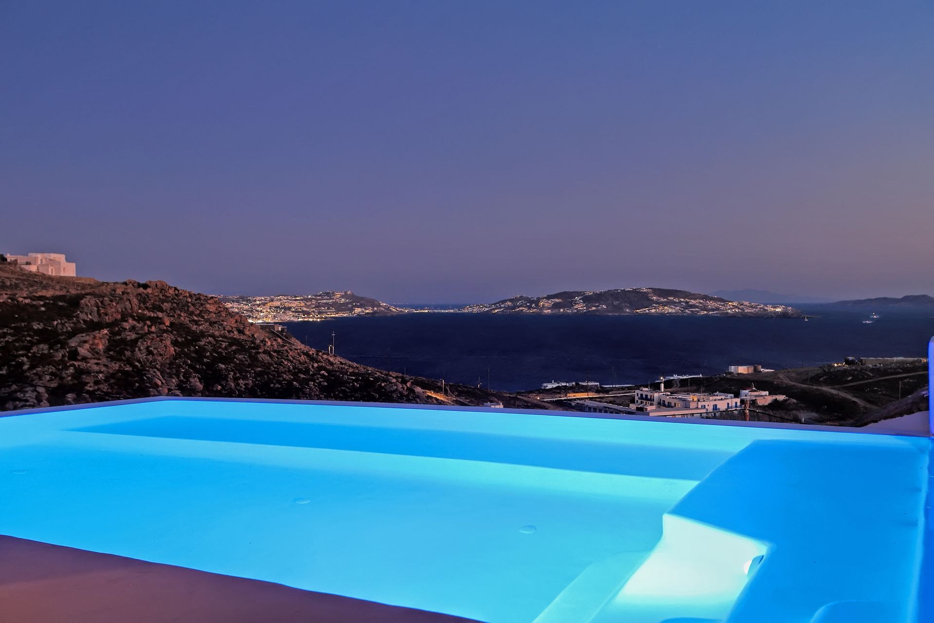 Villa Rhea is only a 10 minute walk from the famous cosmopolitan beach Kalo Livadi where all the restaurants, beach clubs and water sports are located.