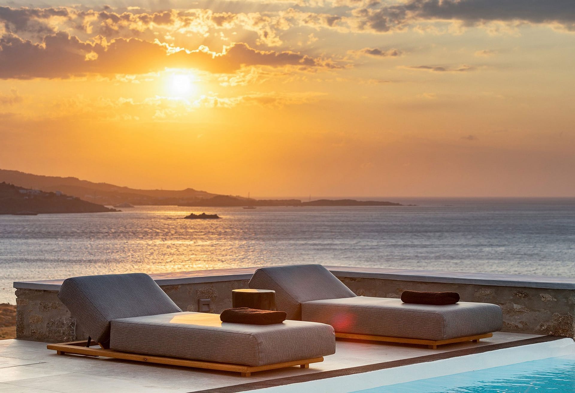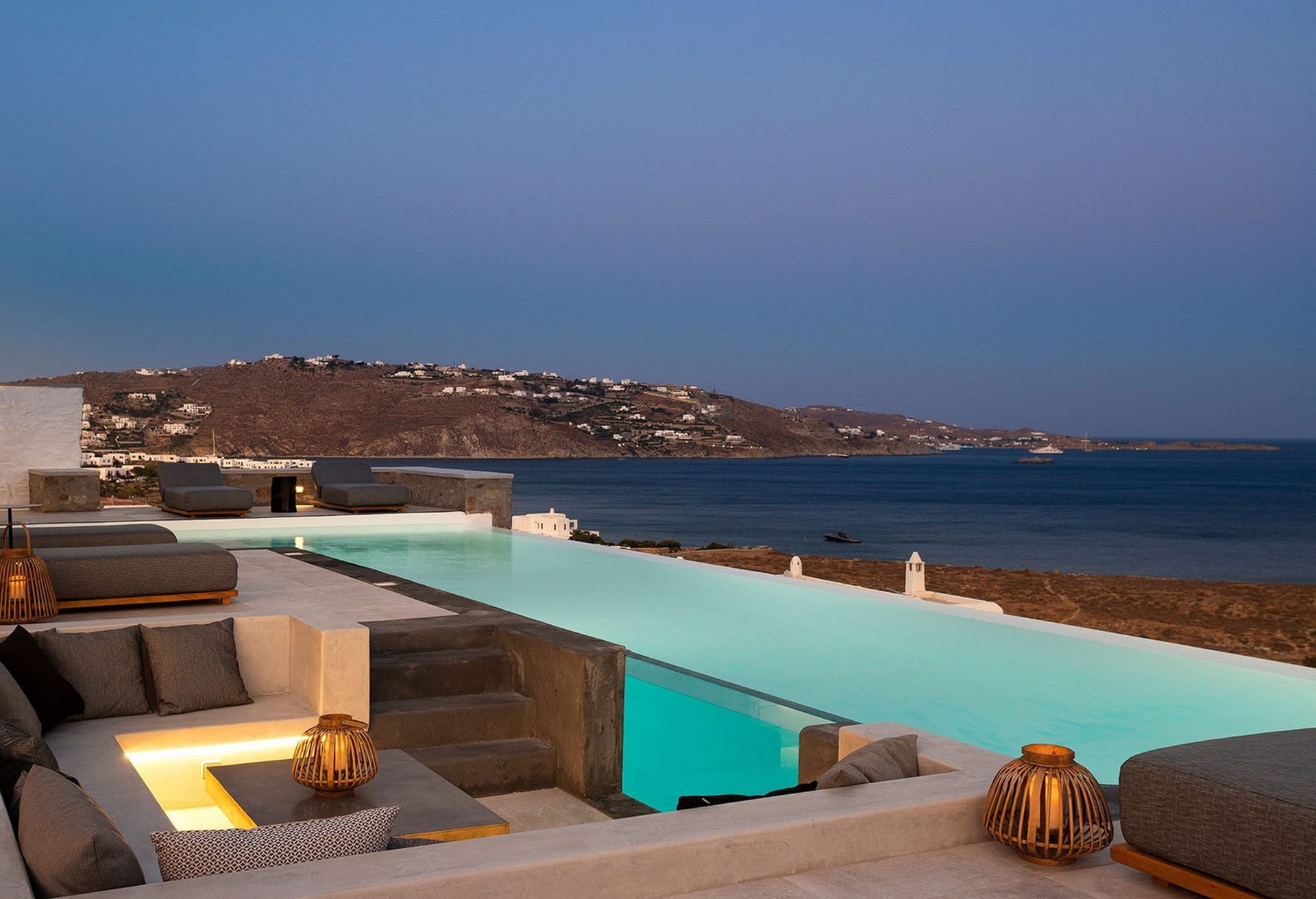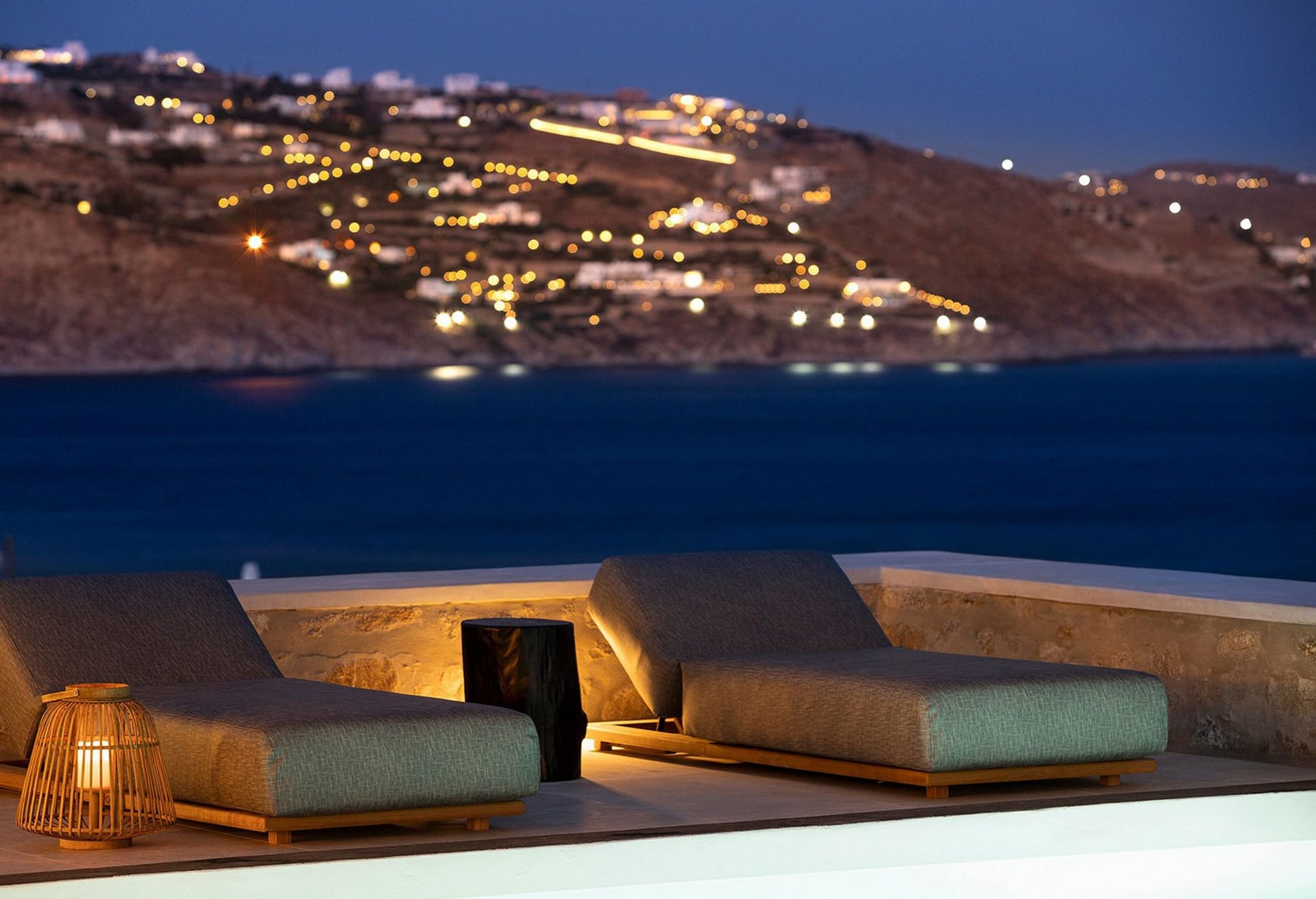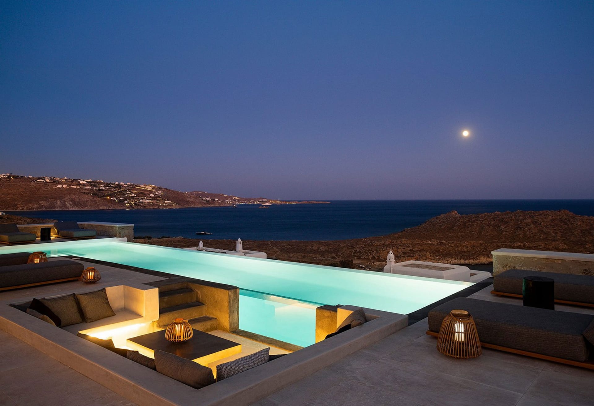 Villa Royal embodies the absolute creation and rebirth of beauty and exquisiteness. A newly renovated and completely refurbished property of alluring luxury has been brought back to life to invite its distinguished guests on a creative journey of refined design and an experience of blissful luxury. Laying gracefully on a matchless location that provides a panoramic view to the sapphire waters of the Aegean Sea and the colorful sunrise, in the popular area of Aleomandra, only a few minutes’ drive from Ornos village and its fashionable beach and just 4 km away from the pulsating Mykonos Town with its vibrant nightlife. The convenient location of villa Rotyal offers its guests a plethora of unique benefits of tranquil privacy, relaxing ambience, ideal wind protection, soothing view to a magnificent natural surrounding and a surplus of limitless services creating an accommodation that demands to be experienced.