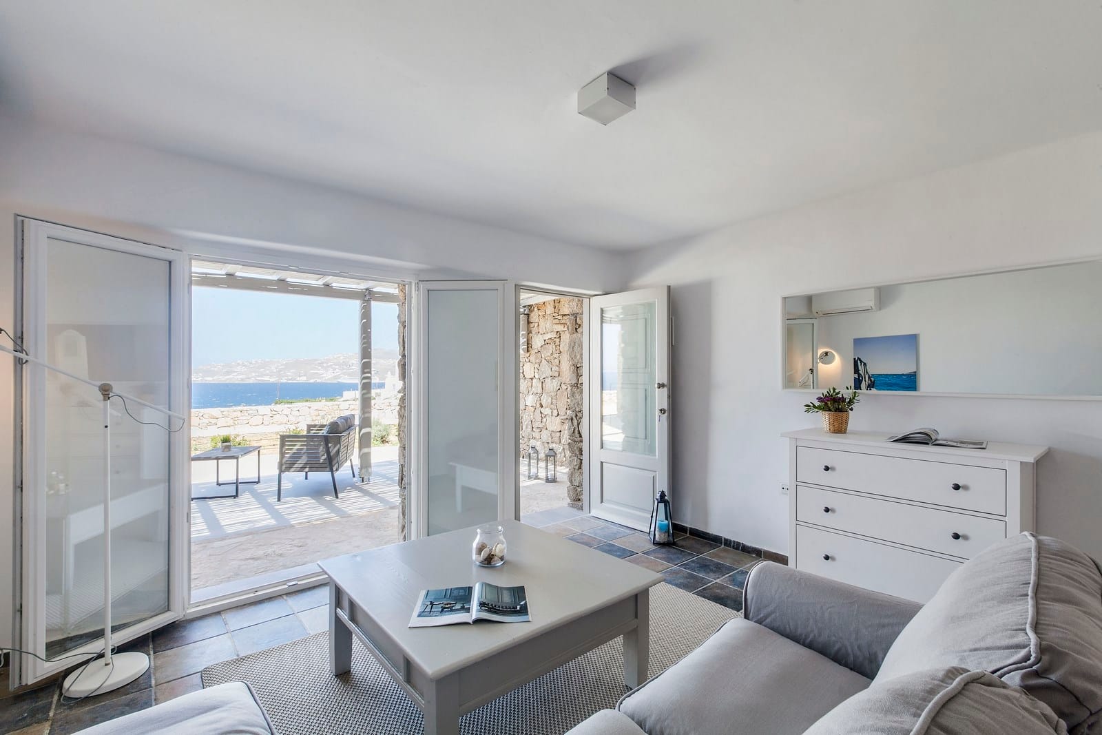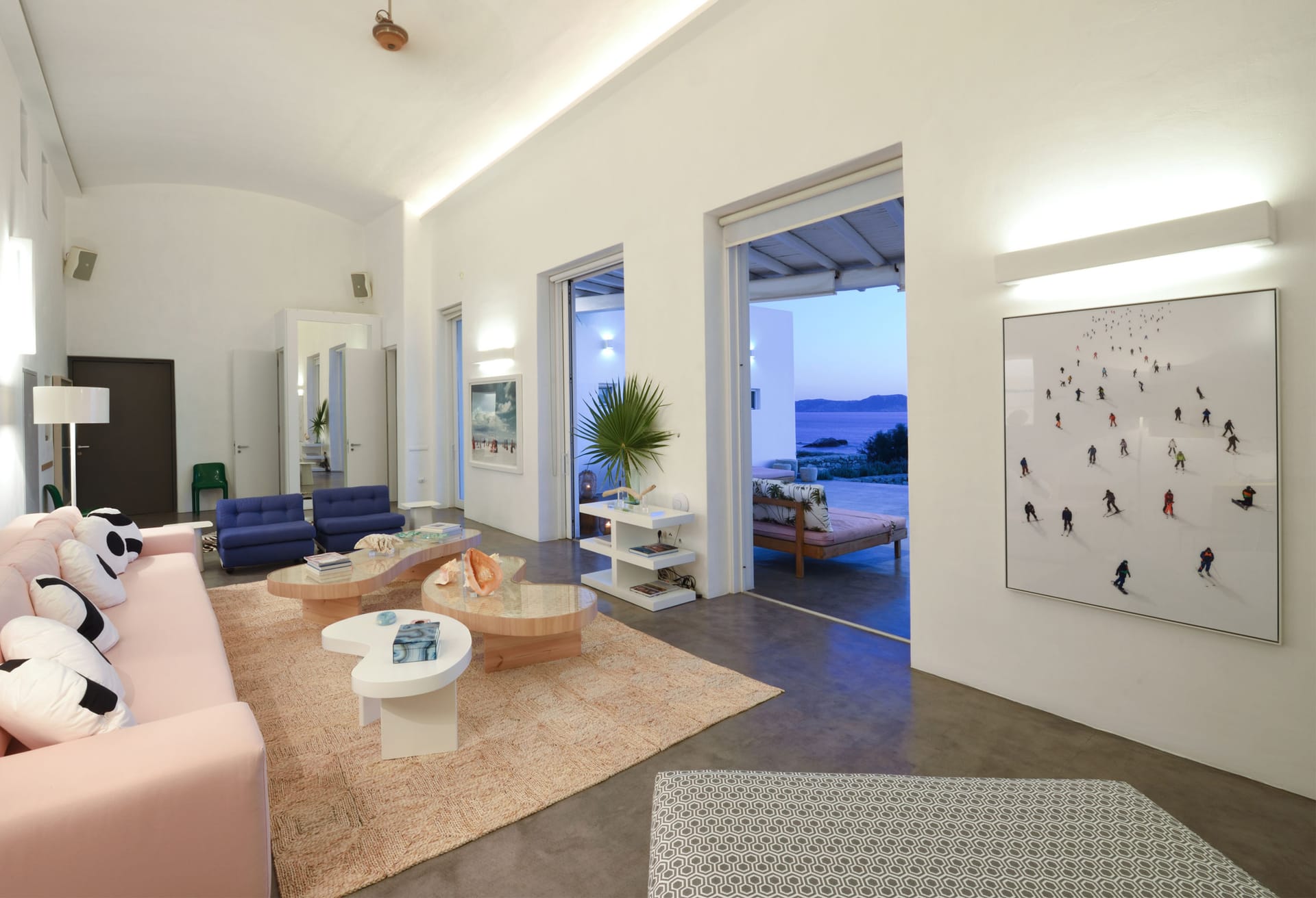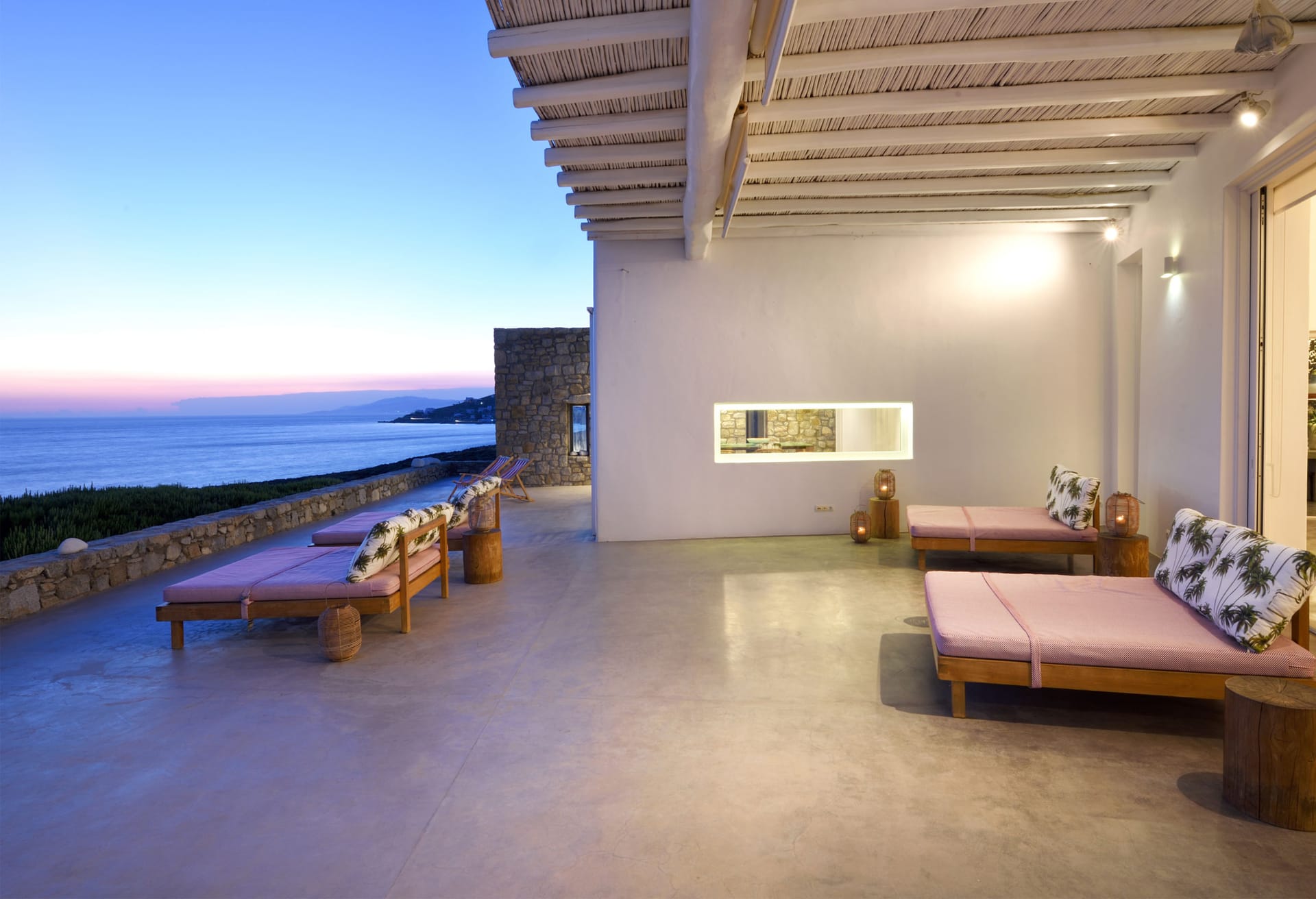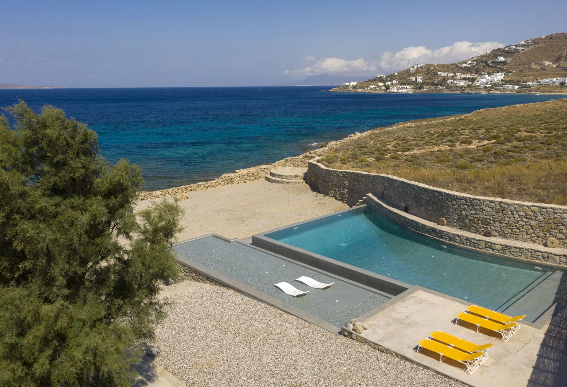 Mykonos Villa Seaside on Mykonos enjoys such a special seafront location and vast outdoor areas as this refined, voluminous villa situated on the west coast of the Aleomandra peninsula.