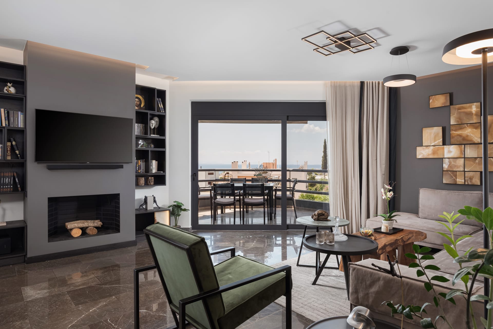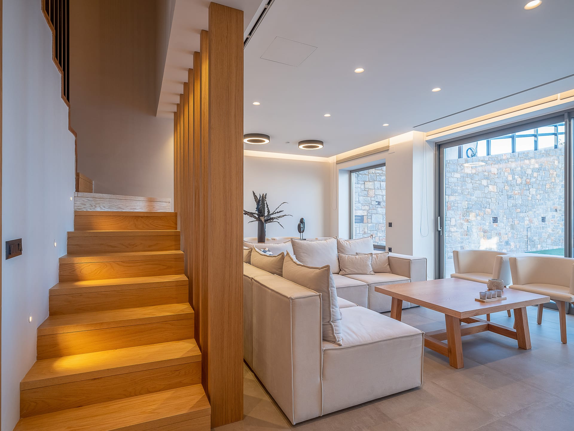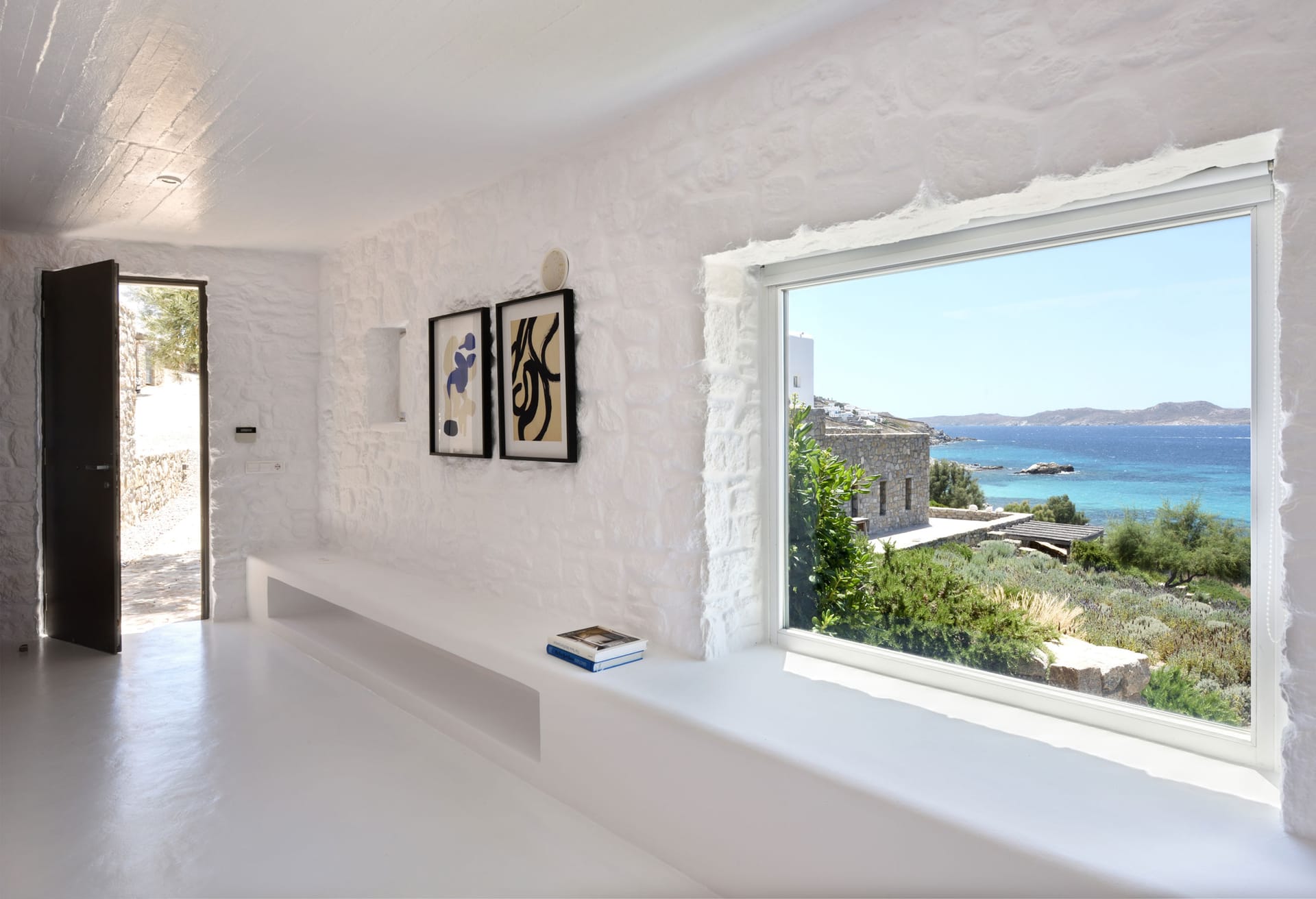 Mykonos Villa Seaside architect has taken special care to make the best out of the plot's premium location, which enjoys unobstructed views of Delos, the sunset, and the sea. Modern sensibility, natural light, and clean-cut aesthetics characterize every space, featuring contemporary amenities such as built-in heating and cooling systems, state-of-the-art lighting, and high-end materials throughout.