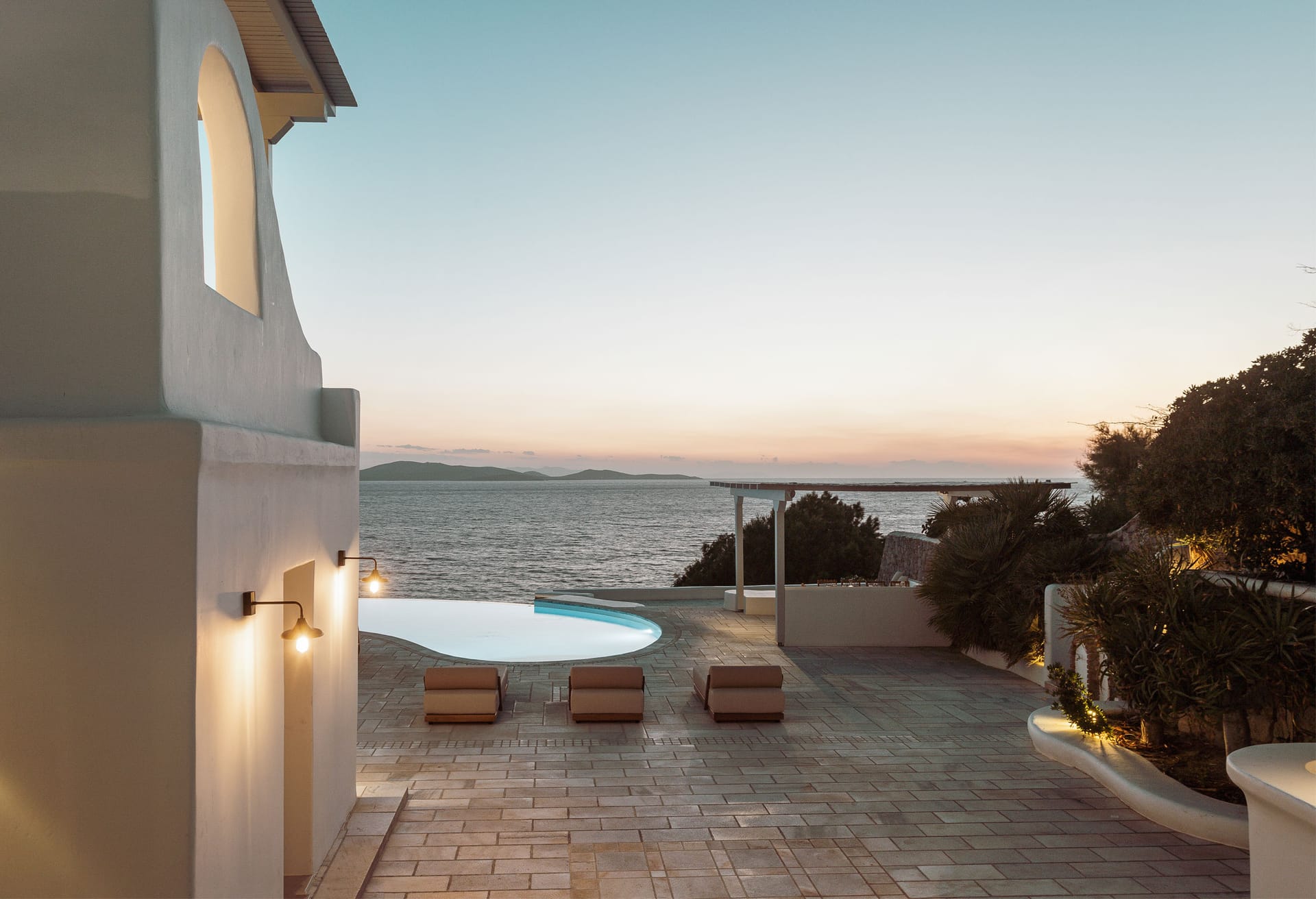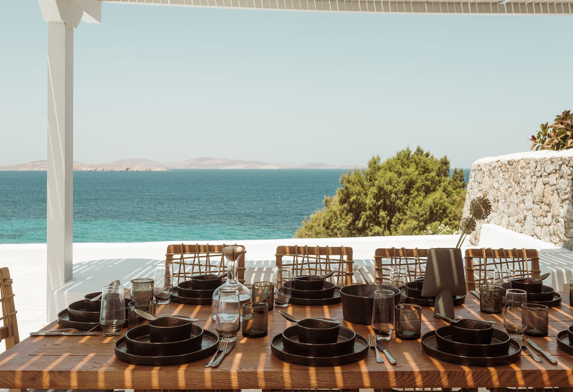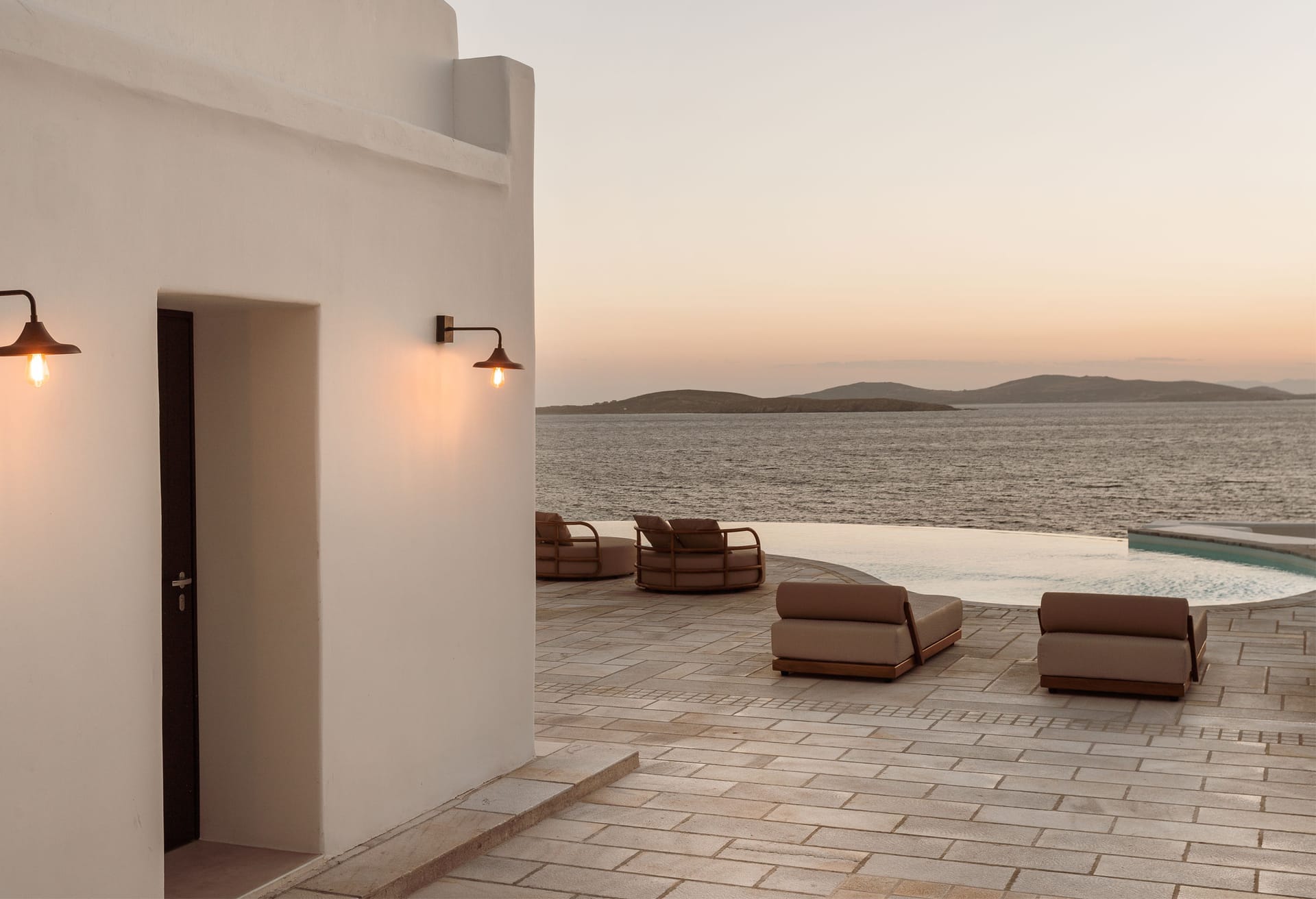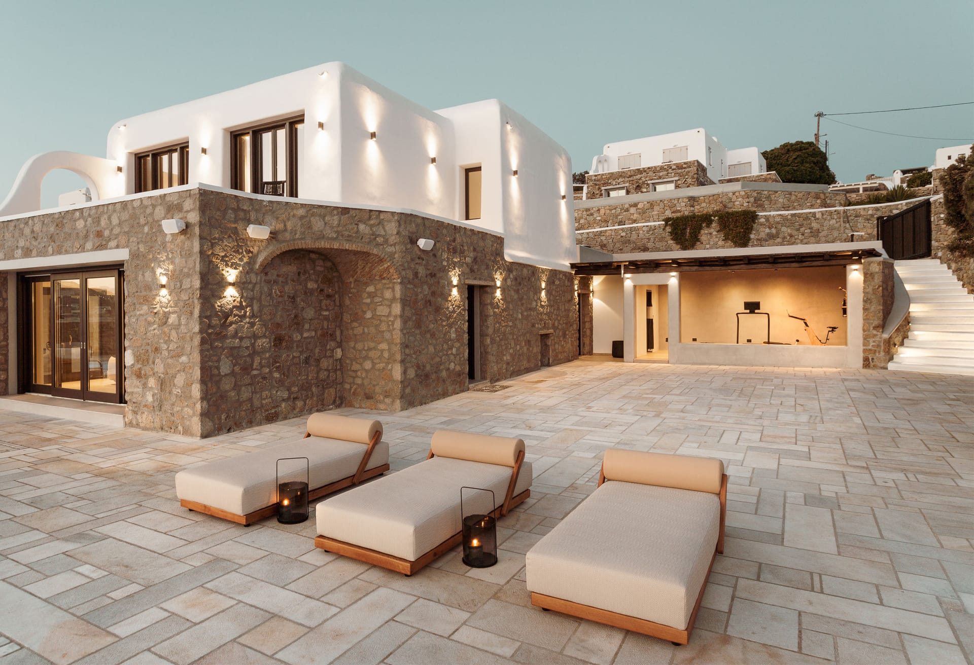 The construction and architecture of the villa is a flawless combination of modern and traditional Mykonian style.