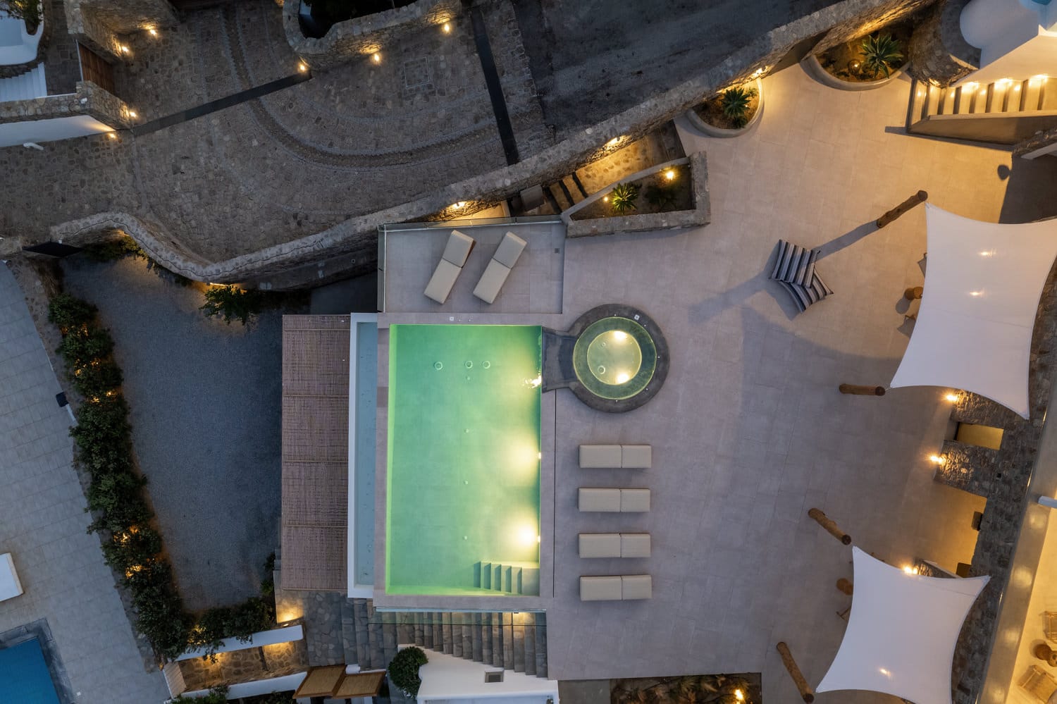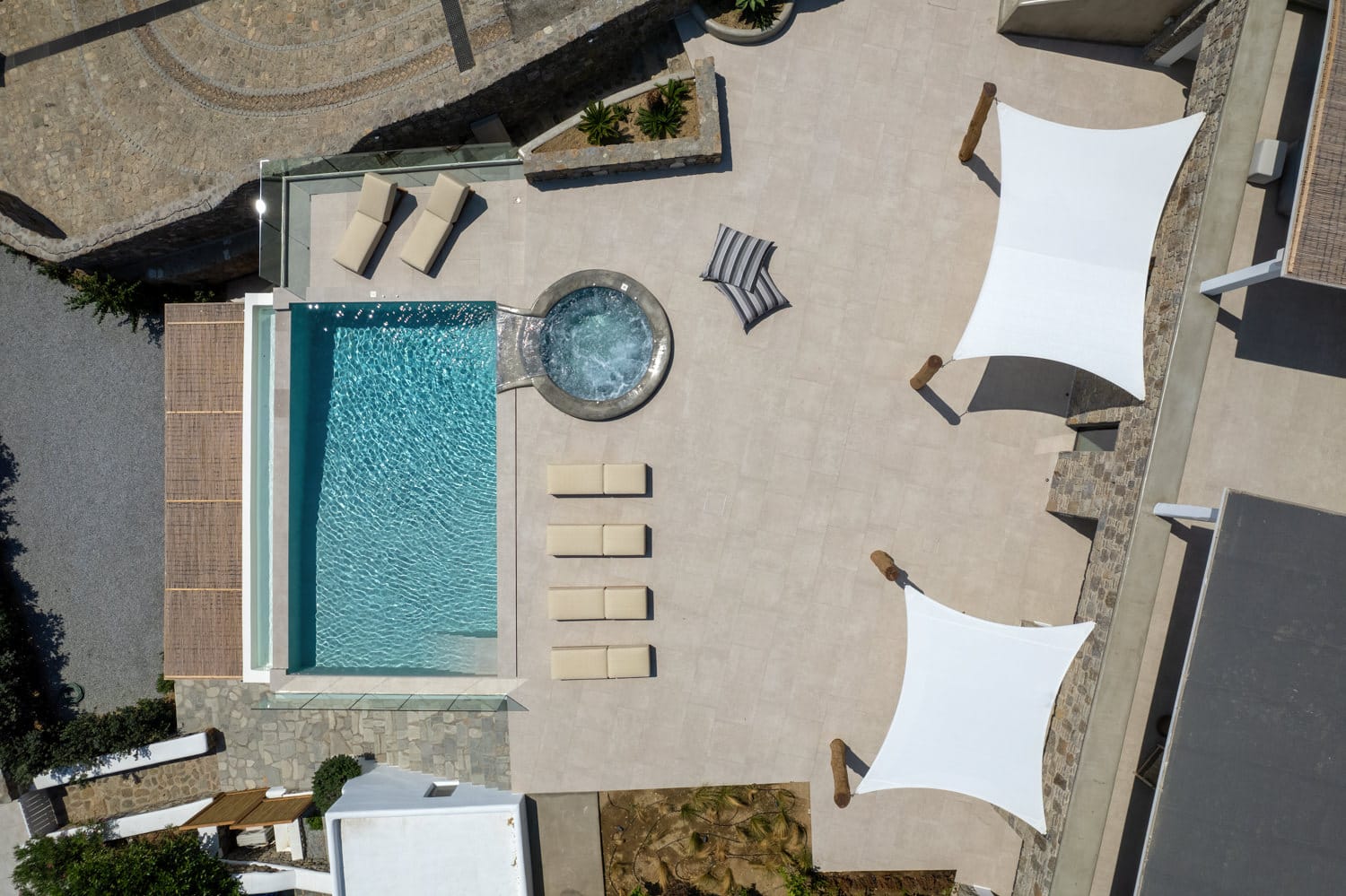 The traditional Cycladic architecture inspires the villa design with stone and wood making a strong presence, while a cosmopolitan aura infuses the decorative touches in a unique mix. The bright rooms with the high wooden ceilings welcome inside the Mykonian light and the sea views capturing the attention while making you relax in a calming surrounding.