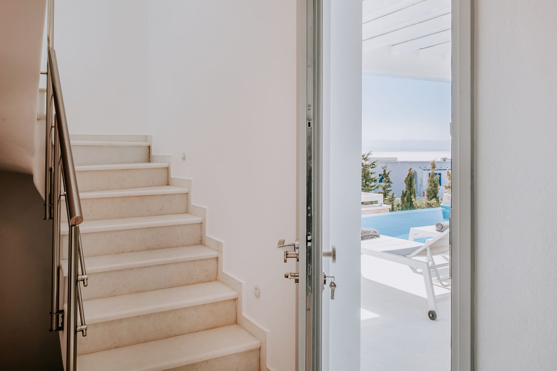 The distance between the villa and Mykonos town is 4 kilometers, or 10 minutes by car. The same applies for the distance between the villa and the airport.