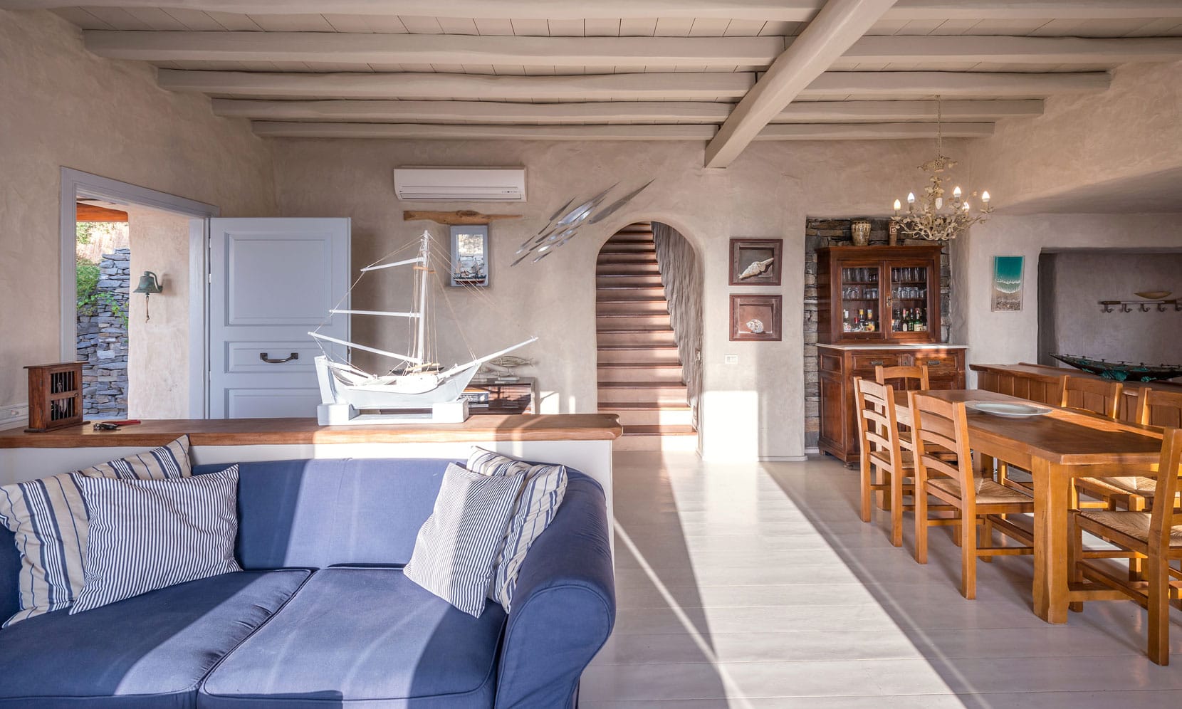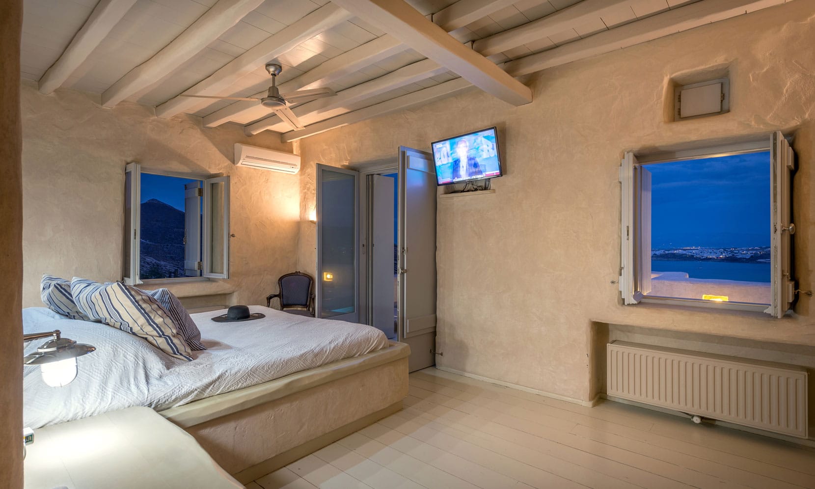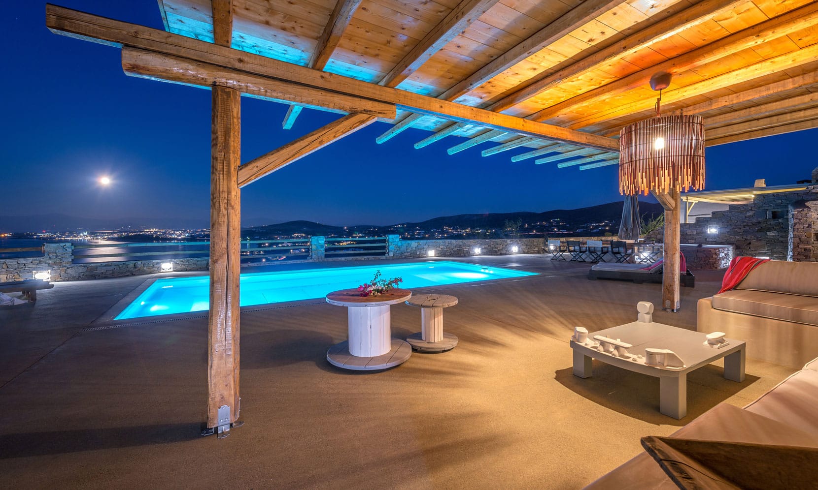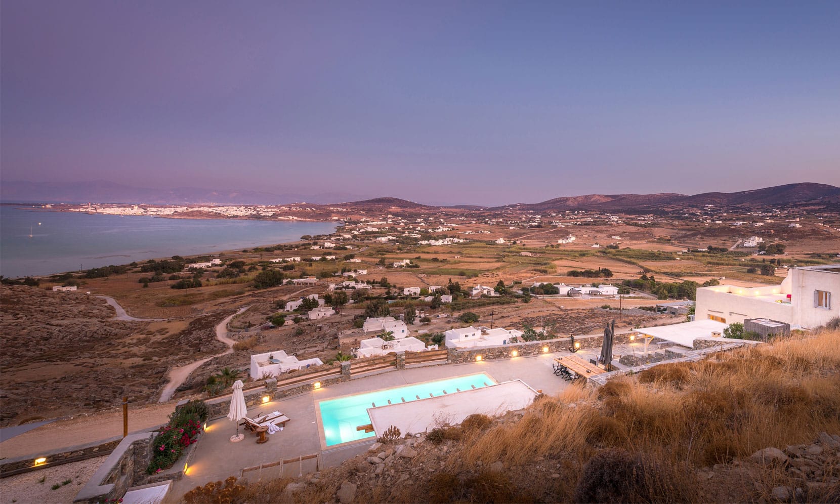 Villa Agave is a 6 bedroom luxurious villa situated just a short walk from Kolybithres sandy beach and the ancient Mycenaean Acropolis . It offers amazing sea views of the bay in the front, nice views of Naoussa town which is 25 min walk from the property and Naxos island in the distance . You can also see the ancient ruins from the villa.