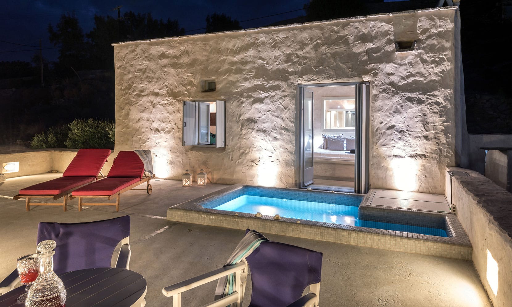 Veranda with an amazing sea and pool view and a private Jacuzzi.