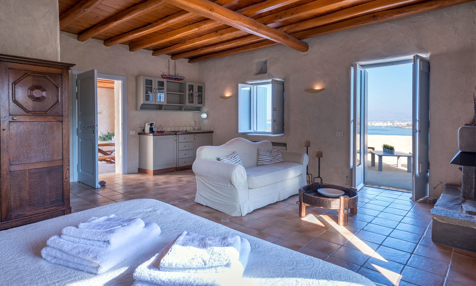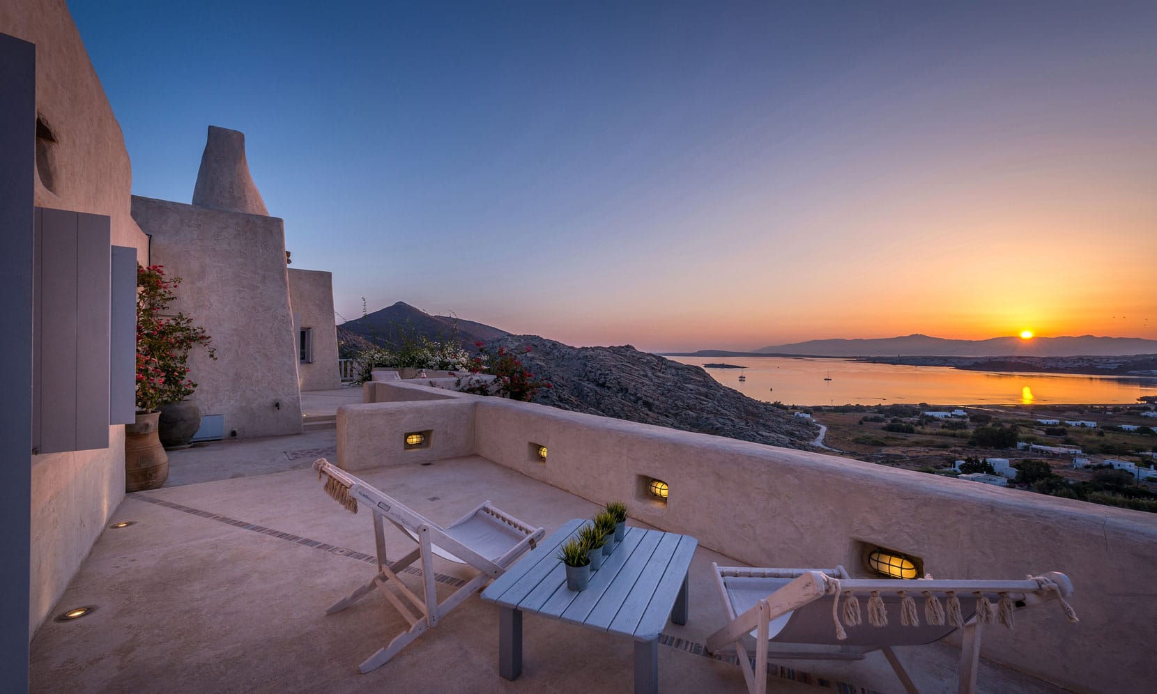 The view is also impressing during the night with the view of hundreds of lights from the village of Naoussa and Hora of Naxos, passing boats and the moon surrounded by the twinkling lights of stars.