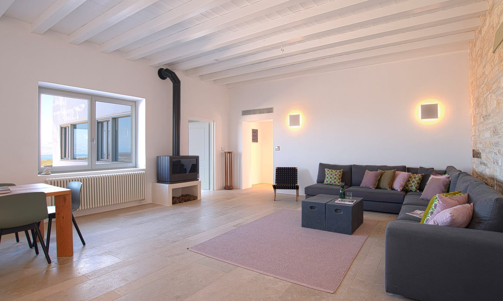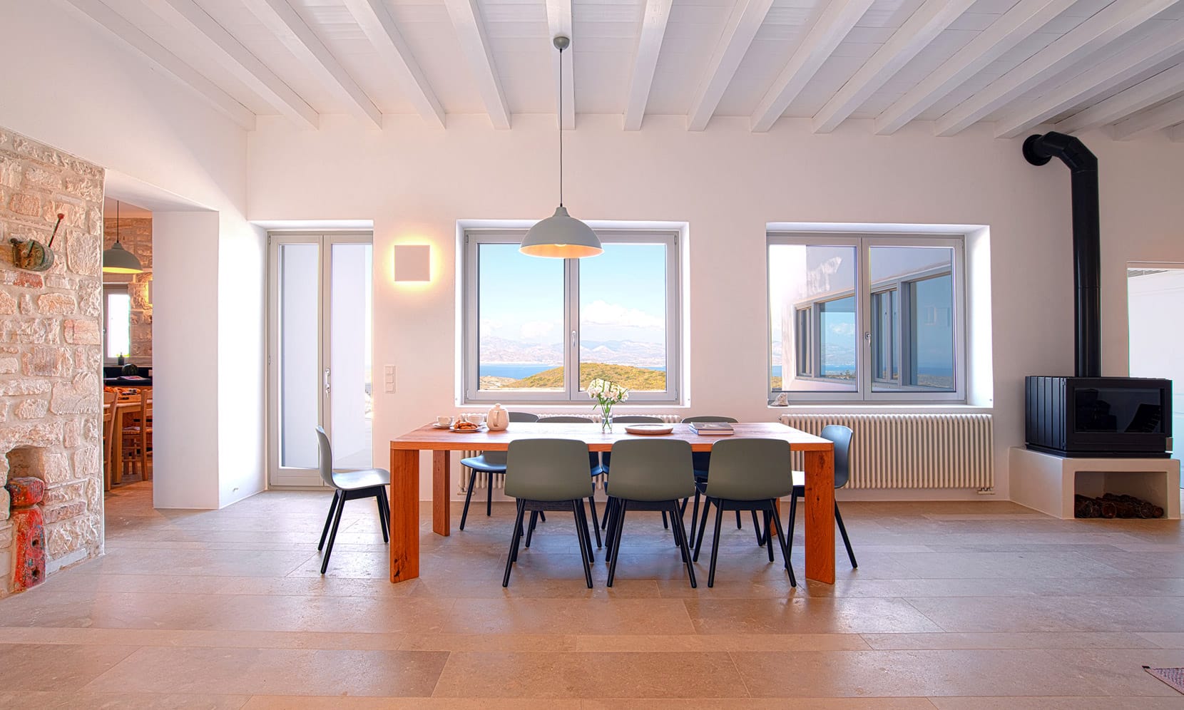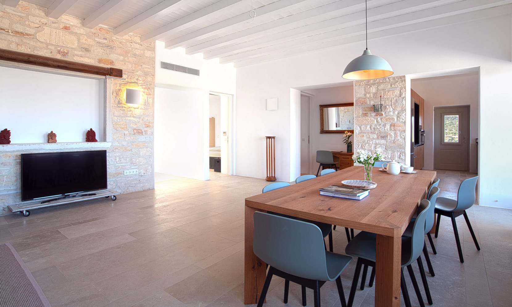 The villa, pool and all exterior dining areas were all built on one level with no stairs, easy to access and enjoy by people with disabilities as well. The interior design is a subtle mixture of high-end modern furniture and rare findings from athenian antique shops and flea markets.