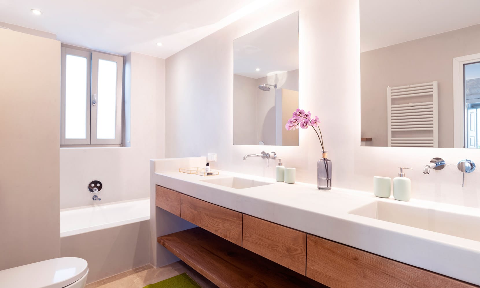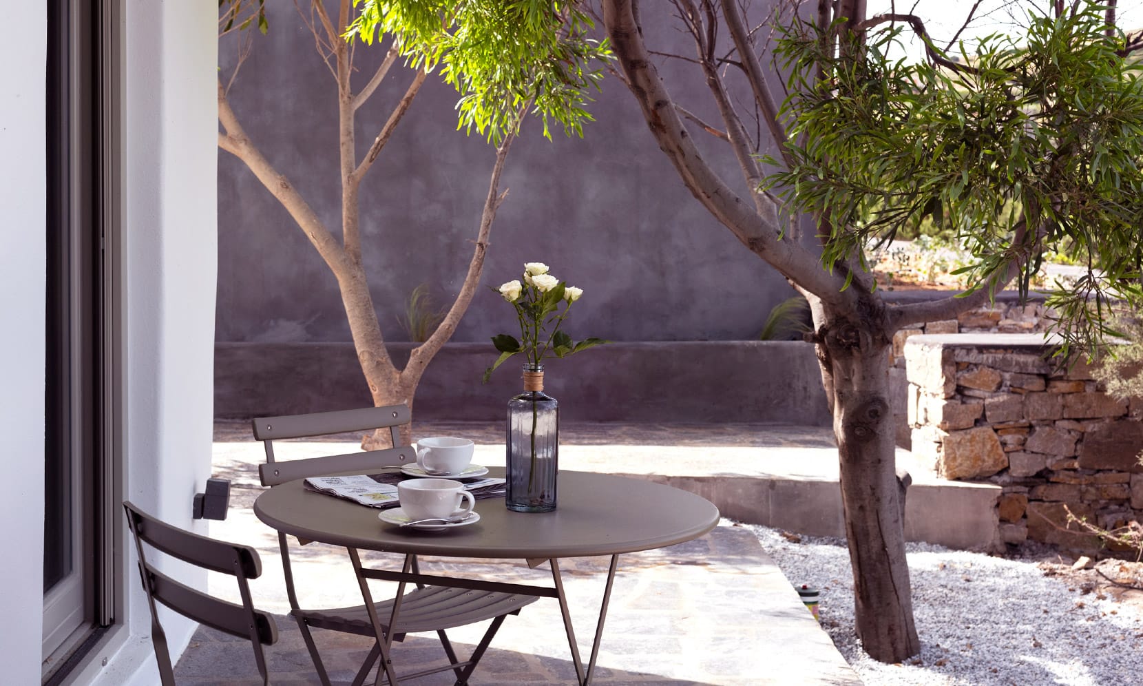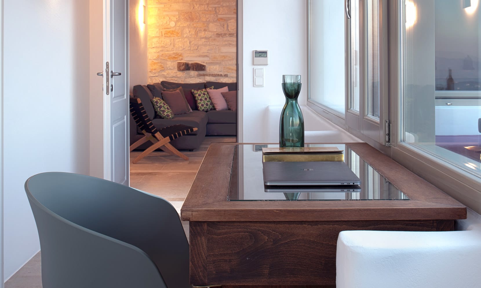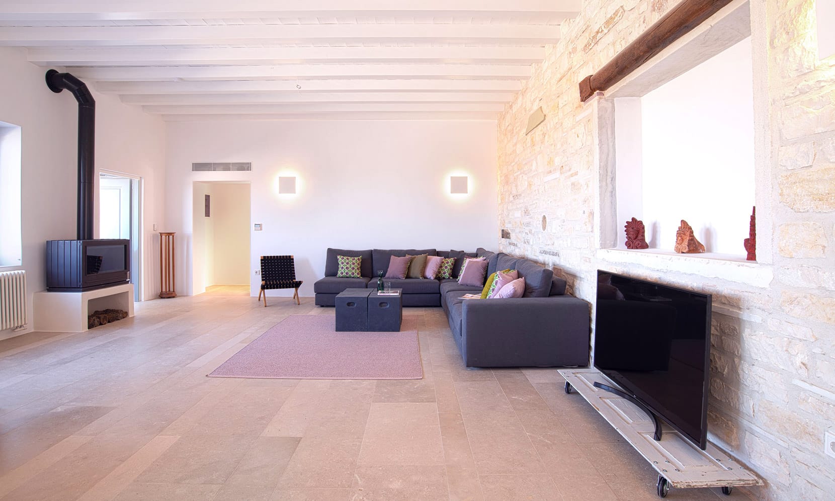 The villa, pool and all exterior dining areas were all built on one level with no stairs, easy to access and enjoy by people with disabilities as well. The interior design is a subtle mixture of high-end modern furniture and rare findings from athenian antique shops and flea markets.