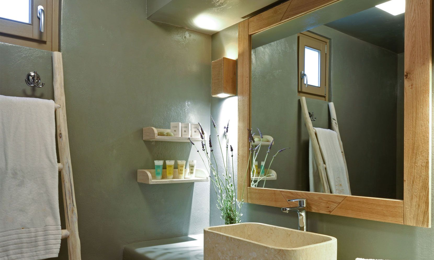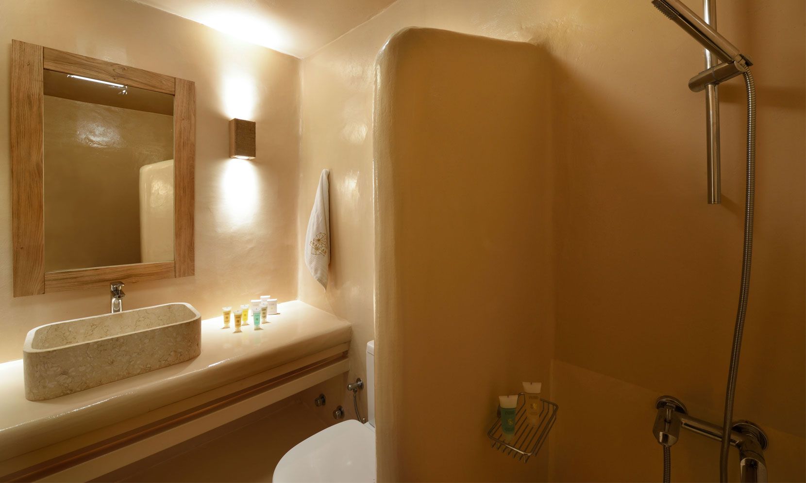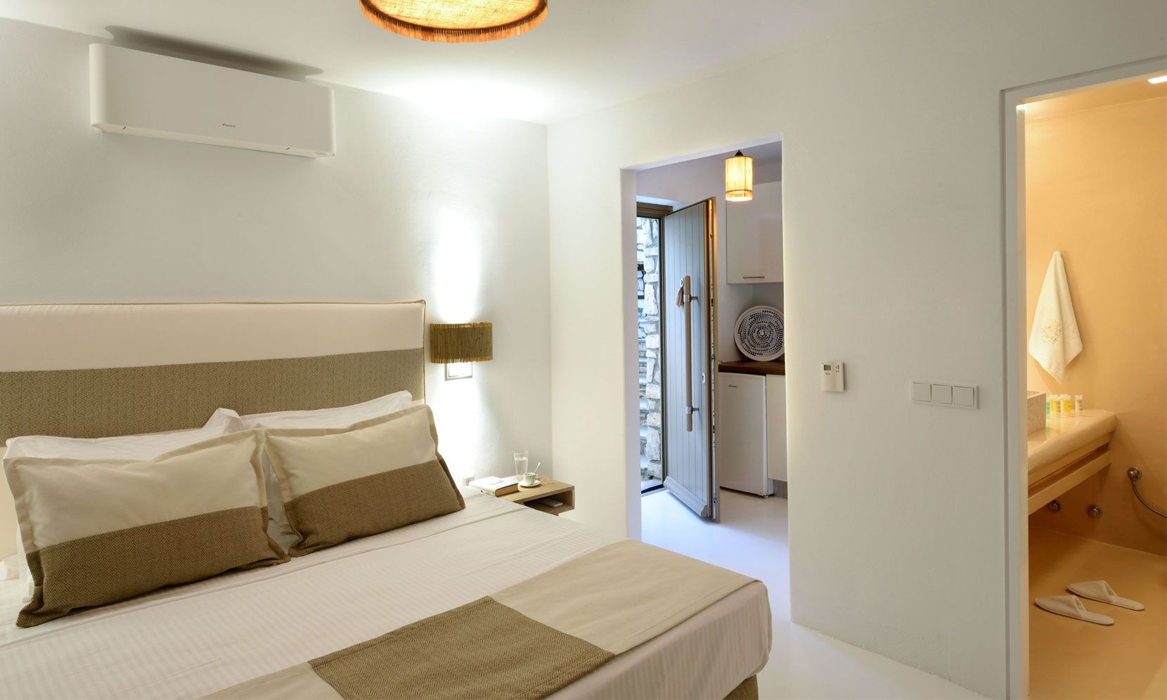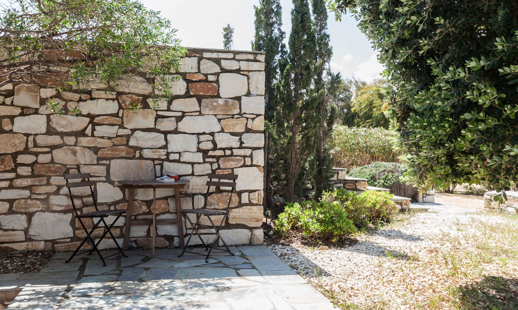 The profuse vegetation encircling Paros Villa Daphne creates an atmosphere of pure tranquility and bliss. Guests can unwind at the sun kissed patio as they lay on the comfortable sun beds or the stone build day bed overlooking the country side and the sprawling verdant fields. The beautiful dining area and lounger on the large veranda invite guests to relax under the shade of the pergola and relish local specialties as they gaze at the azure sea.