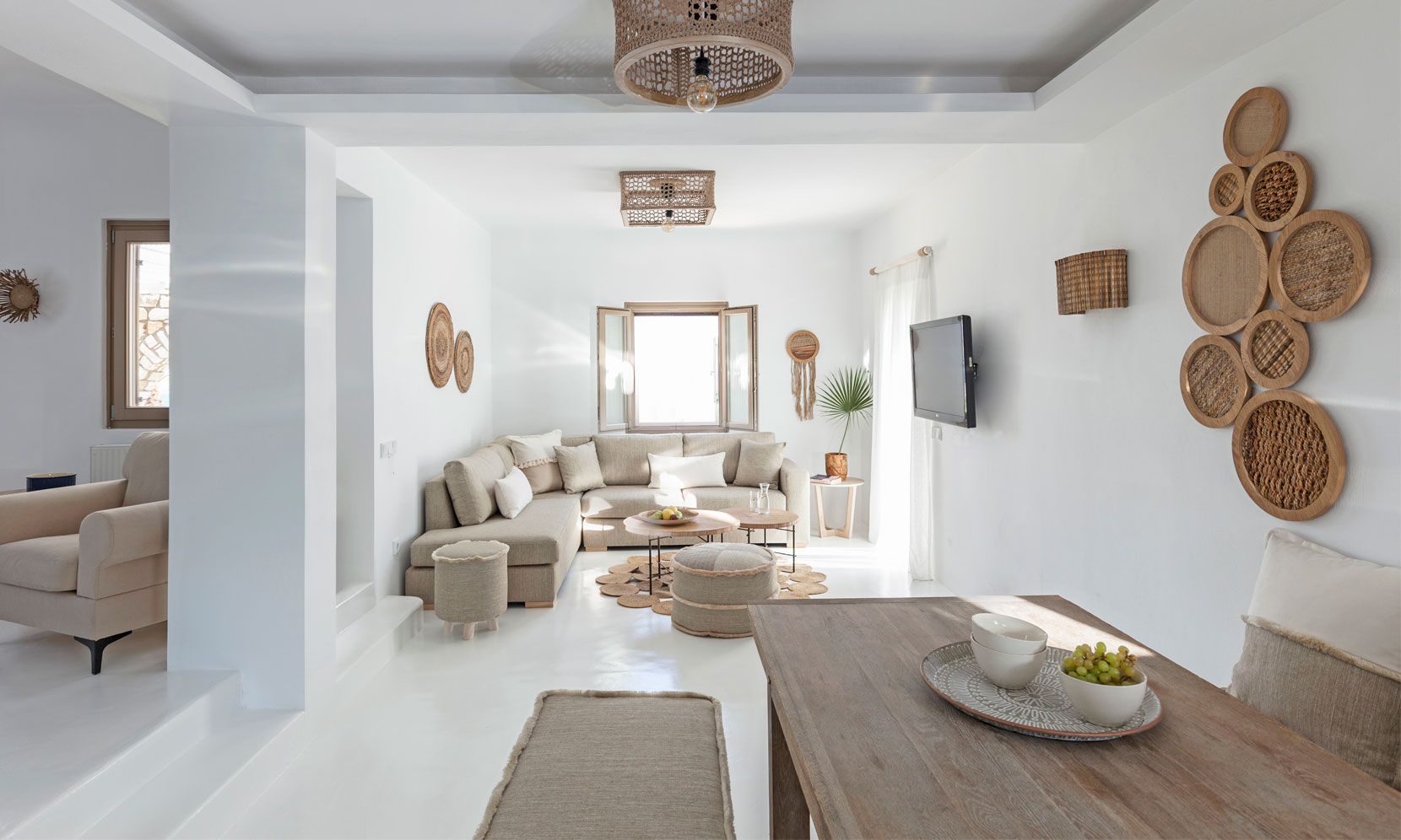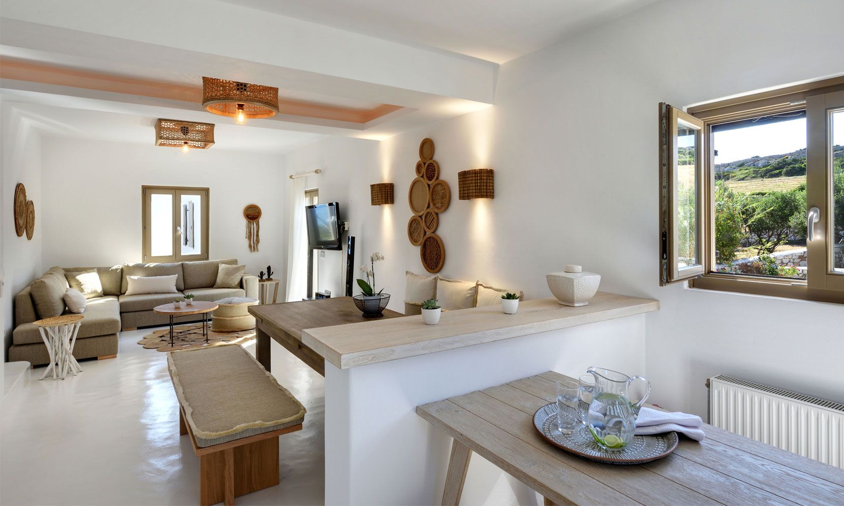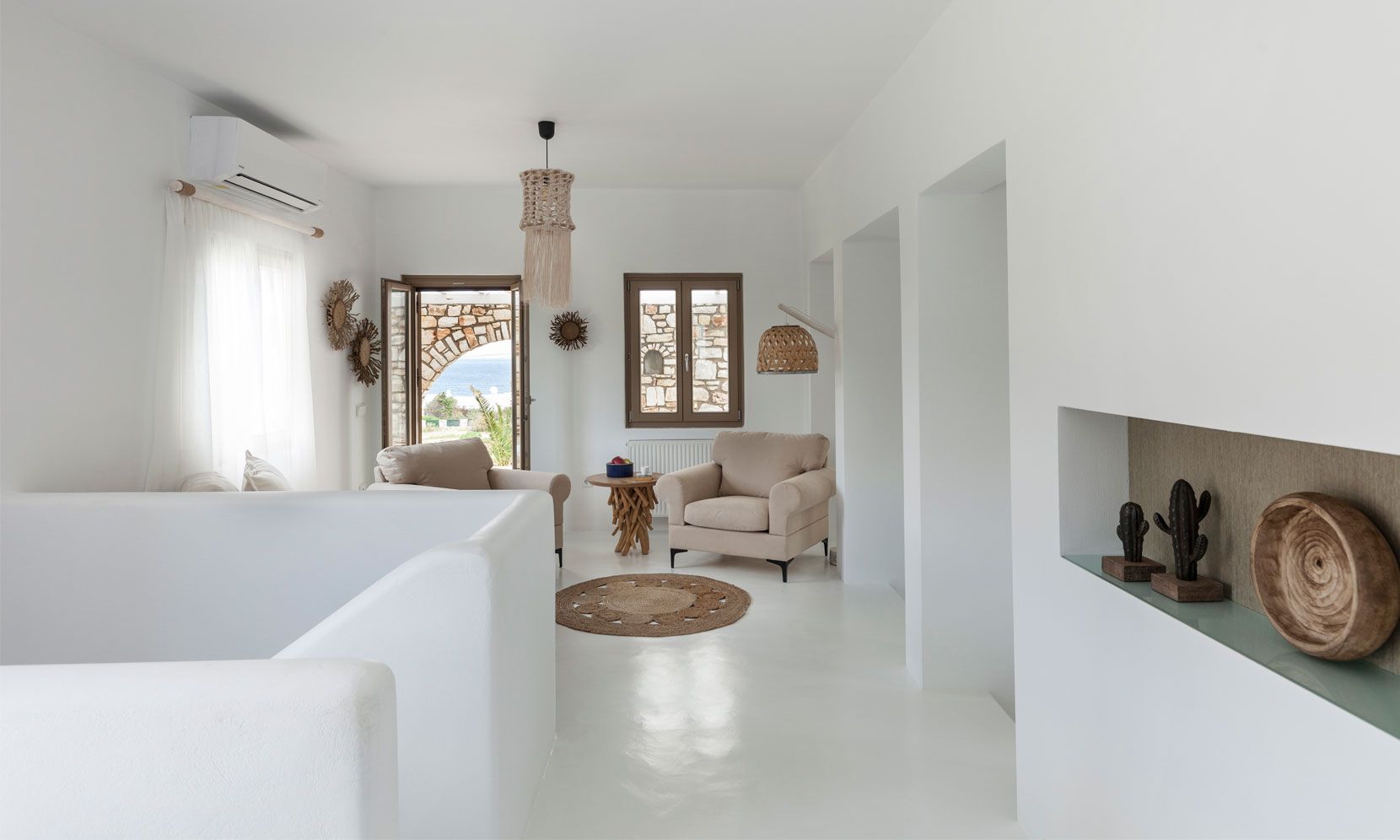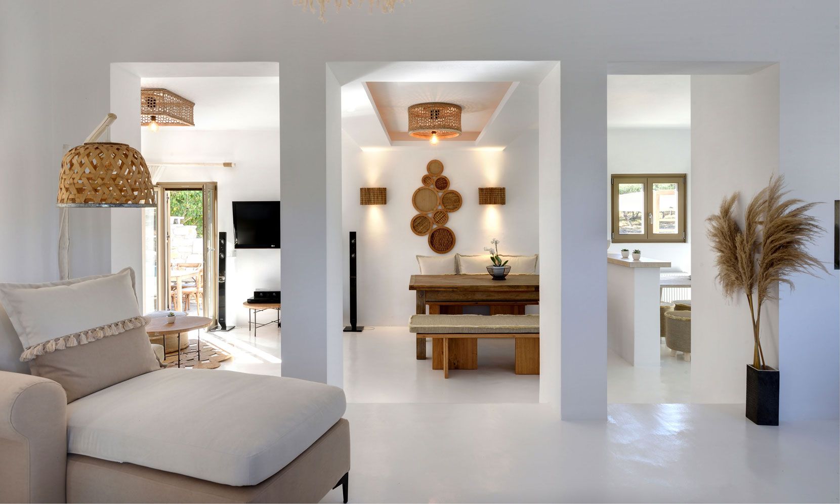 Paros Villa Daphne invites guests to surrender to the pleasures of the luxurious island’s living experience and enjoy tranquil views to the emerald waters of the sea.