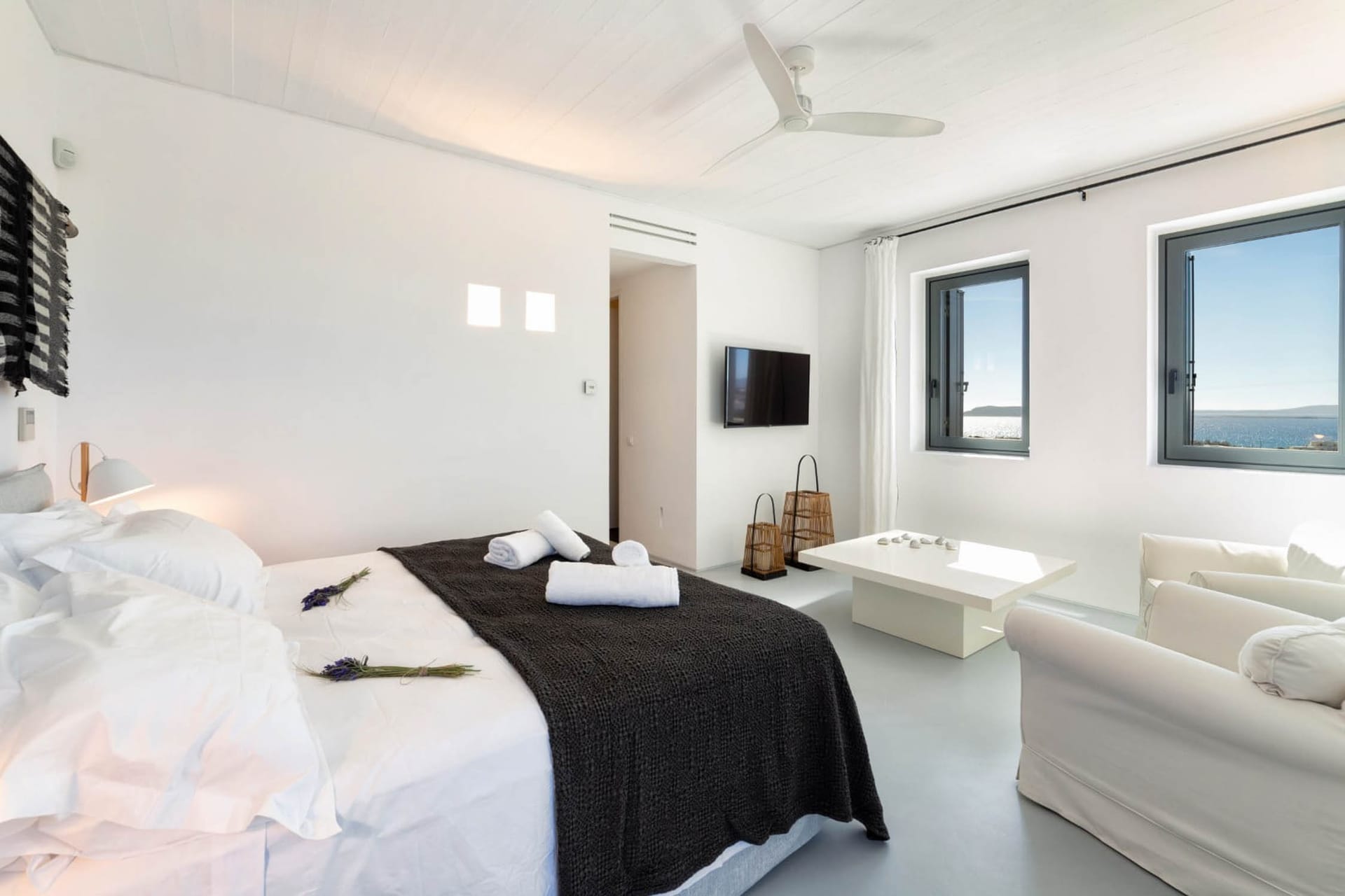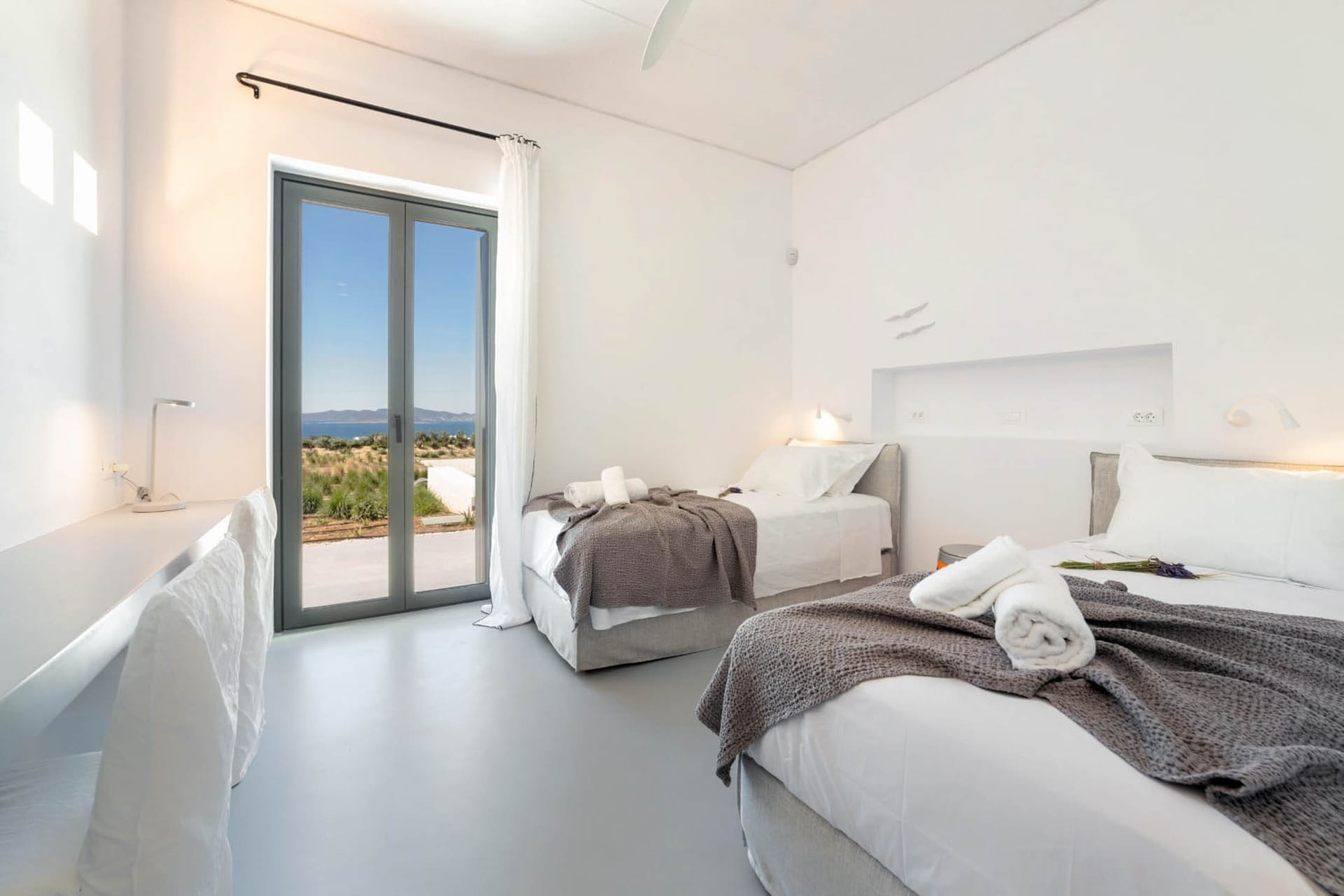 Surrounded by a Mediterranean garden and blessed with sweeping panoramic sea views, this exquisite property blends architectural finesse with serene natural beauty. Accommodating up to 12 guests in six modern and cozy bedrooms, it is an ideal choice for families or groups seeking privacy, luxury, and refined Cycladic charm.