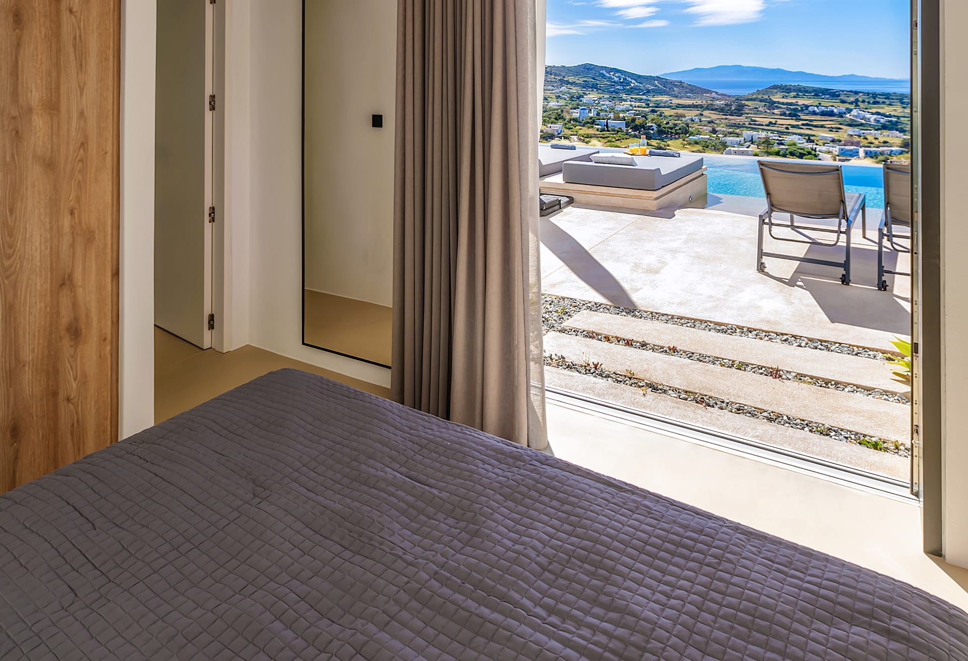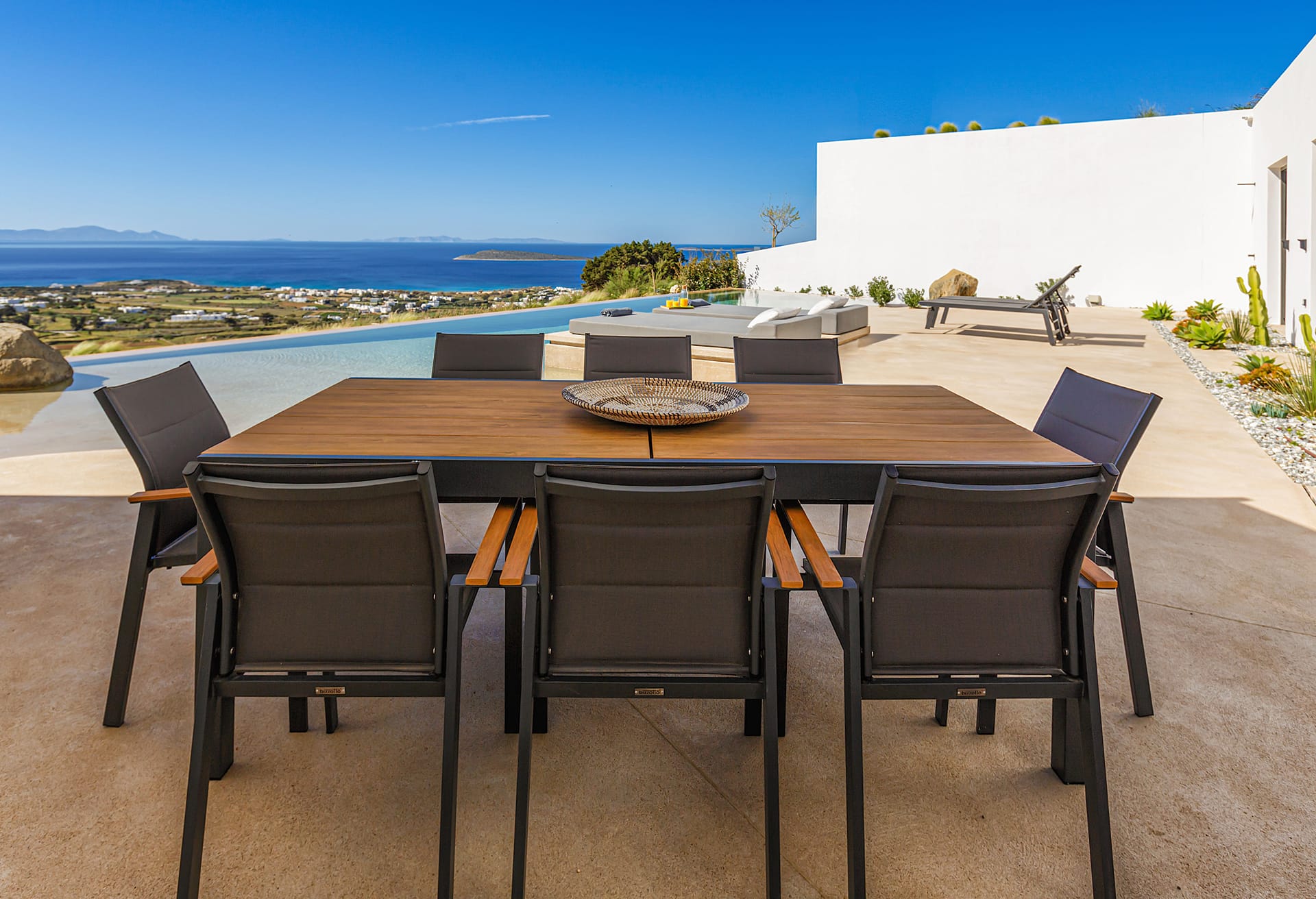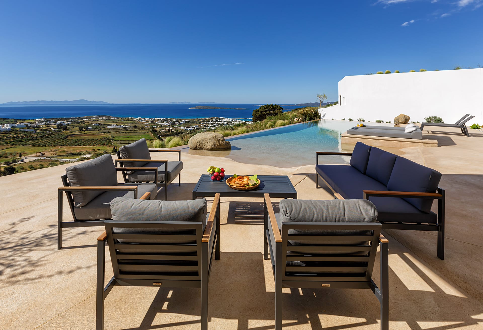 Imagine a perfect day: begin with a refreshing swim in the private infinity pool, then unwind on the sun-drenched terraces with a book in hand. In the afternoon, discover the nearby hidden coves or wander through the picturesque alleys of the island before returning for an unforgettable alfresco dinner beneath the star-filled Aegean sky.