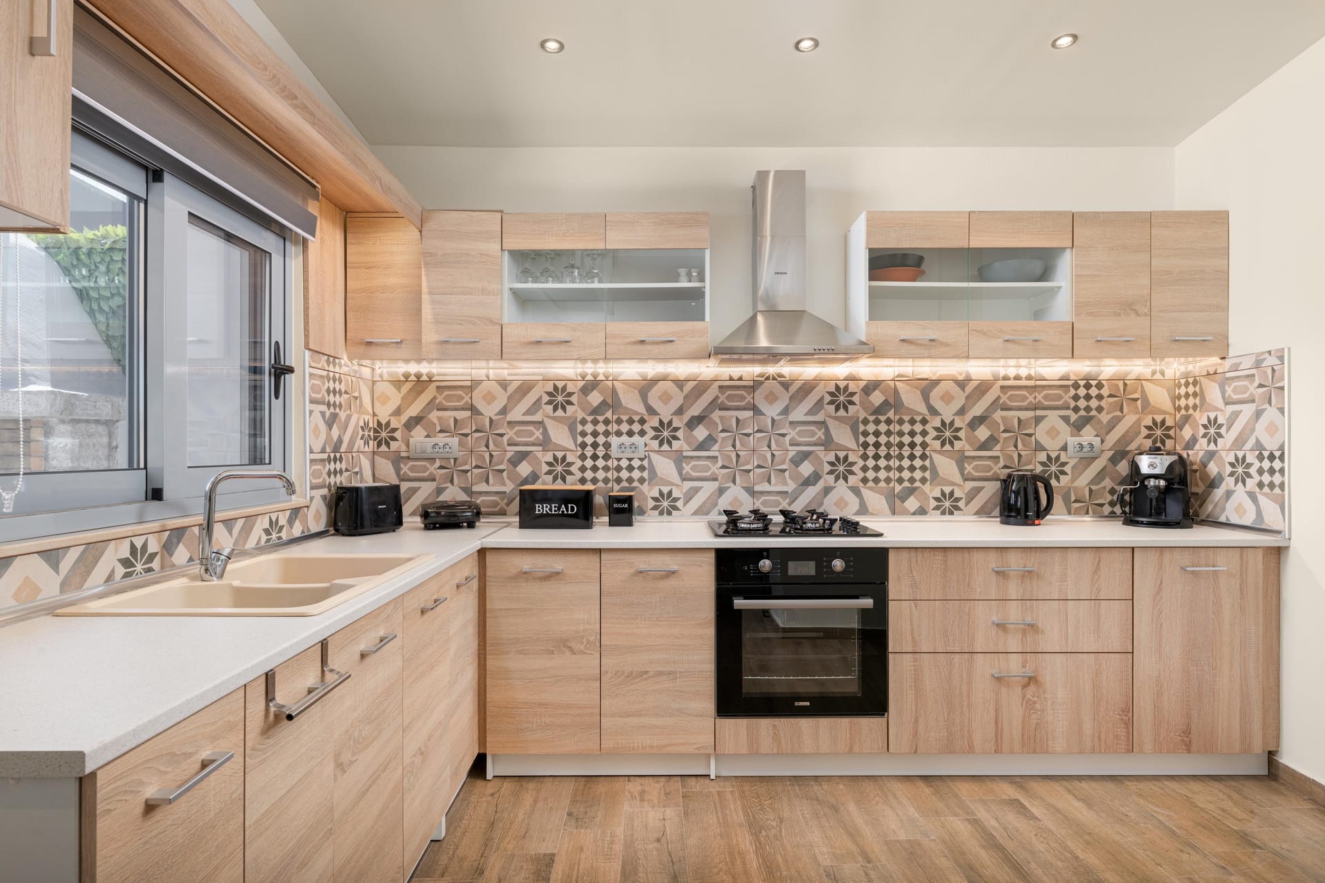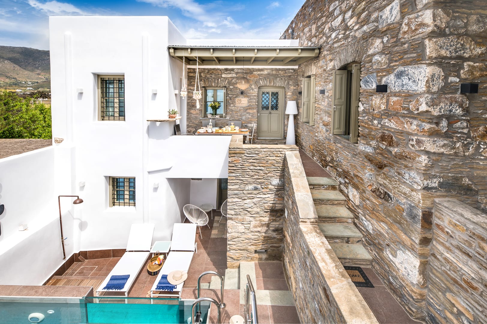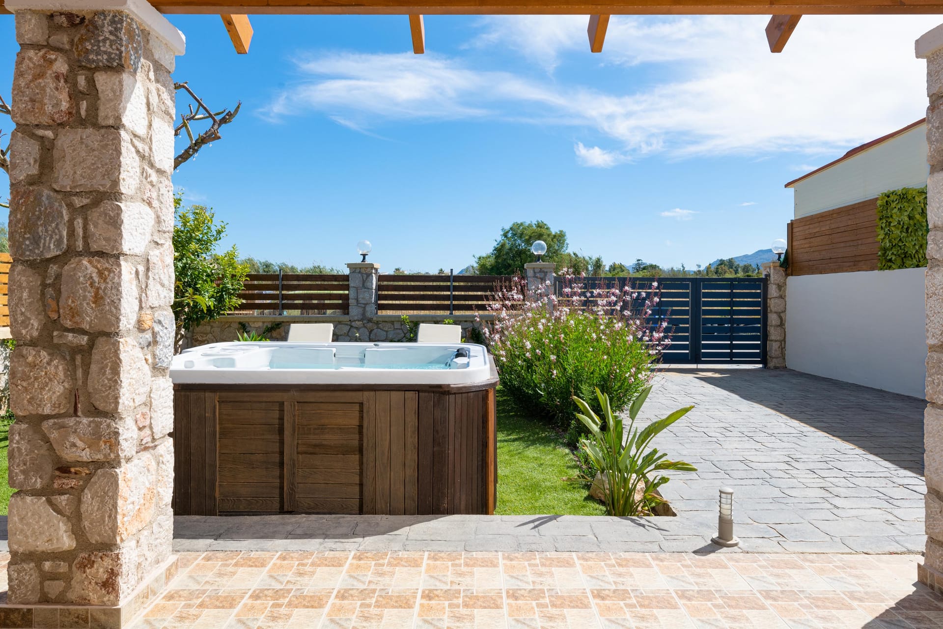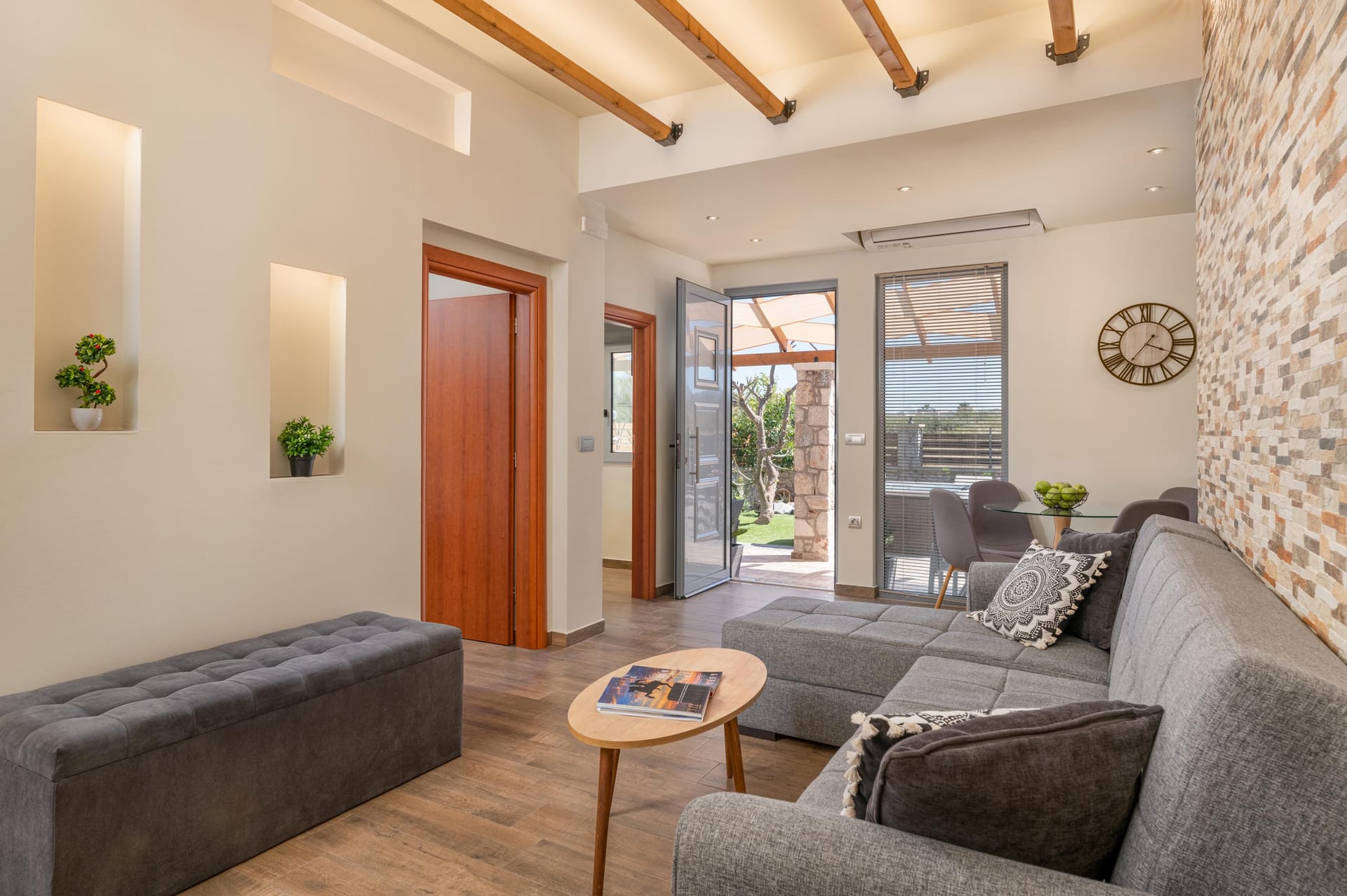 Accessed by external wide, stone steps surrounded by pink bougainvillea, Eleanna is blessed with a large balcony overlooking the tranquil, sandy beach and the Gulf beyond. With views towards Argostoli and the mountains of the island, the balcony is furnished with comfortable sofas and a table for out-door eating. The beach is merely steps away, and the house is well-stocked with beach equipment for use by the guests, including SUPs and a kayak for exploring the coast.