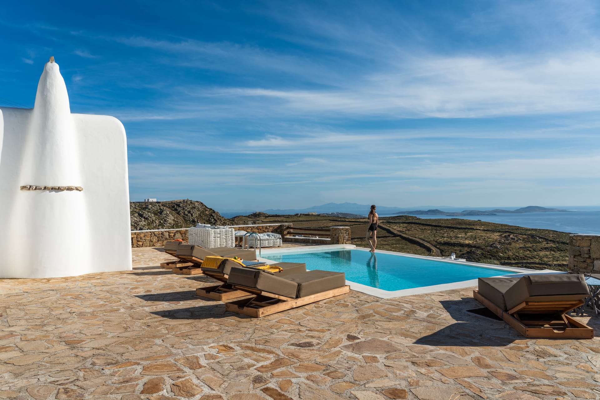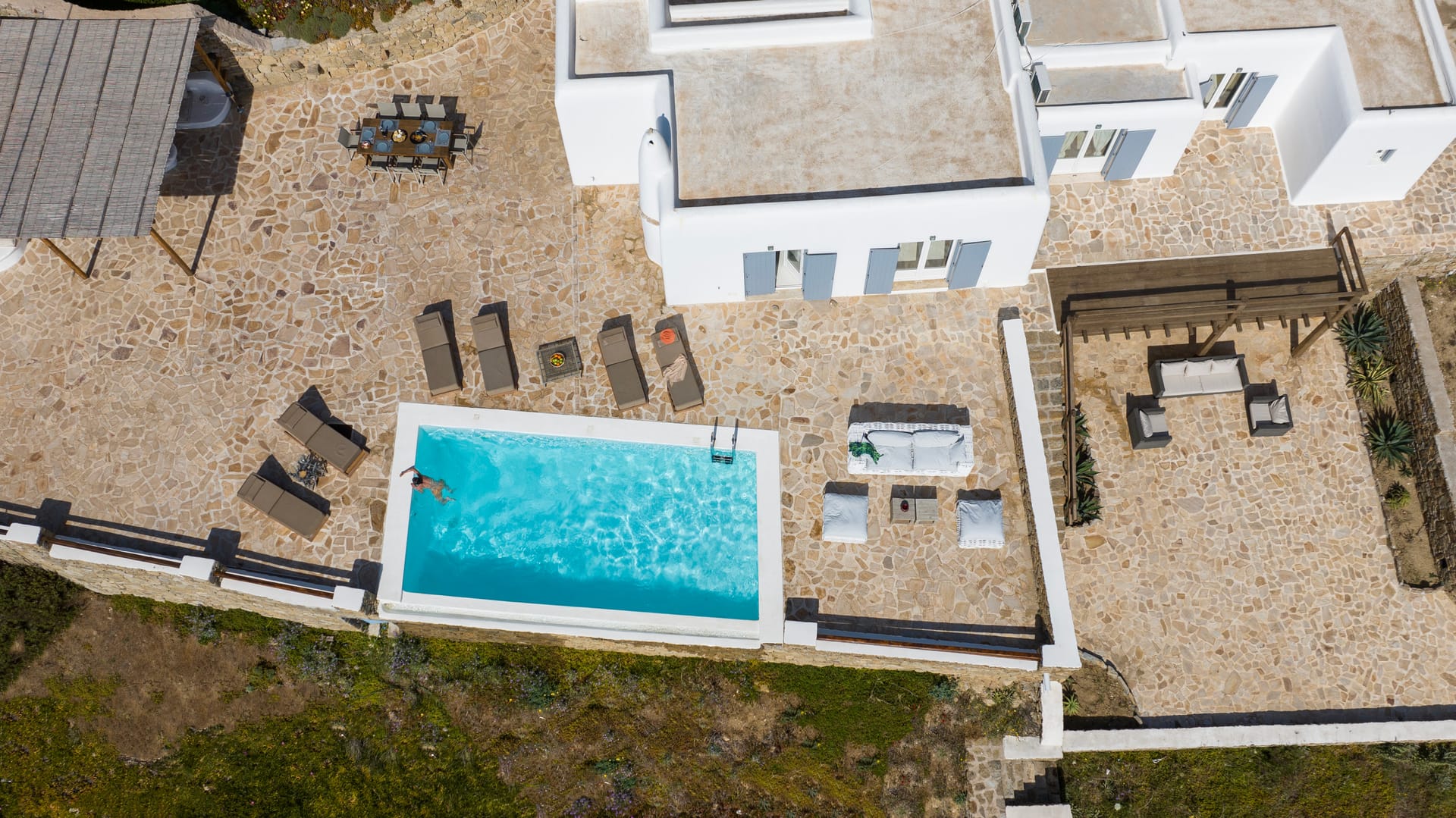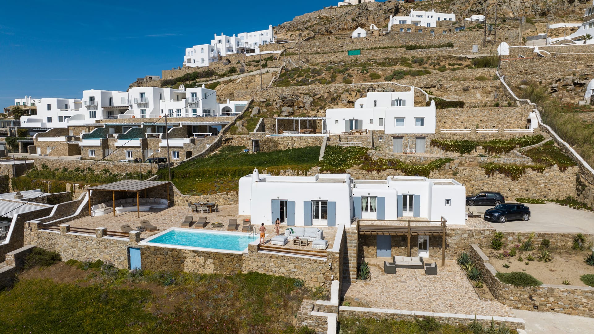 In the northern part of Corfu, six newly built villas sit within the lush grounds of the renowned five-star Almyros Beach Resort and Spa. The villas are thoughtfully arranged across three stylish buildings, each housing two independent villas with the option of interconnected doors. Each villa has its own private pool and a leafy green garden where guests can enjoy themselves under the sun of the day or the stars of the mesmerizing black sky.